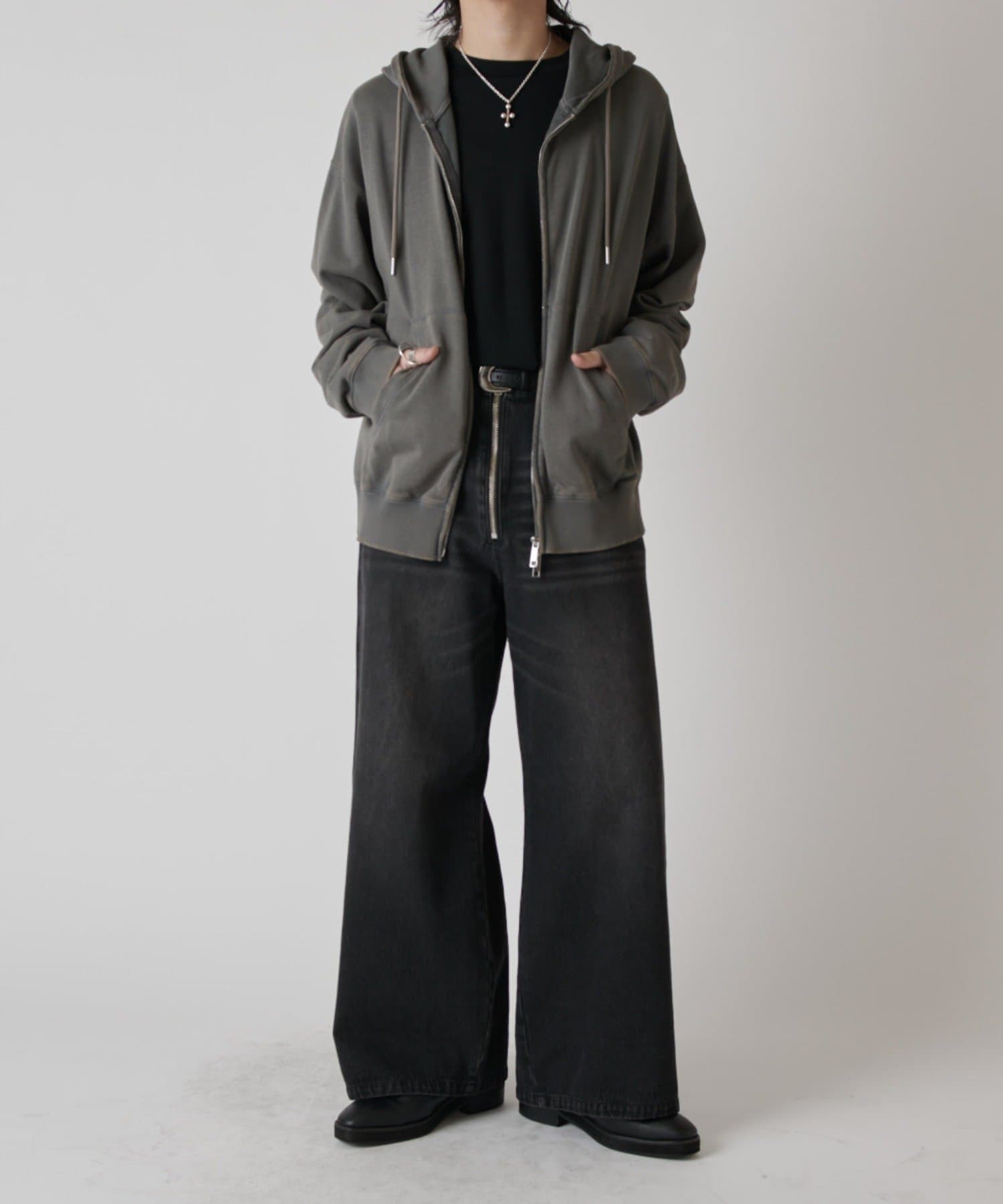 ・ウエストのフロントZIPがアクセントになり、カジュアル過ぎずモードな印象を与えることで、シンプルながら穿くだけでコーデを格上げしてくれるようなデザインに。