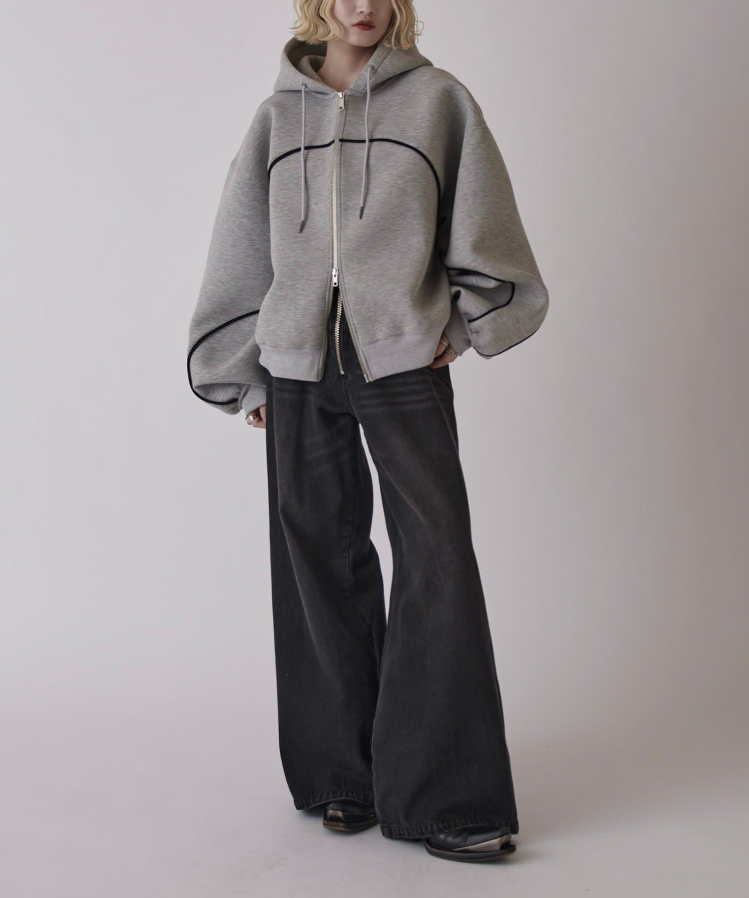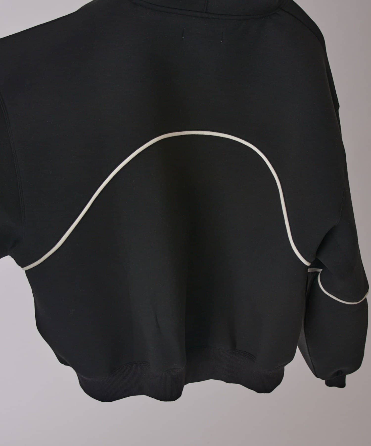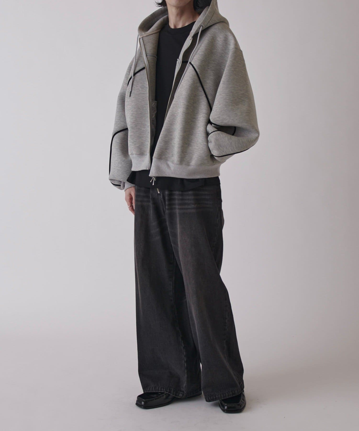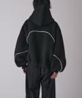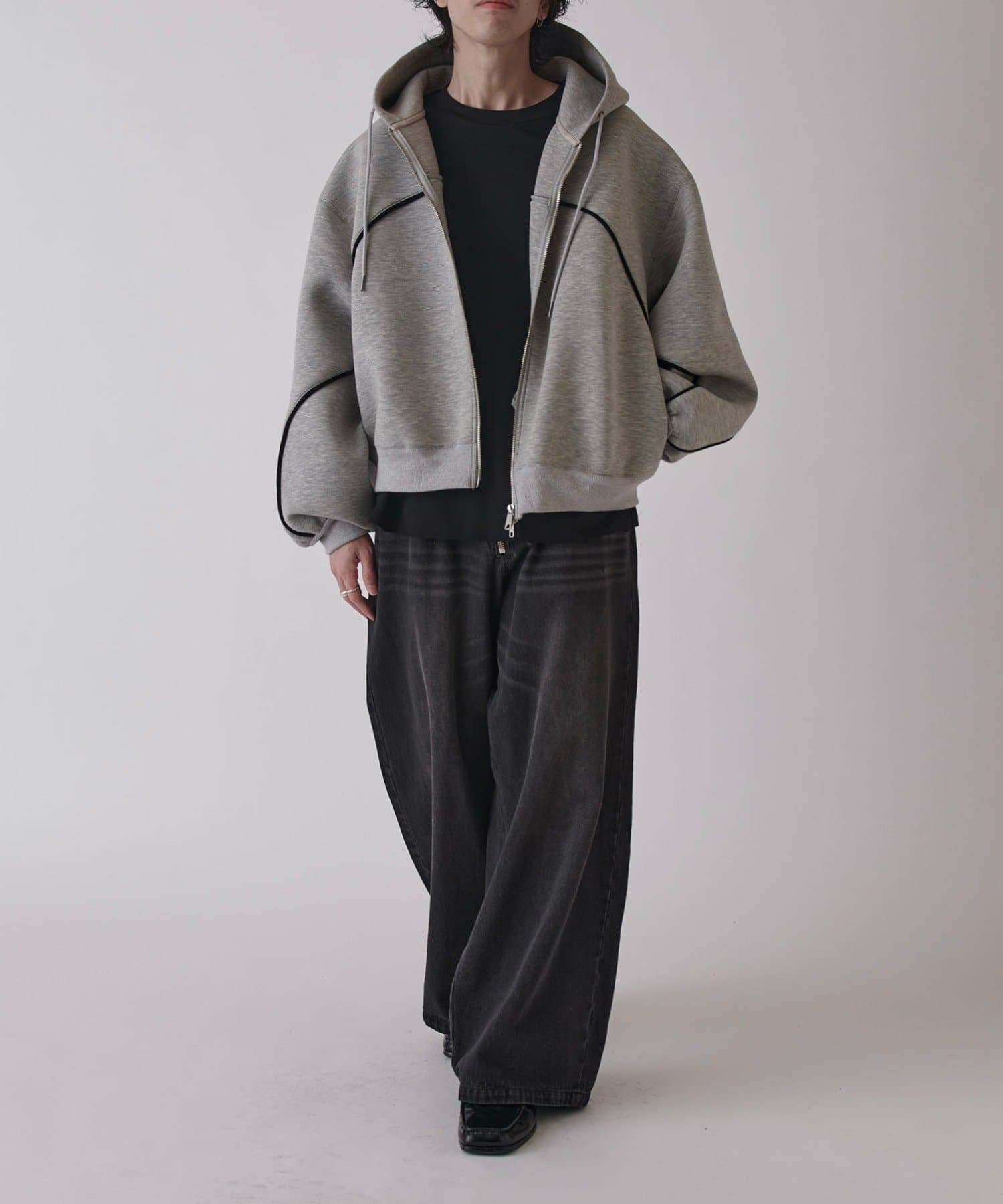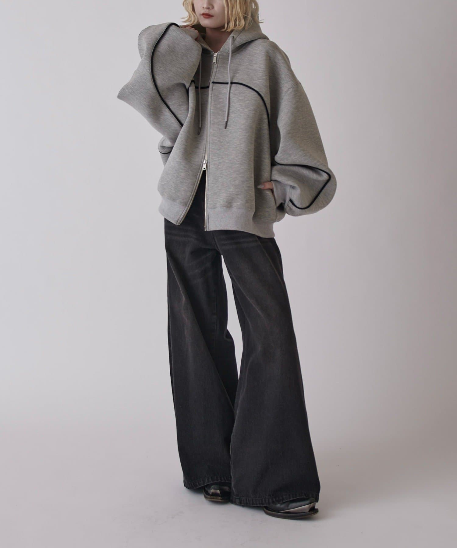 ・シンプルなデザインをベースに、大袈裟なシルエットバランスとパイピングをアクセントに加えたZIPフーディー。