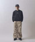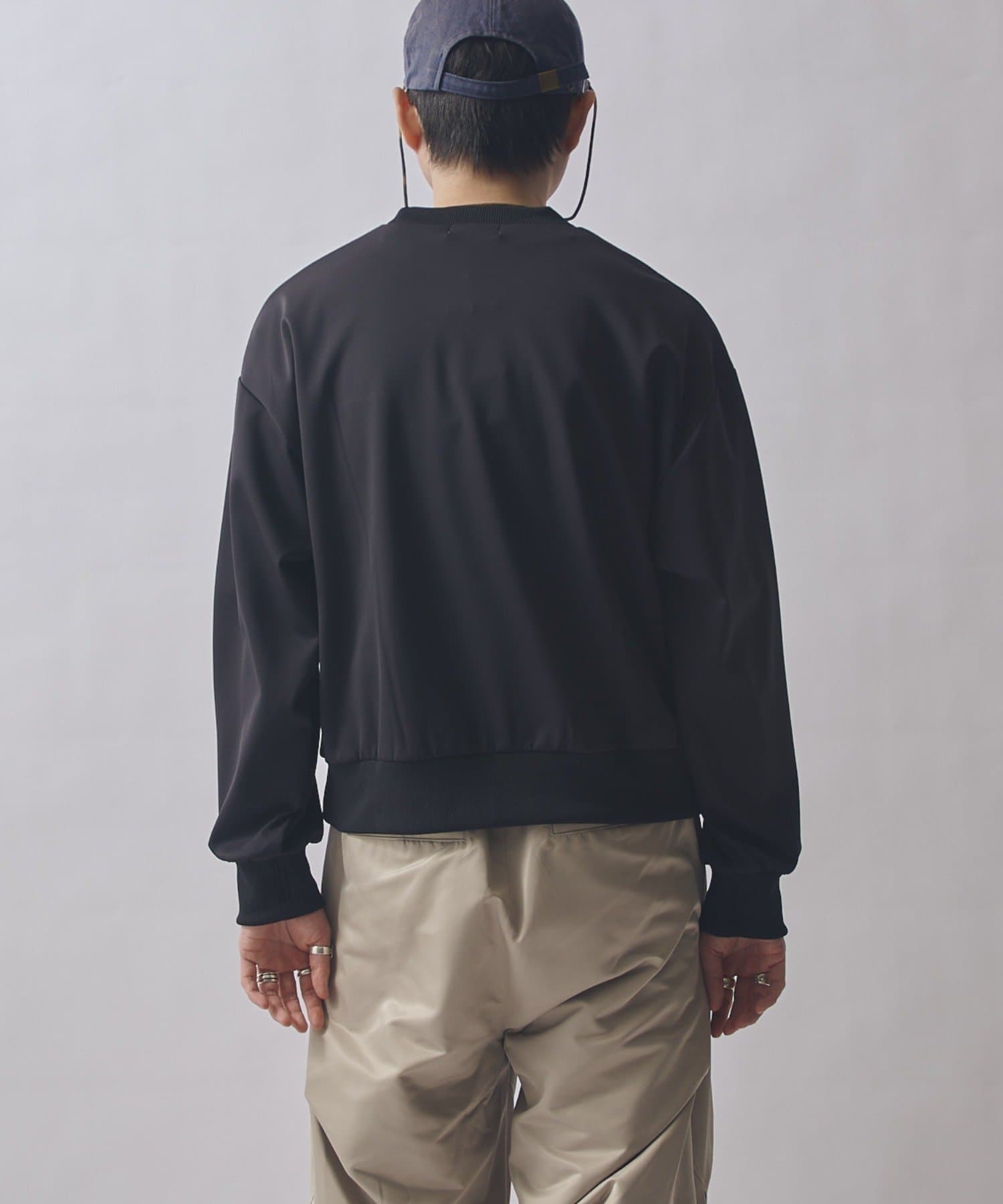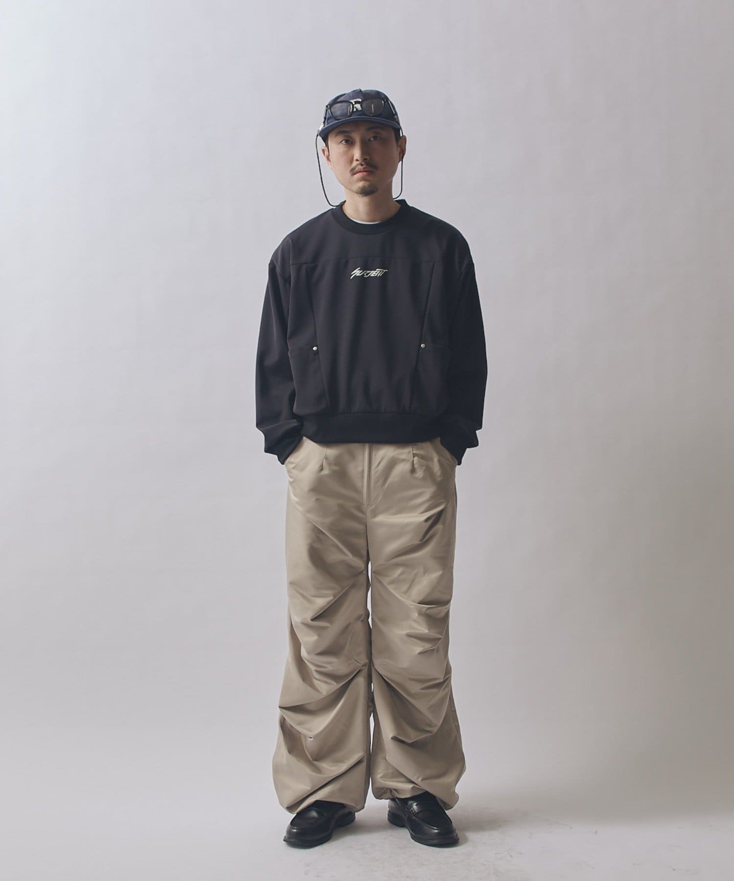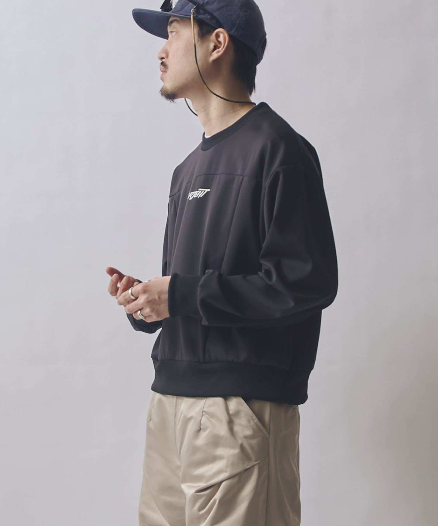 フロントのポケットが特徴的なパネル切替のプルオーバー。