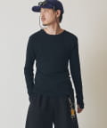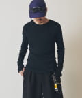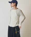 ロンTにアシンメトリーにレイヤードされた、ユニークなデザインのロングスリーブTシャツです。