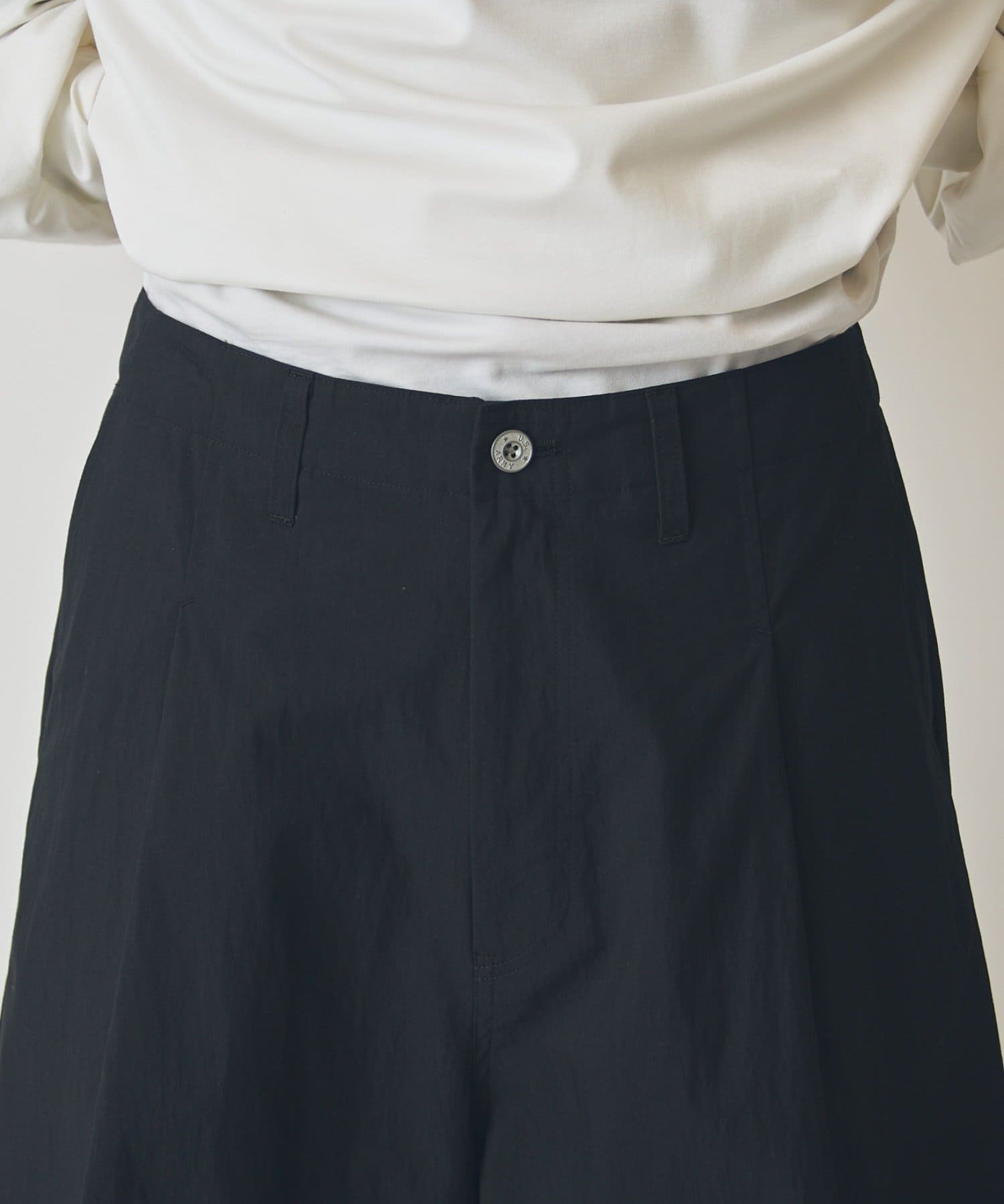 ユーロミリタリーのショートパンツをリファレンスにしつつ、ワイドシルエットに落とし込み、ディテール、使用を妥協せず、製作した本格的なデザインが特徴です。