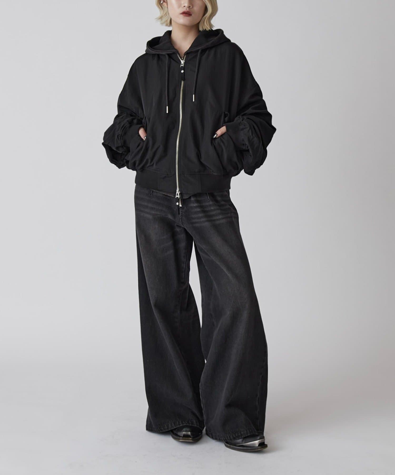 ・ワイドな身幅に対して、丈がショートになっているボリューム感ありつつもスタイルUP効果抜群のバルーンシルエット。
