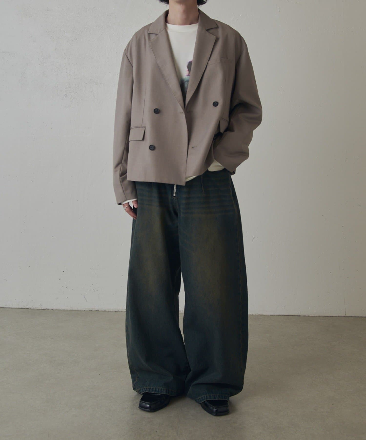 【Neucon】ボックスワイドショートダブルジャケット / セットアップ対応