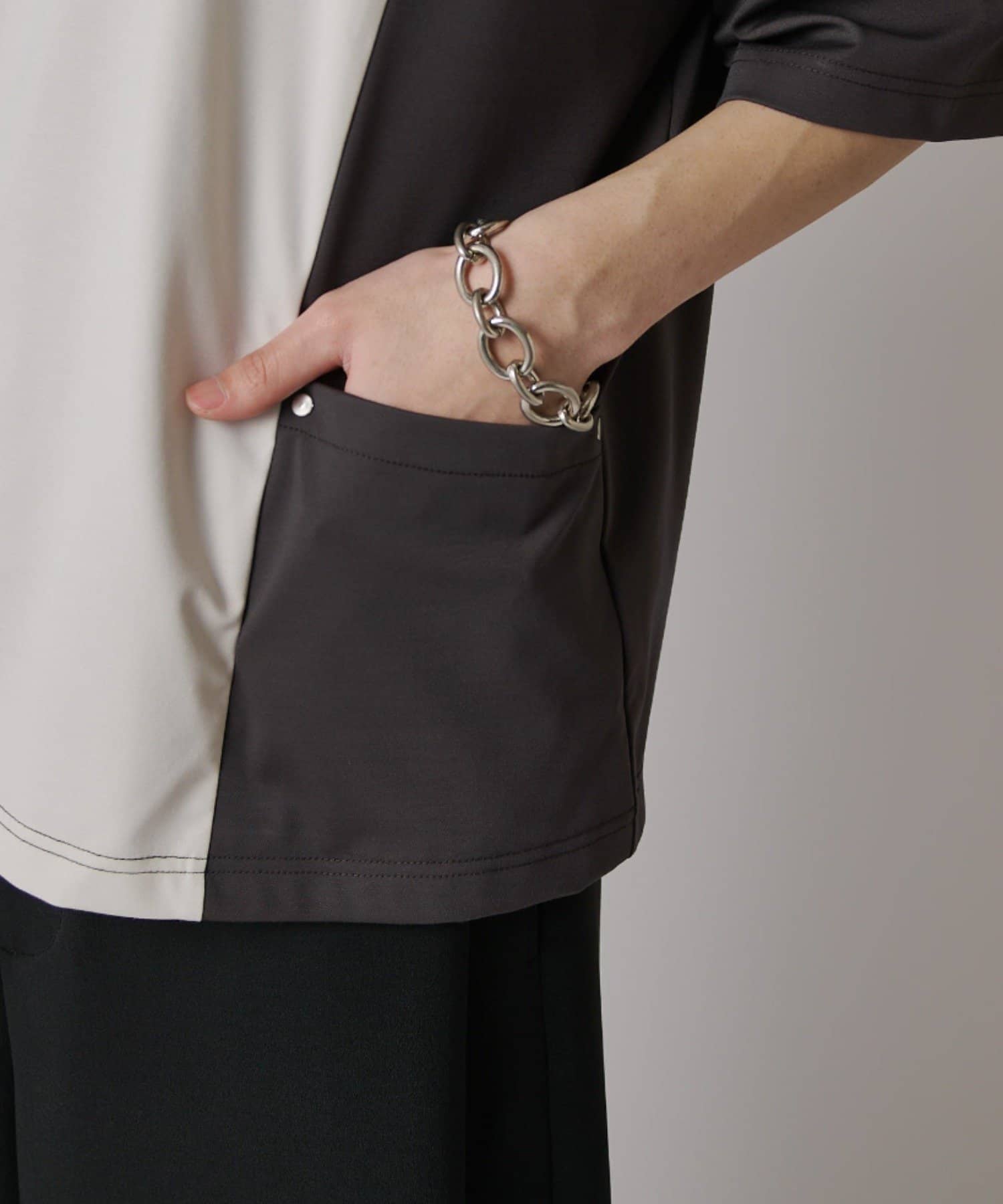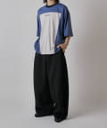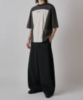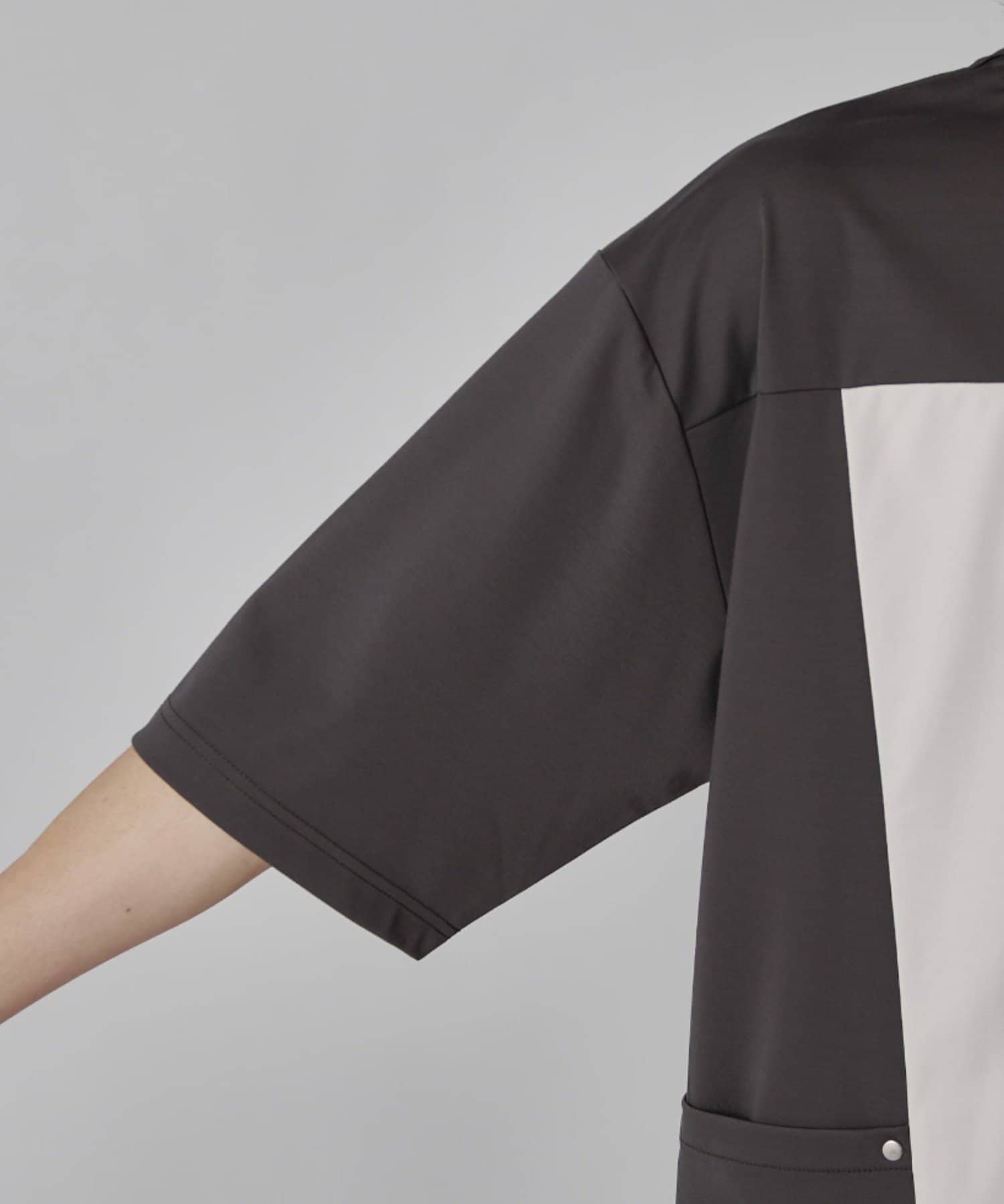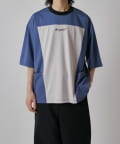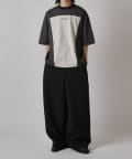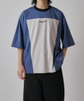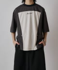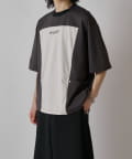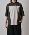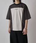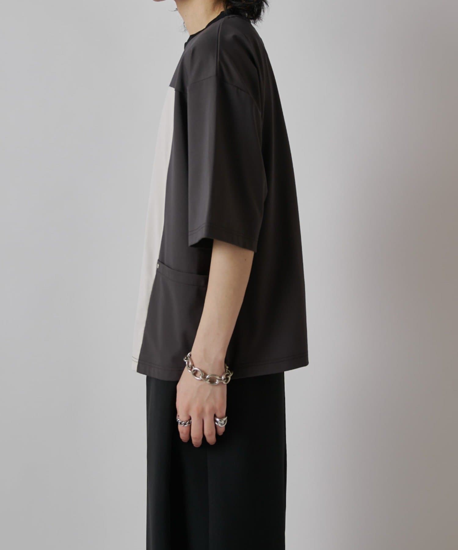 パネル切替になった、ルーズフィットなTシャツ。フロントの切替部分はポケットデザインになっております。