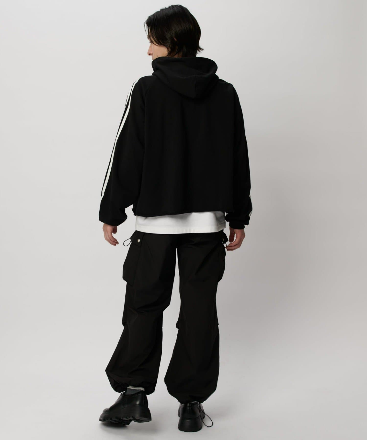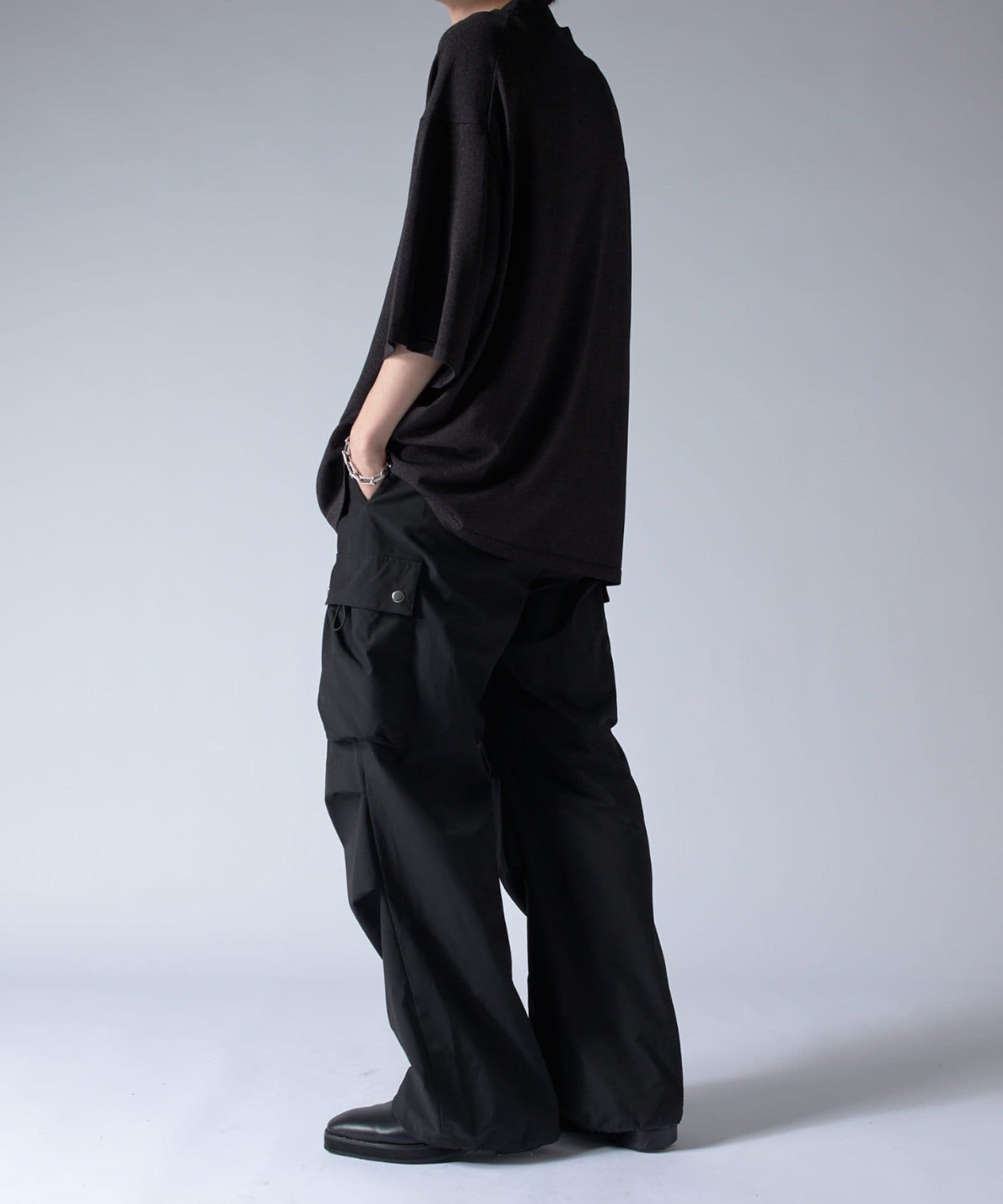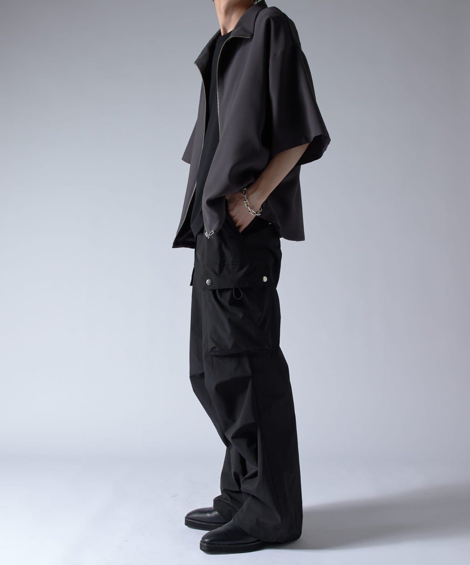 サイドのカーゴポケットは、ドローコードで調節できるユニークなデザインに。裾にもドローコードを通しており、シルエットを調整して頂けます。