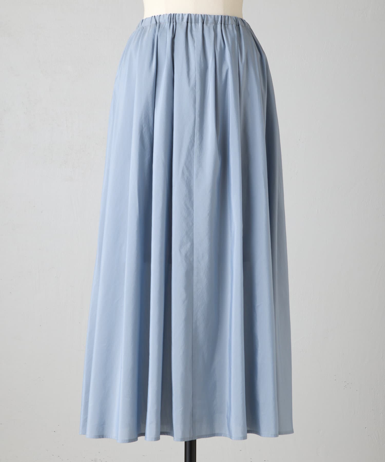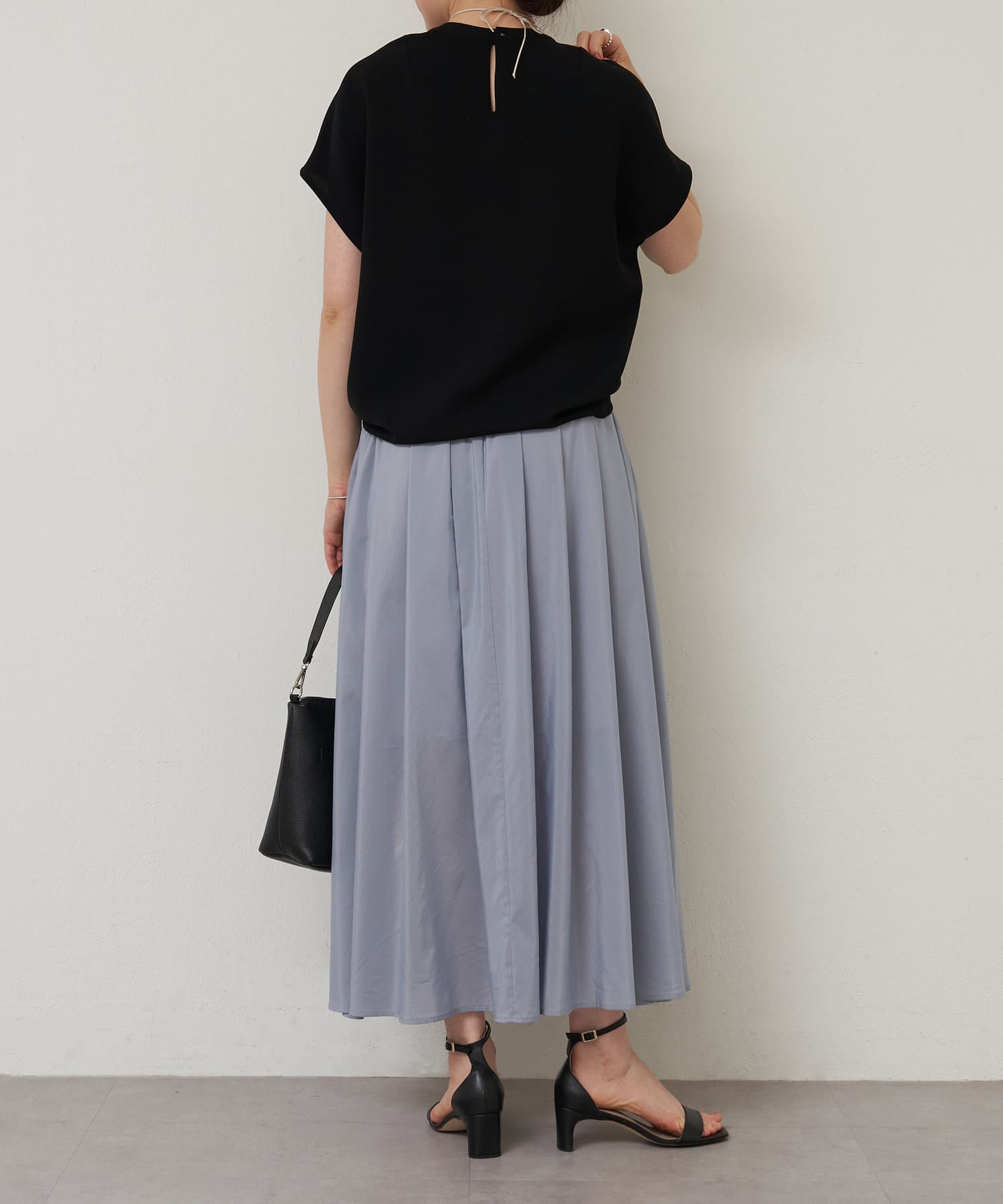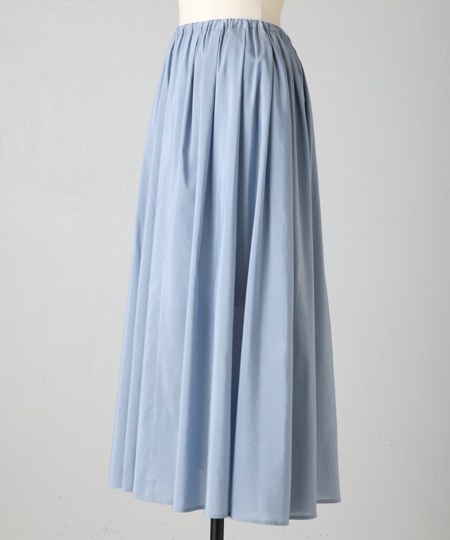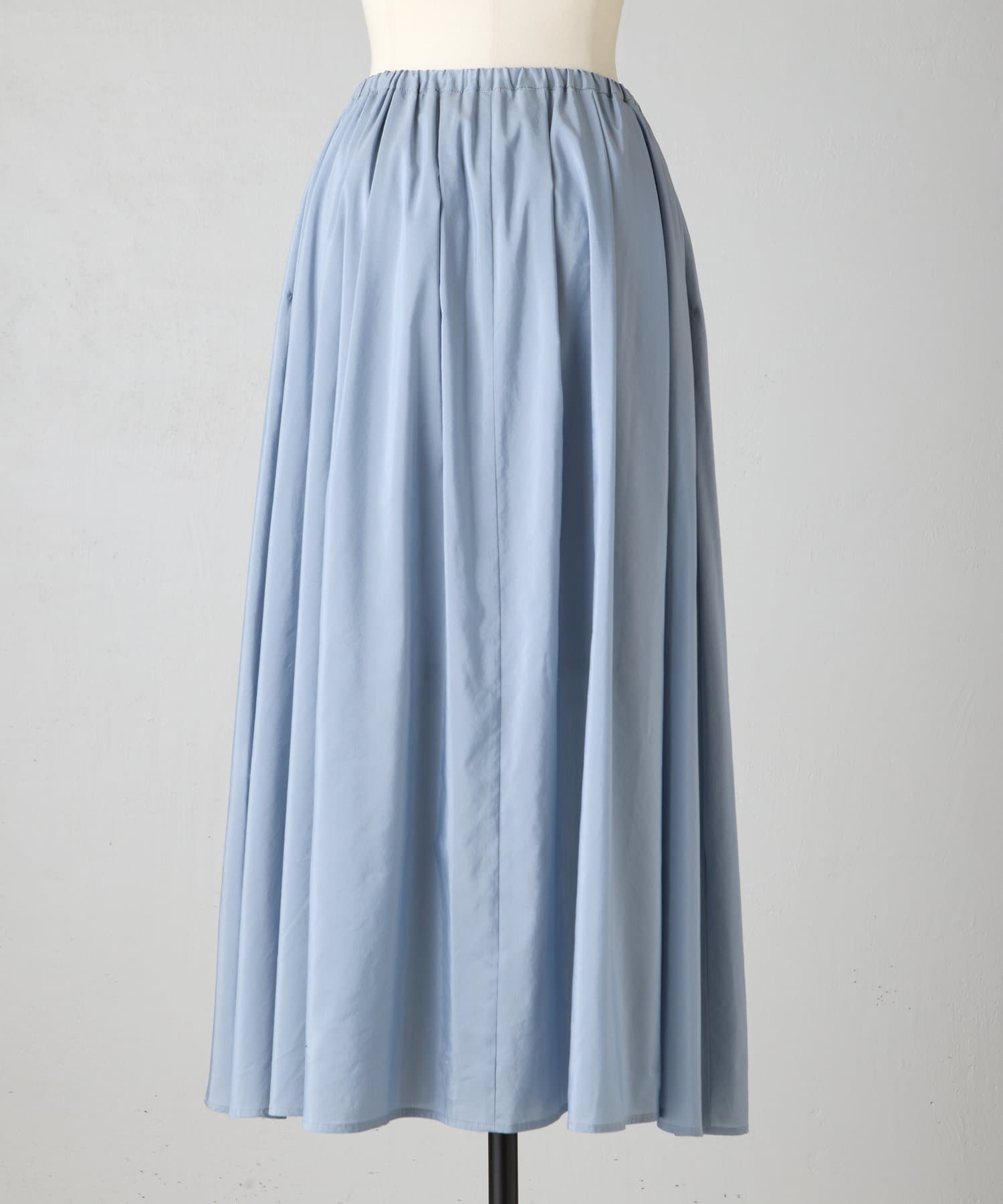シンプルなトップスを合わせるだけでスタイリングが決まるので、ギャザースカートはワードローブにあると便利なアイテム。