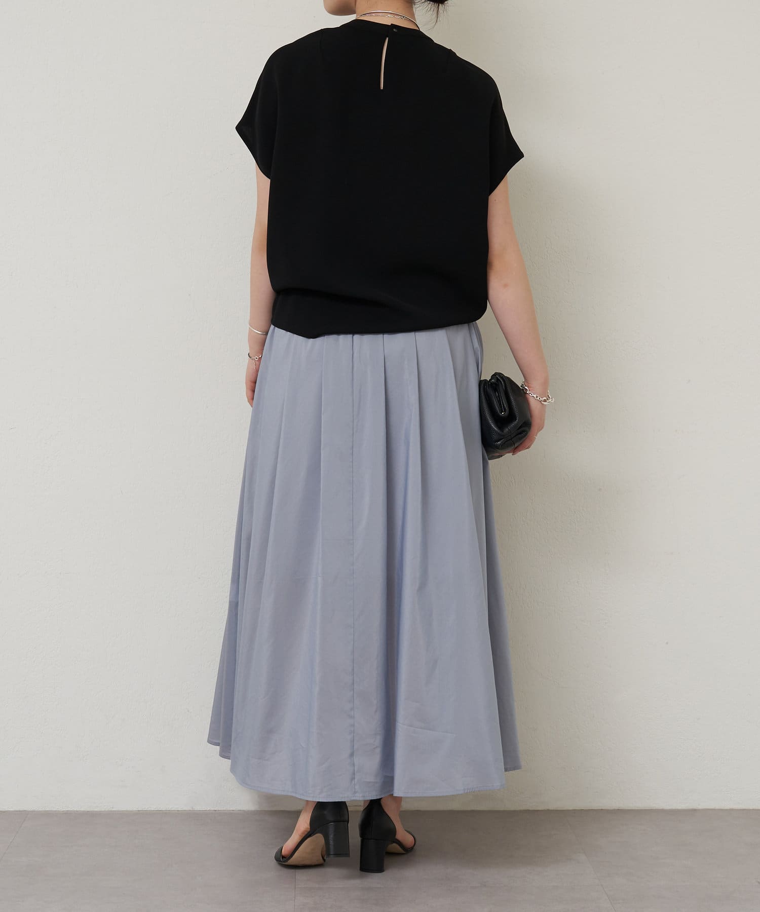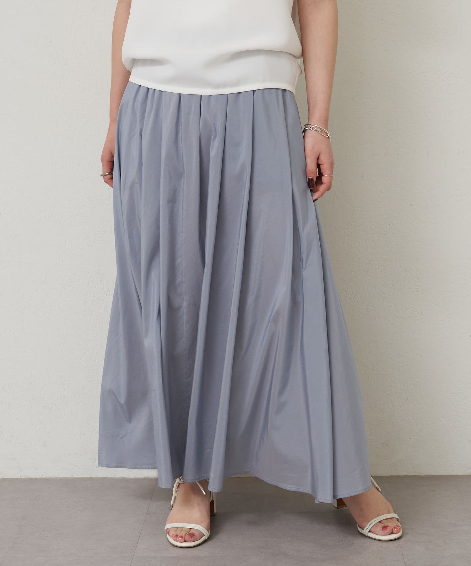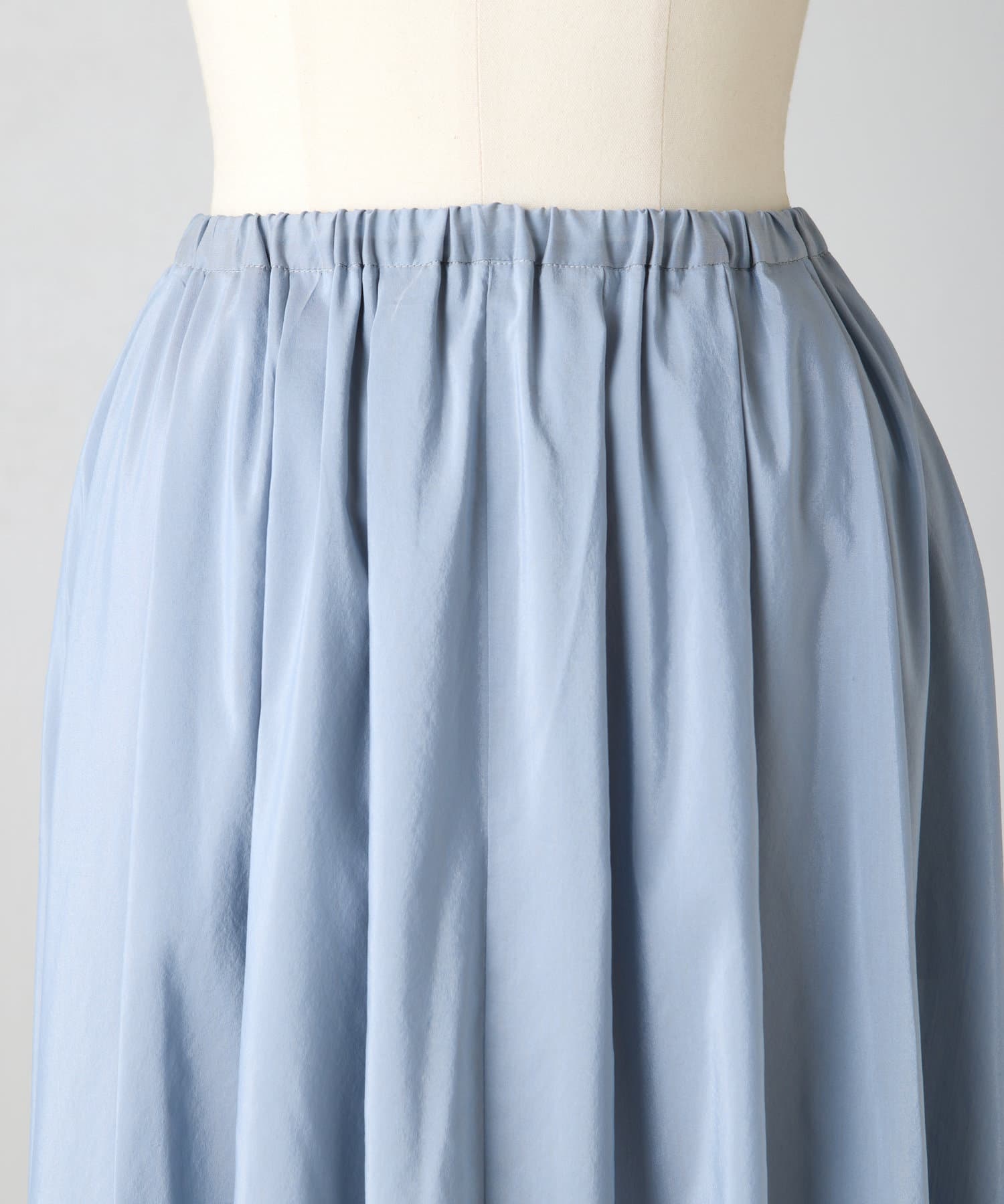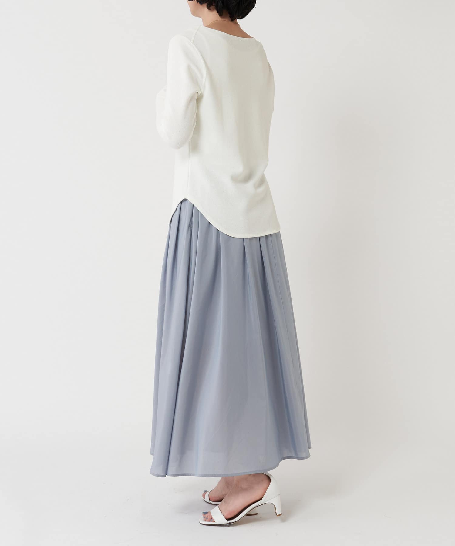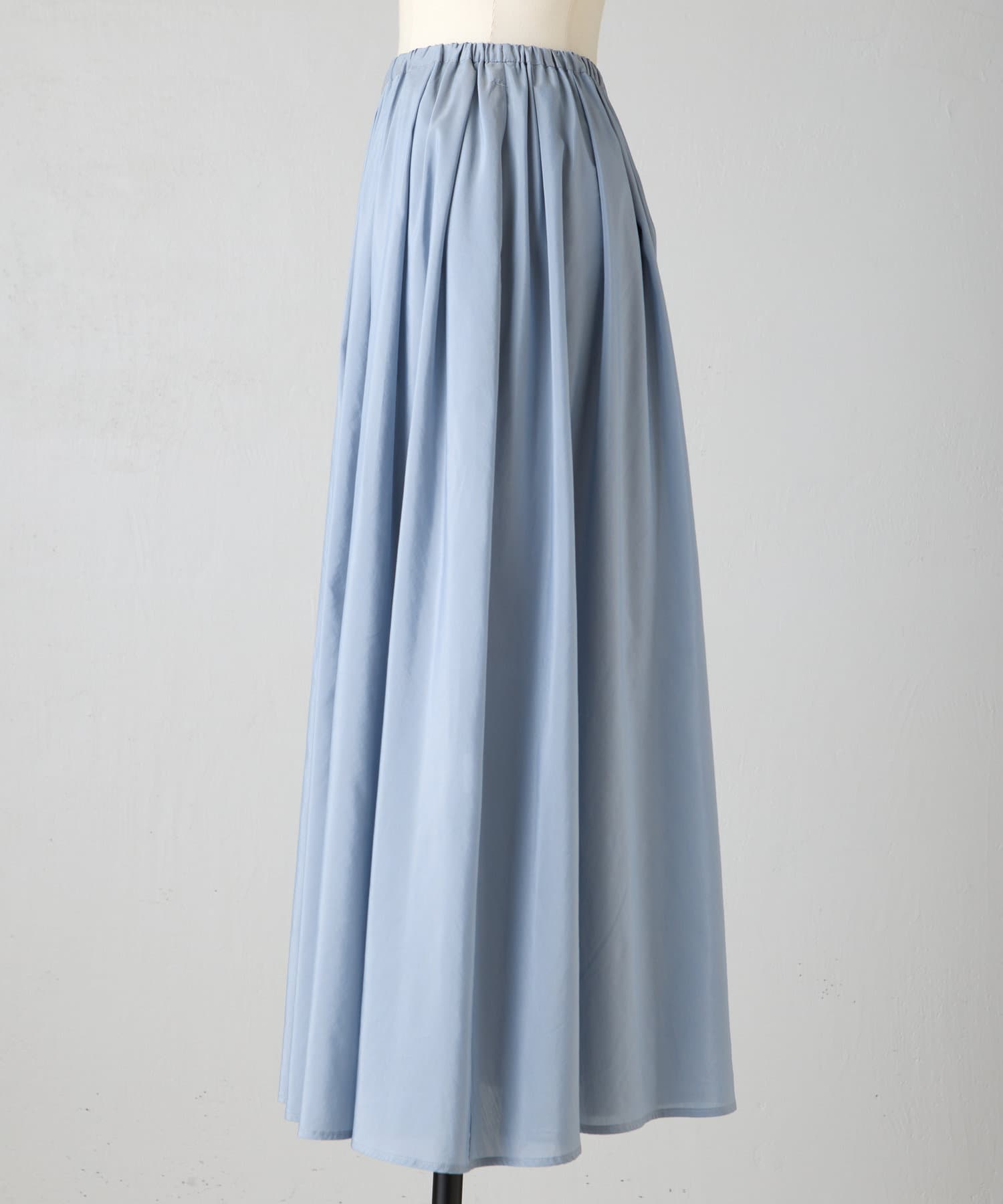 シンプルなトップスを合わせるだけでスタイリングが決まるので、ギャザースカートはワードローブにあると便利なアイテム。