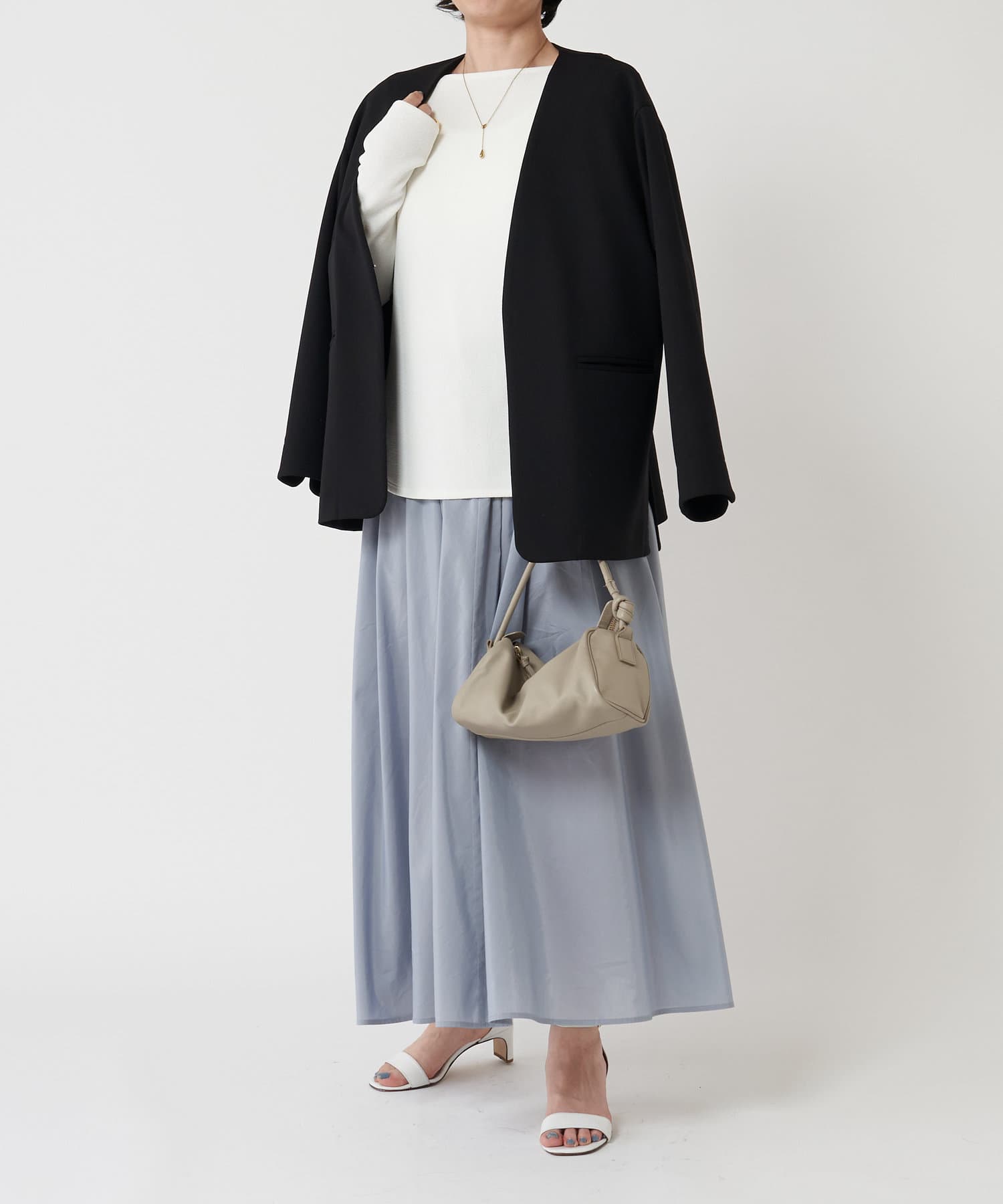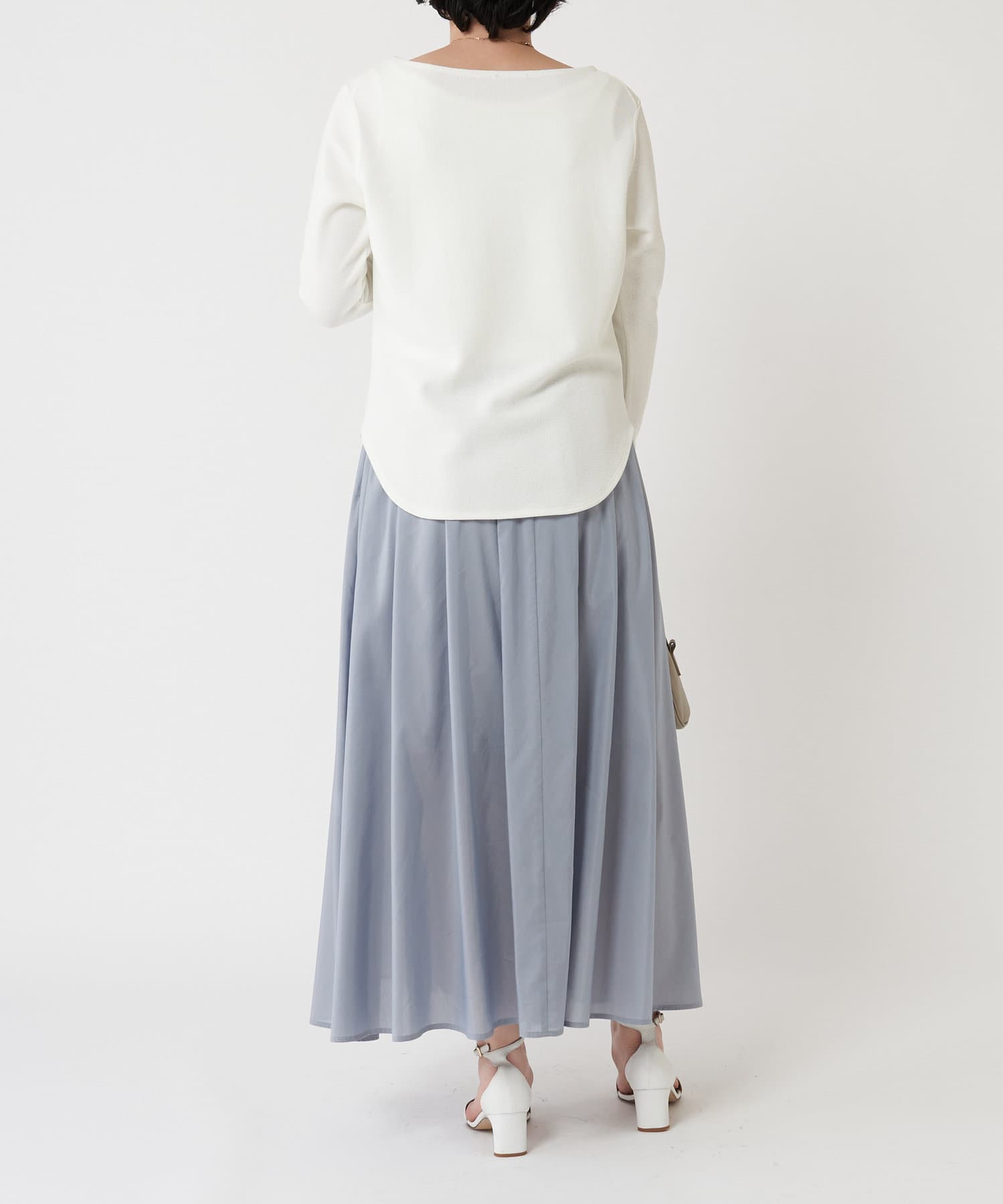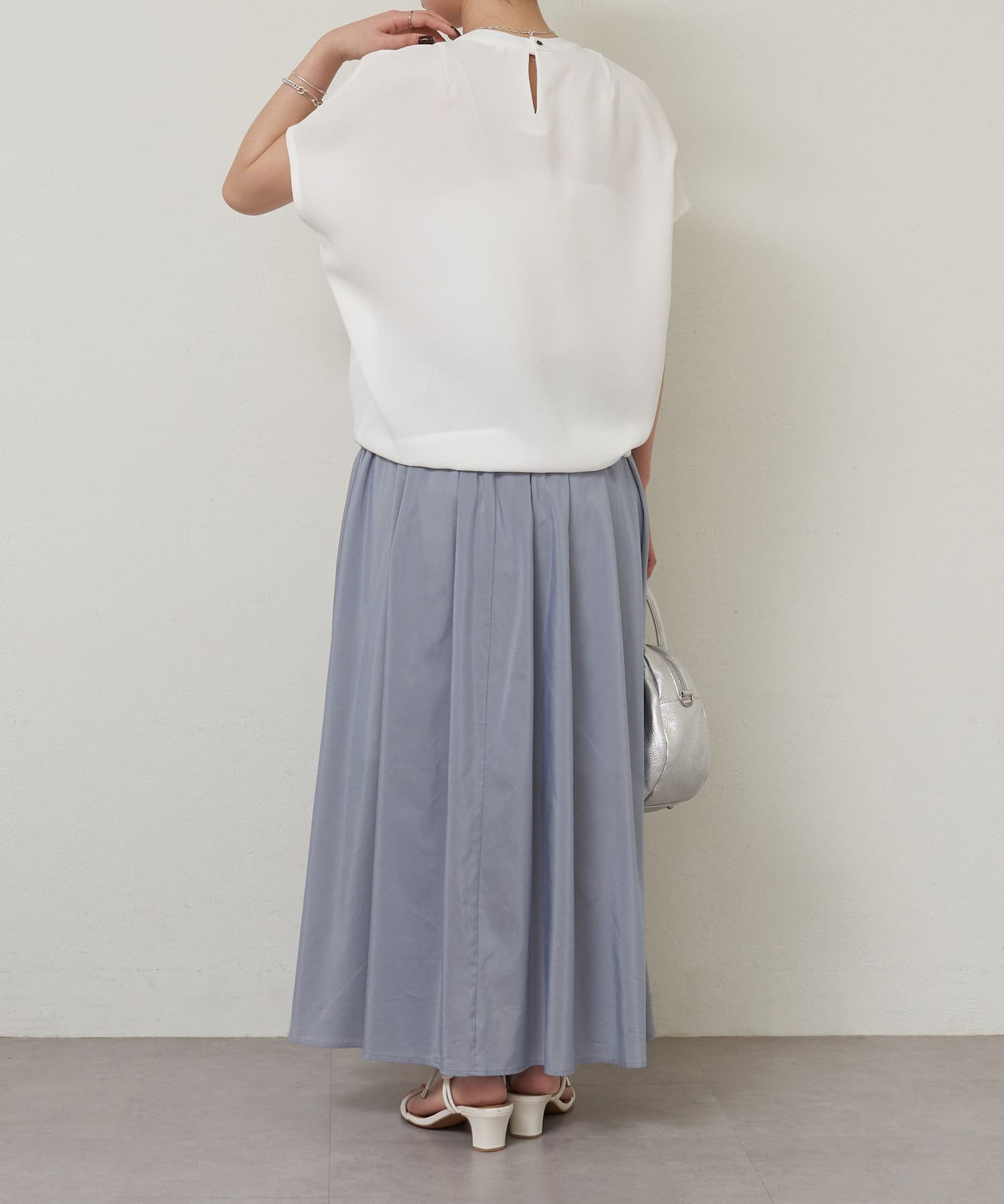 ウエストはリラックスに着れる仕様しており、ニュアンスたっぷりに施されたギャザーでふんわりとした軽やかなシルエットがフェミニンな一着。