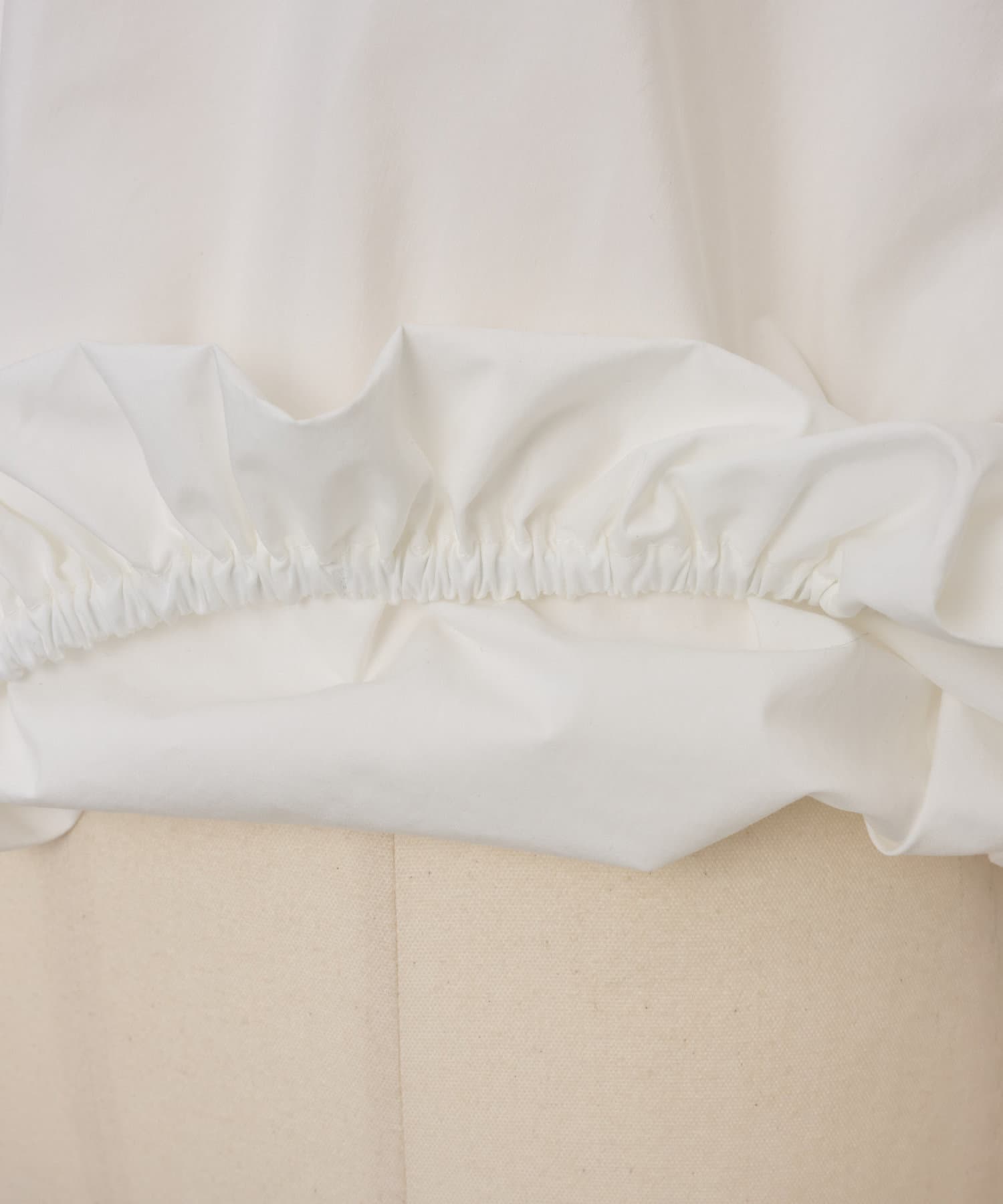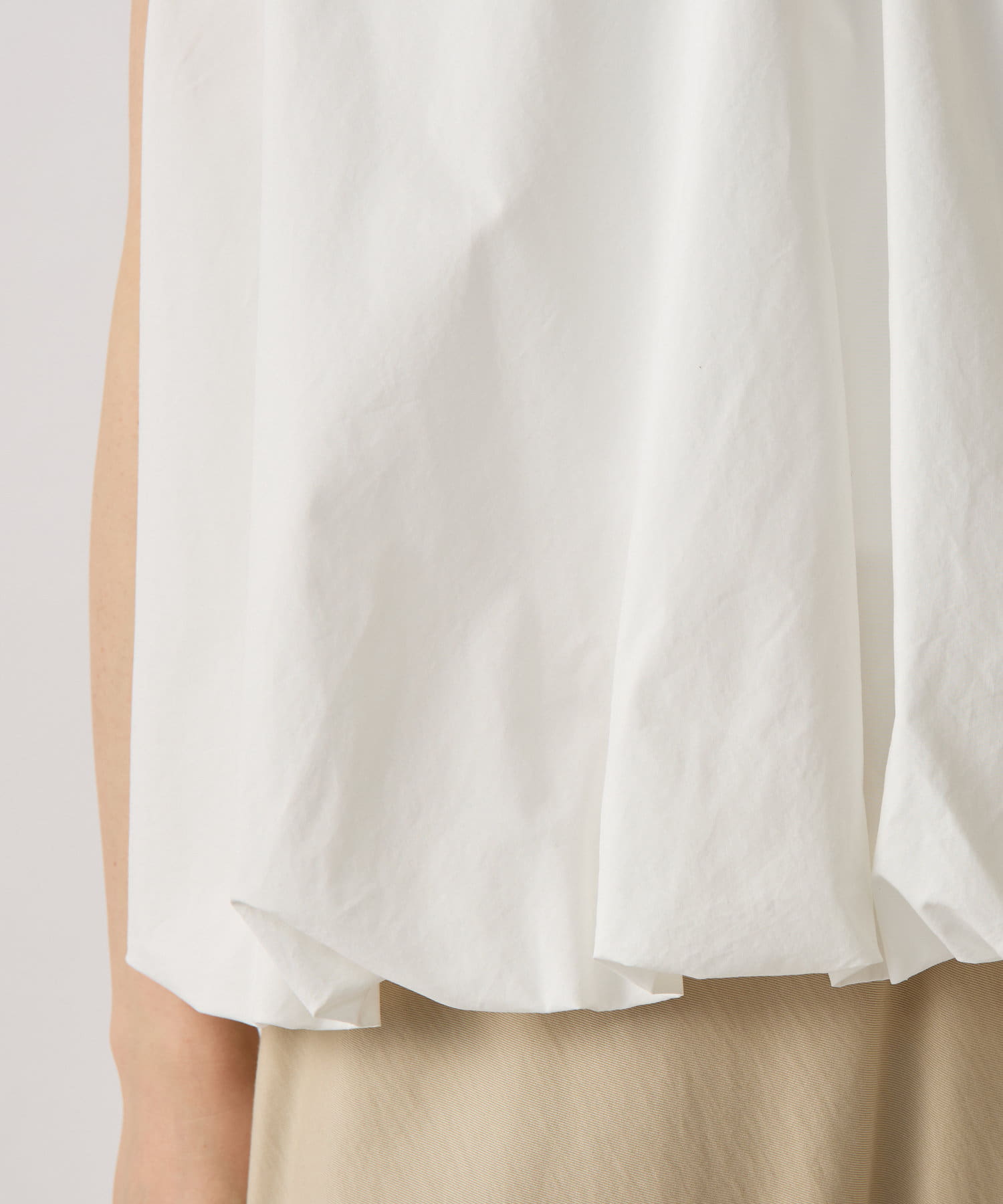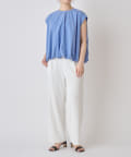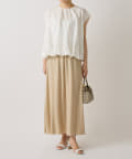 裾部分にゴムを入れてたっぷりとギャザーを寄せたデザインで女性らしい柔らかな印象に。