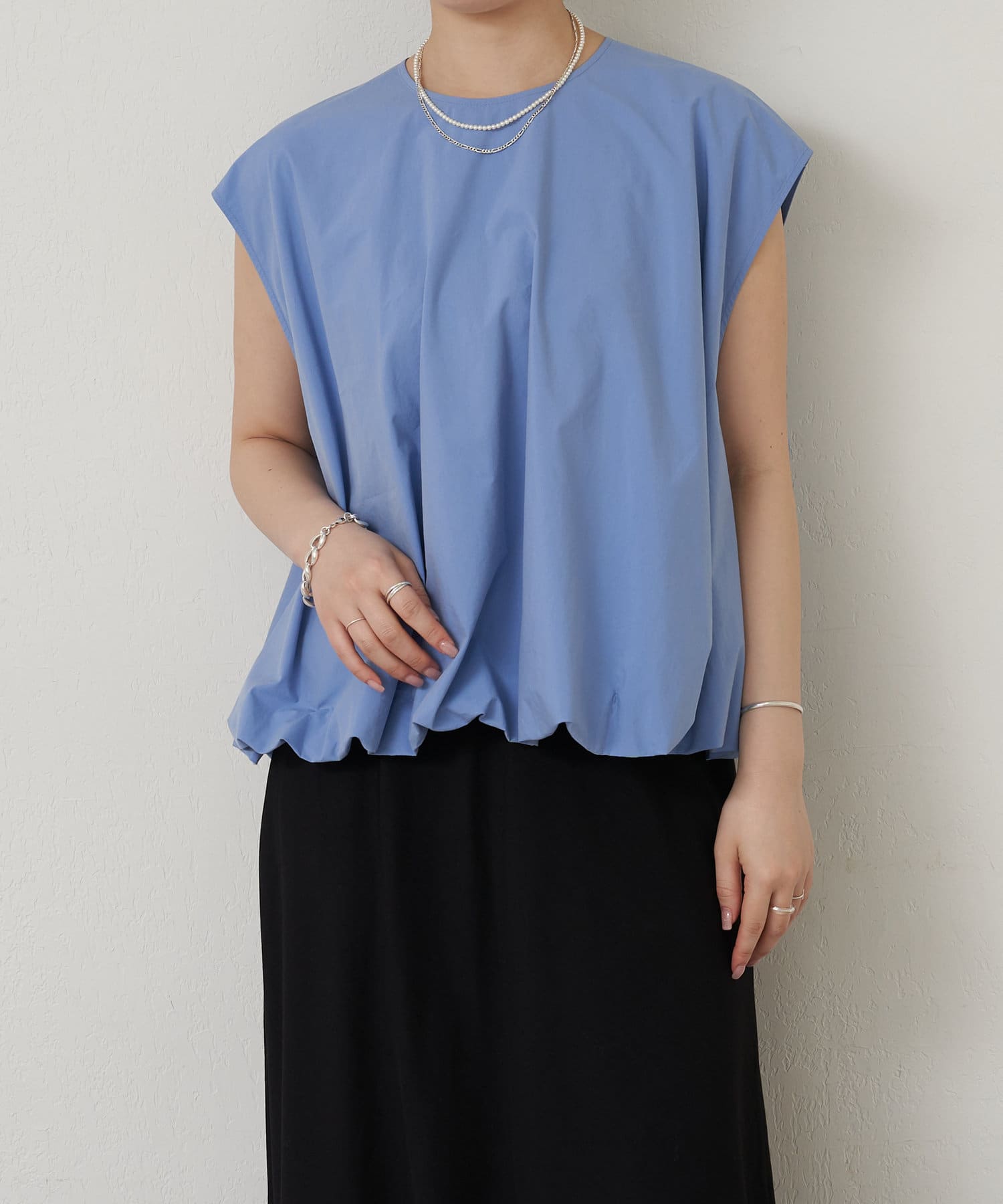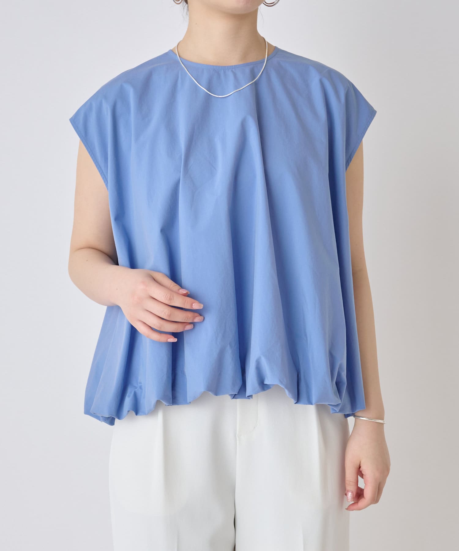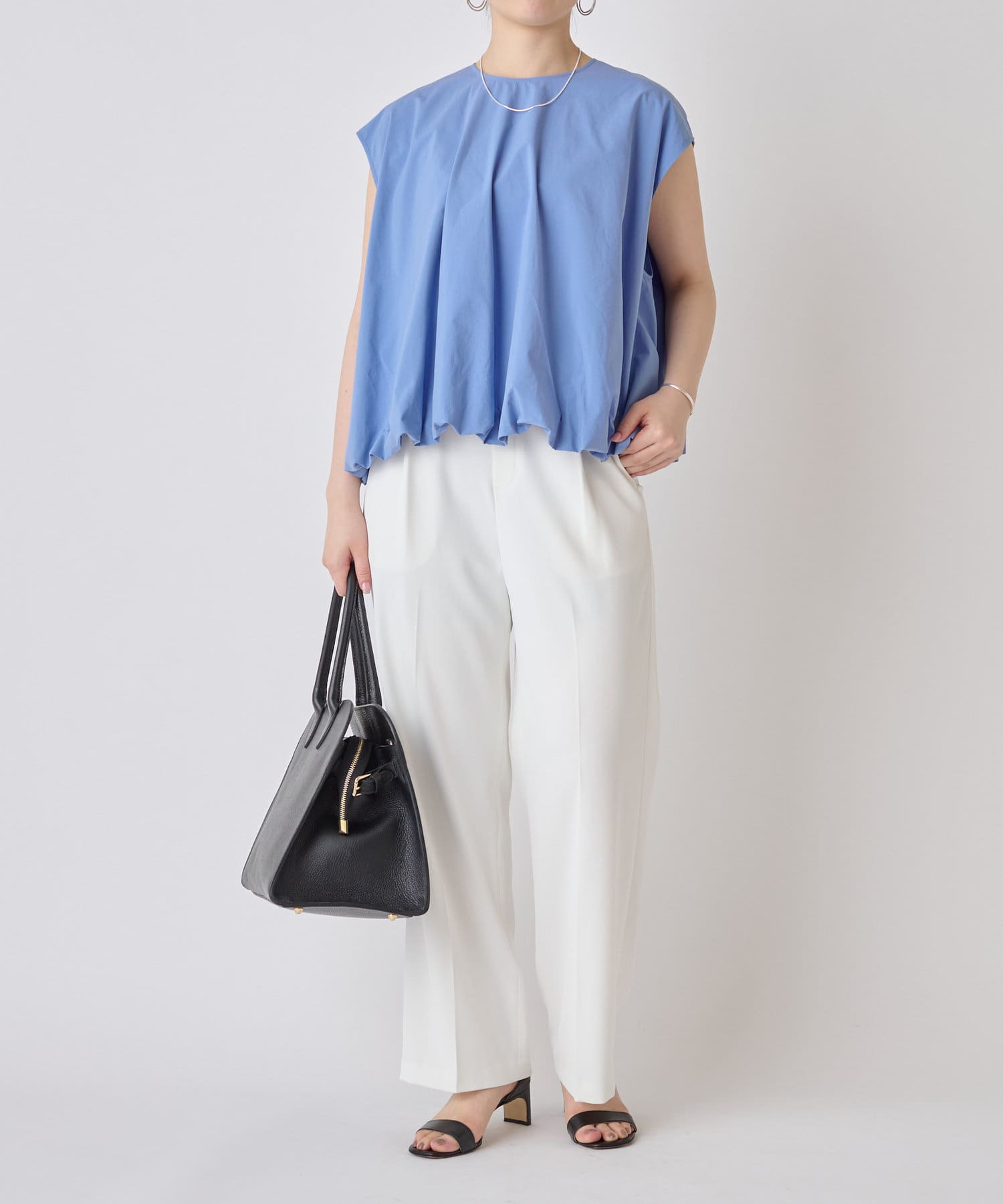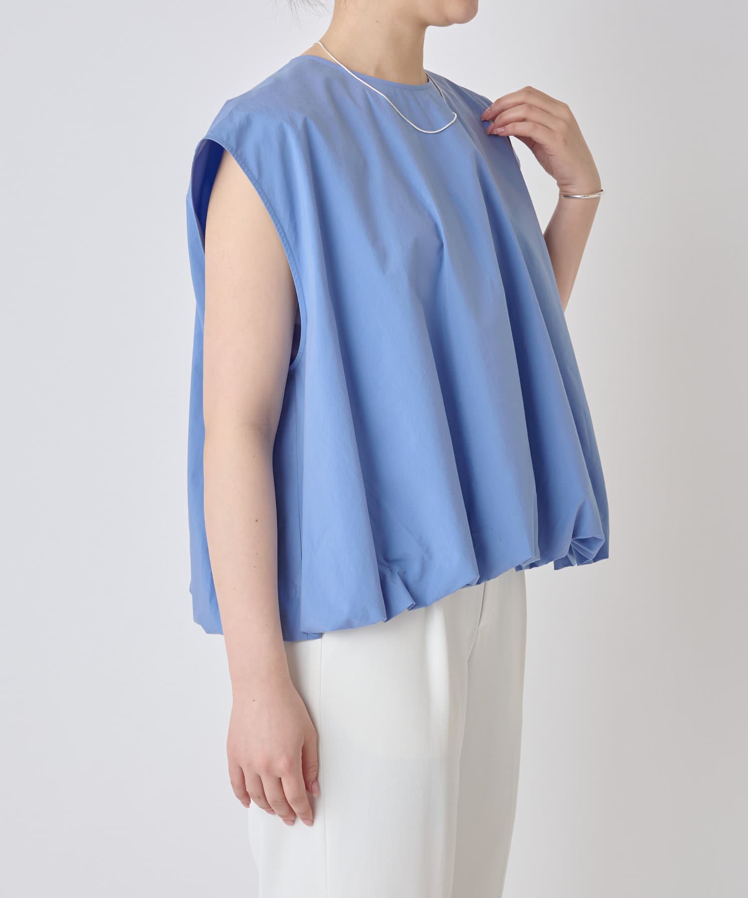 華やかなバルーンシルエットが着映えるノースリーブブラウス。