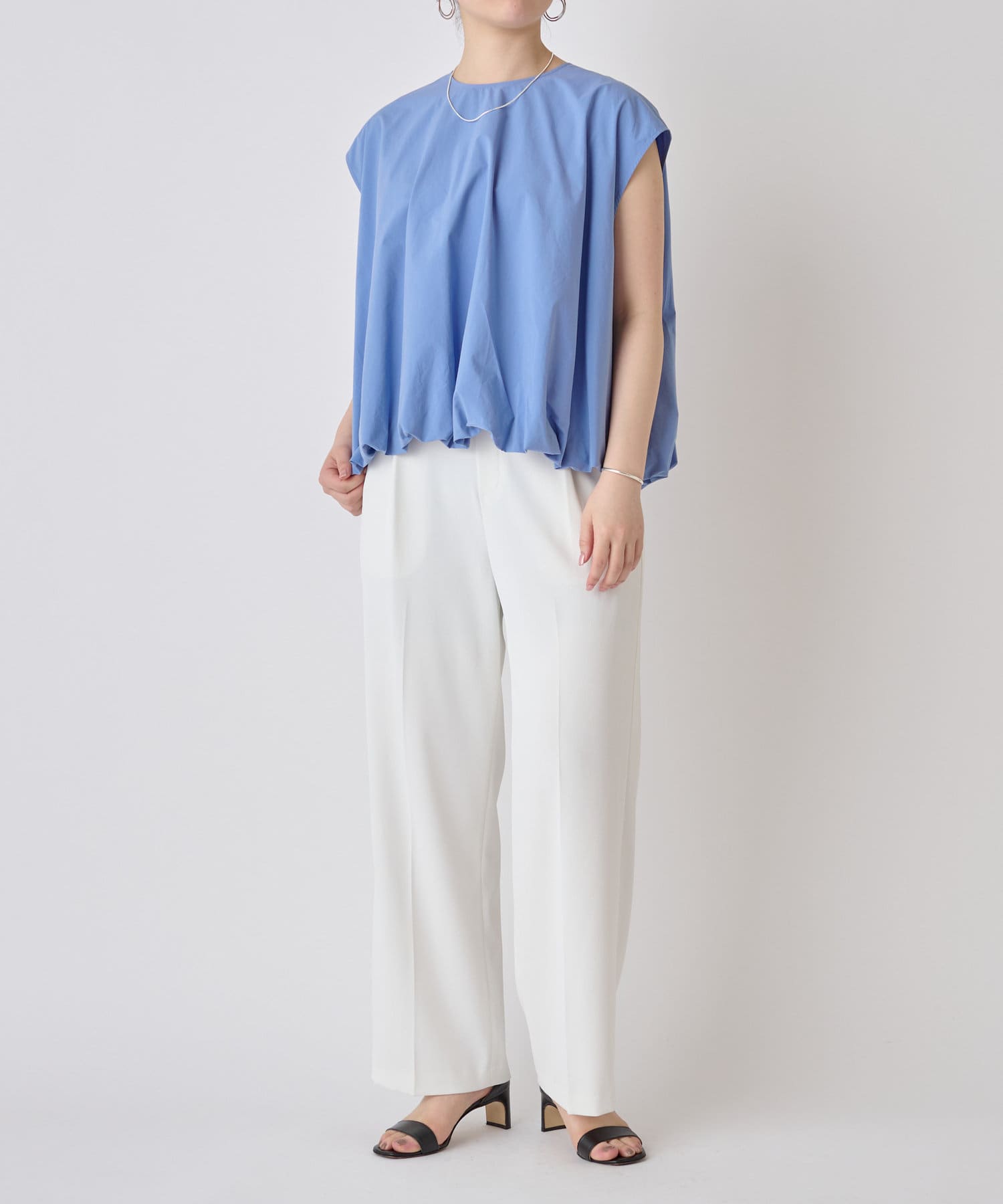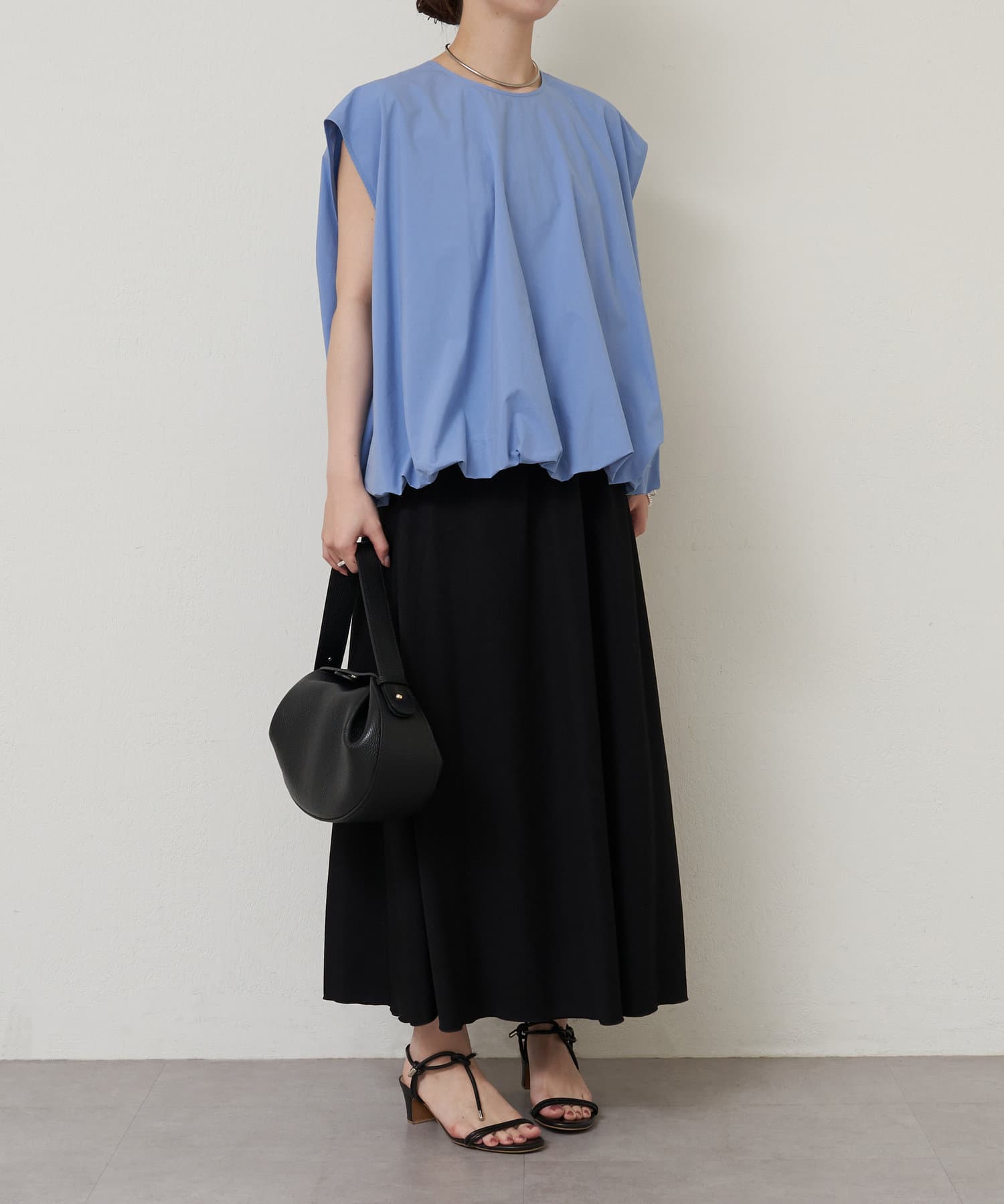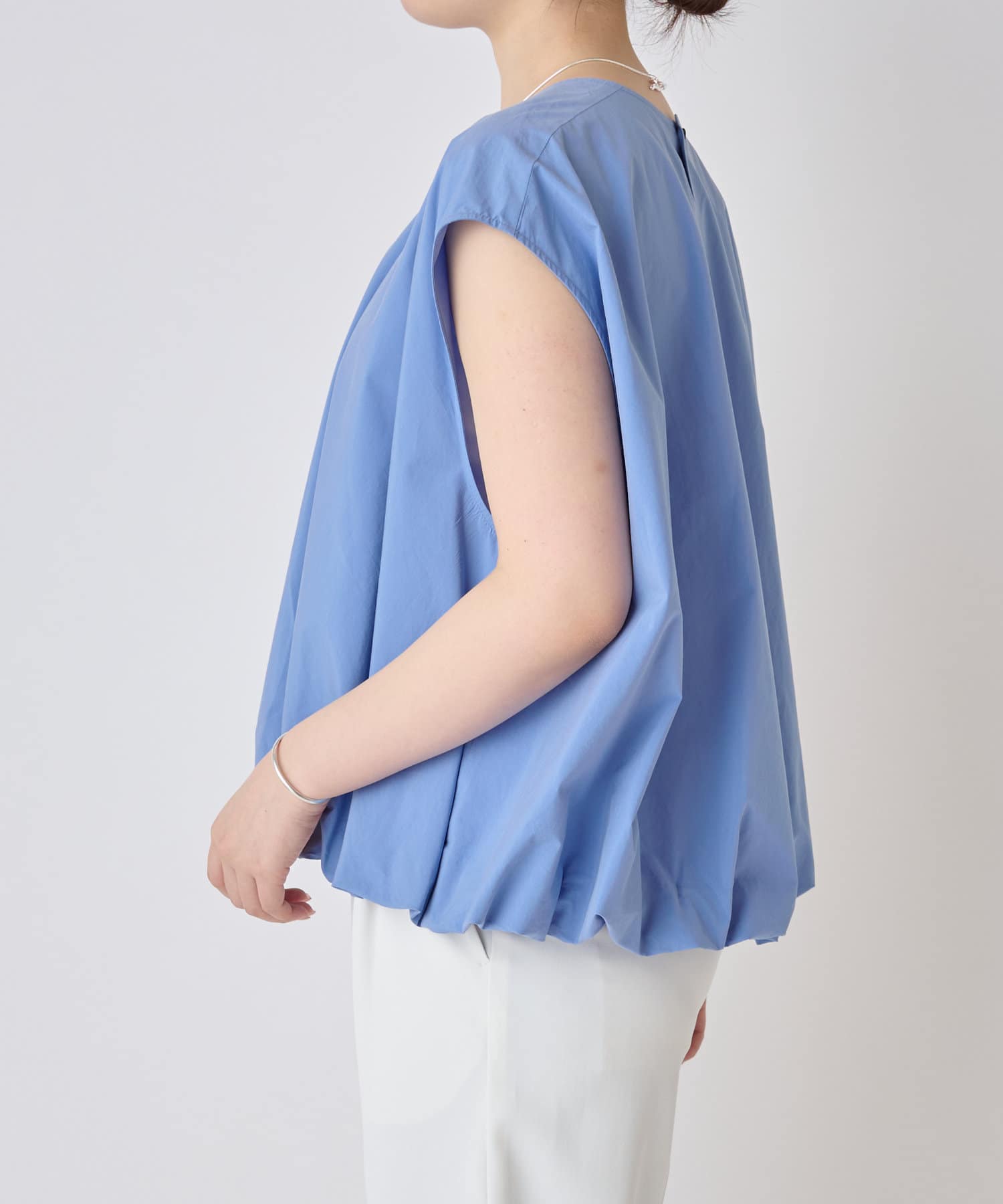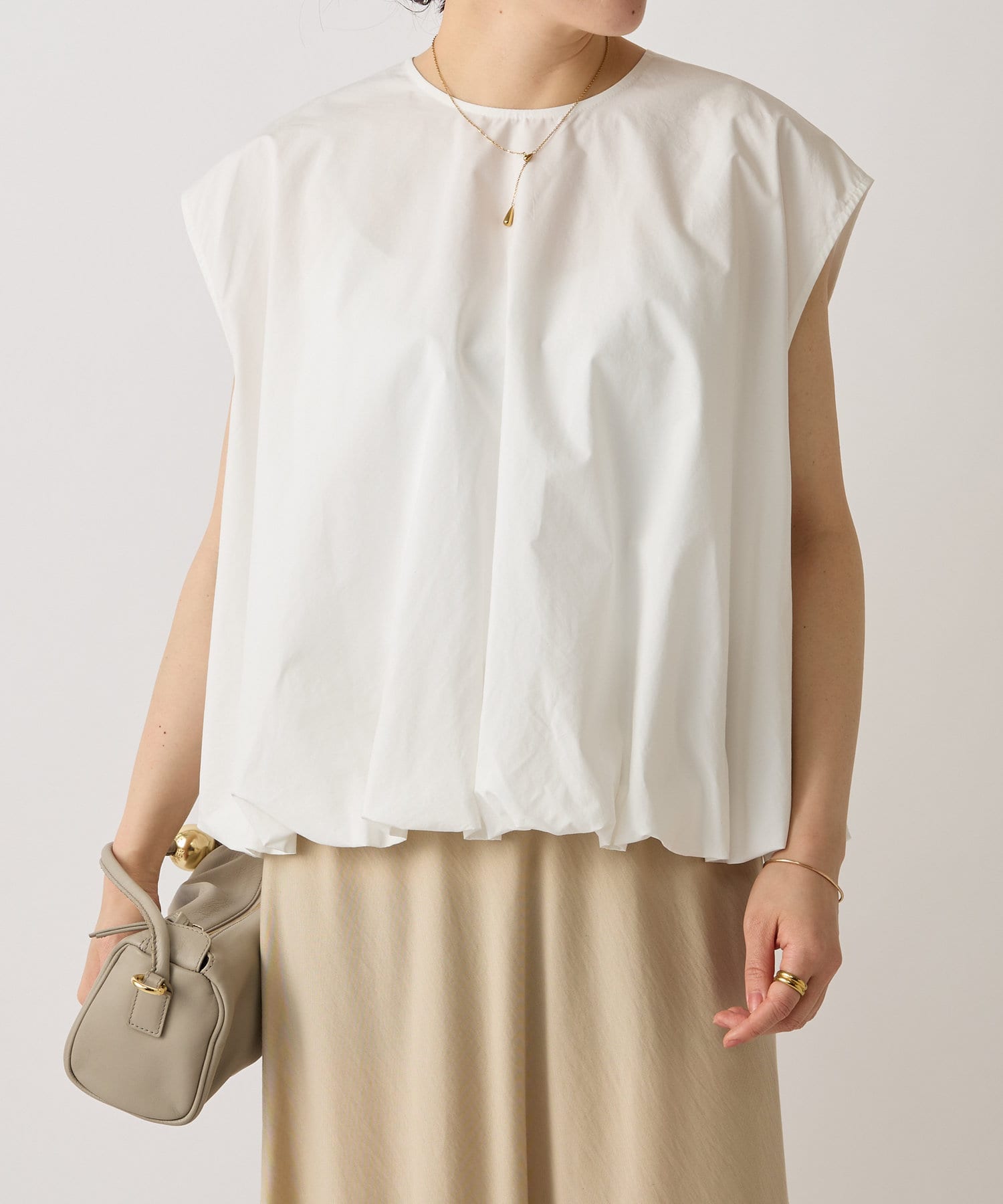 華やかなバルーンシルエットが着映えるノースリーブブラウス。