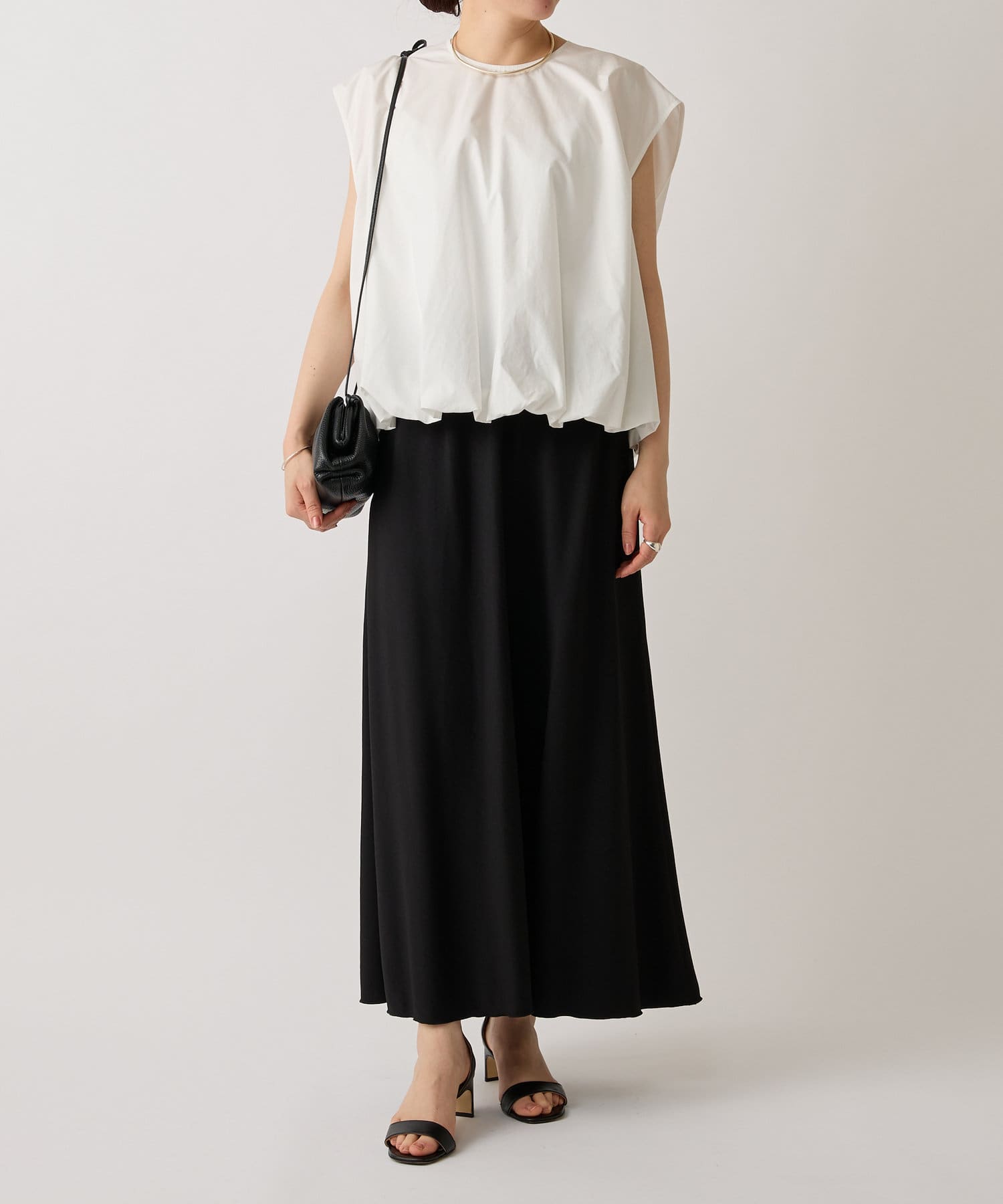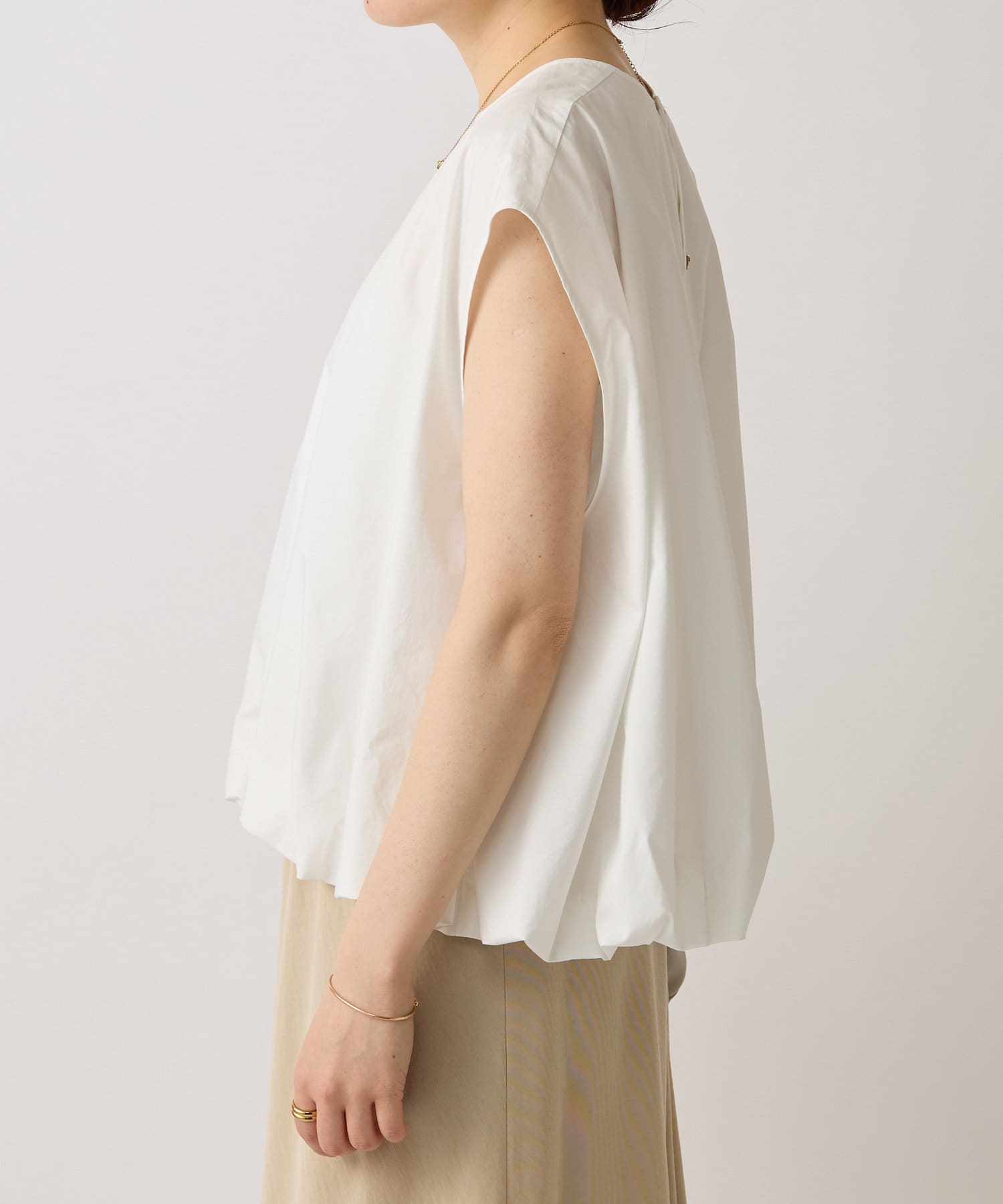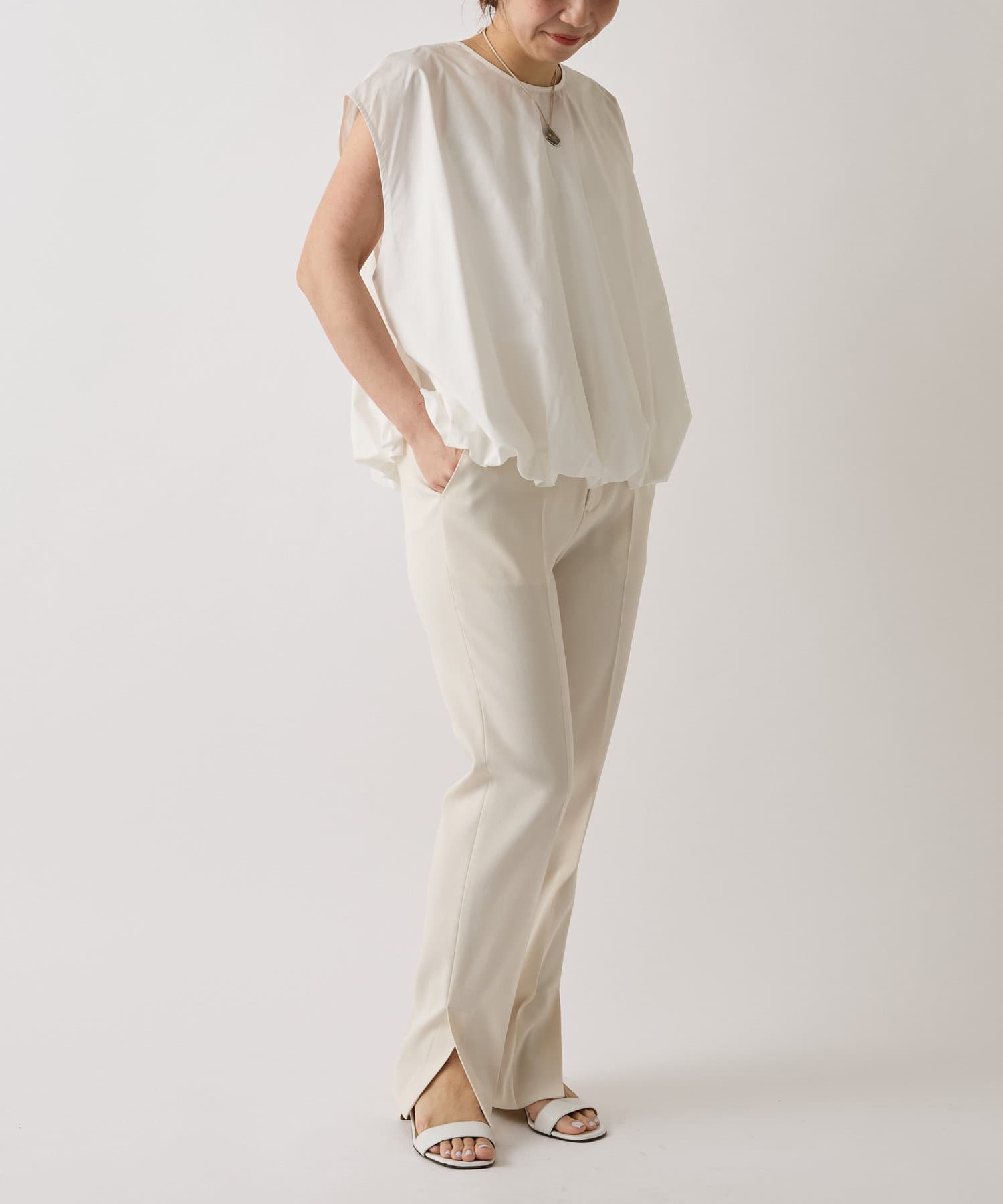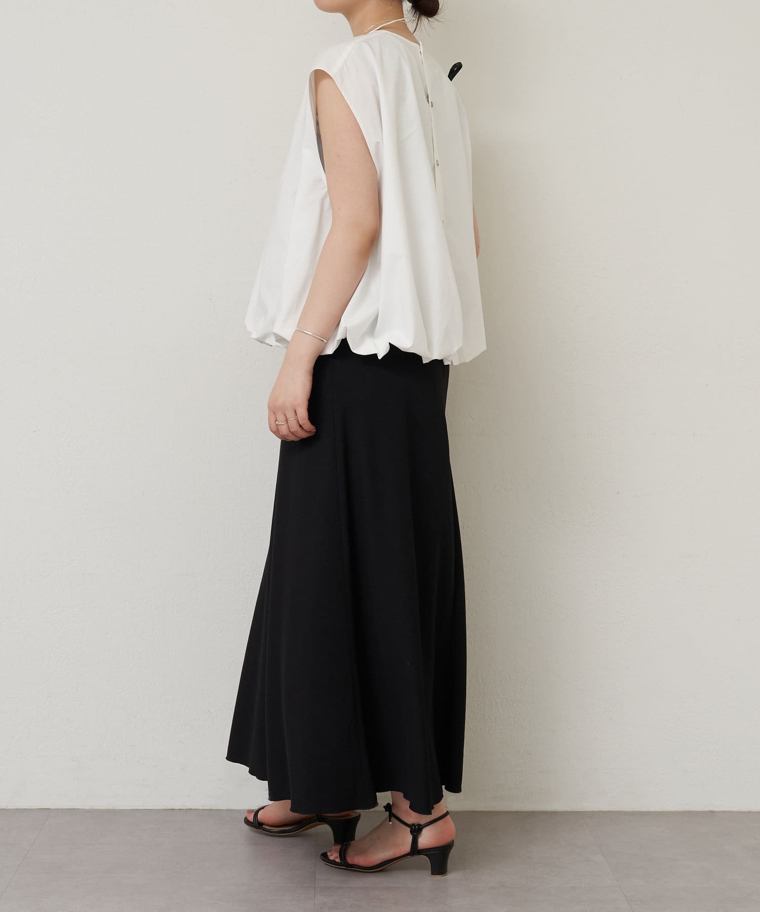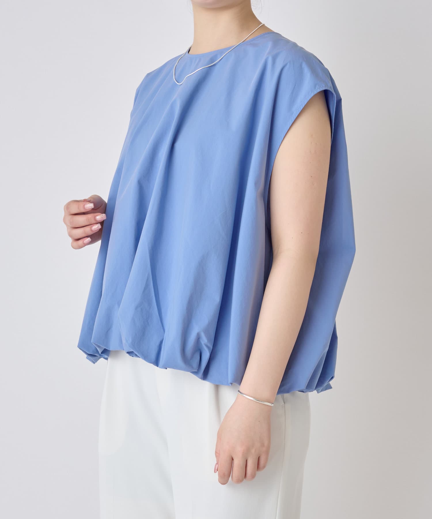 華やかなバルーンシルエットが着映えるノースリーブブラウス。
