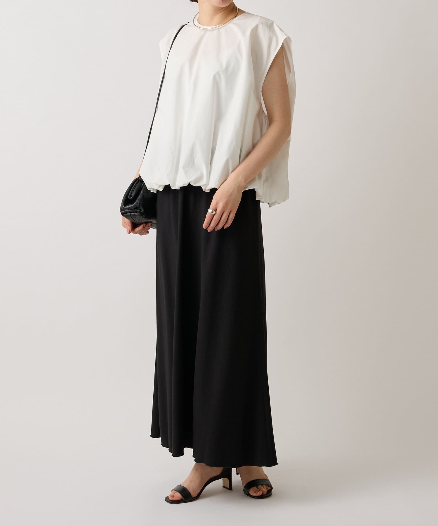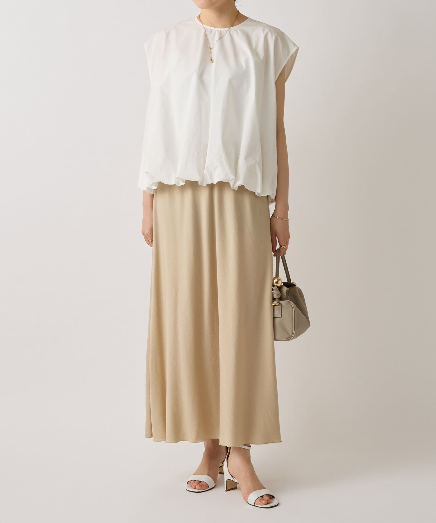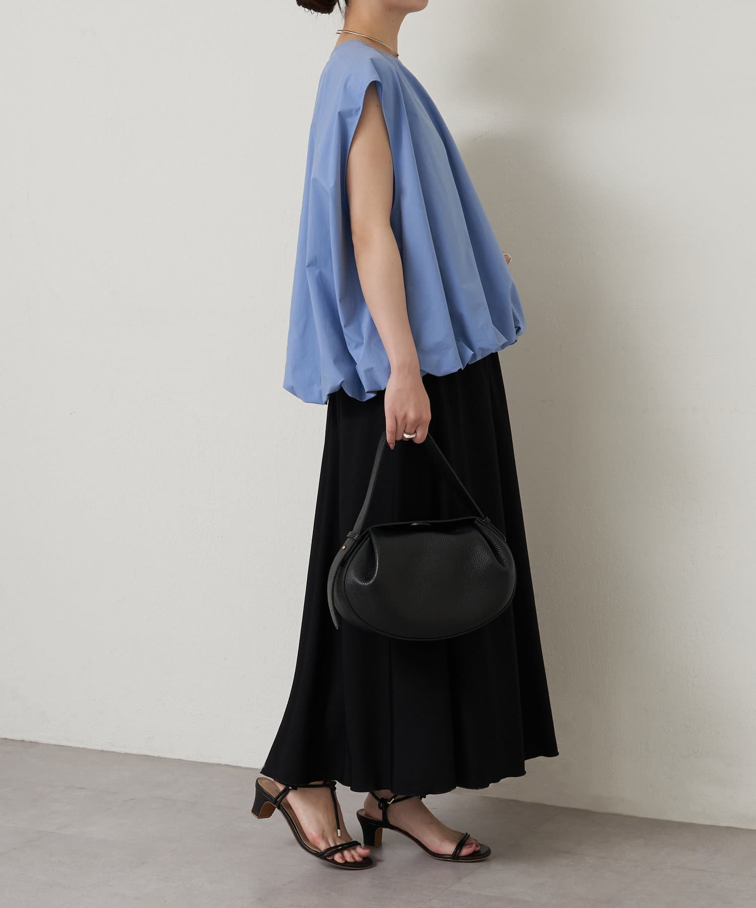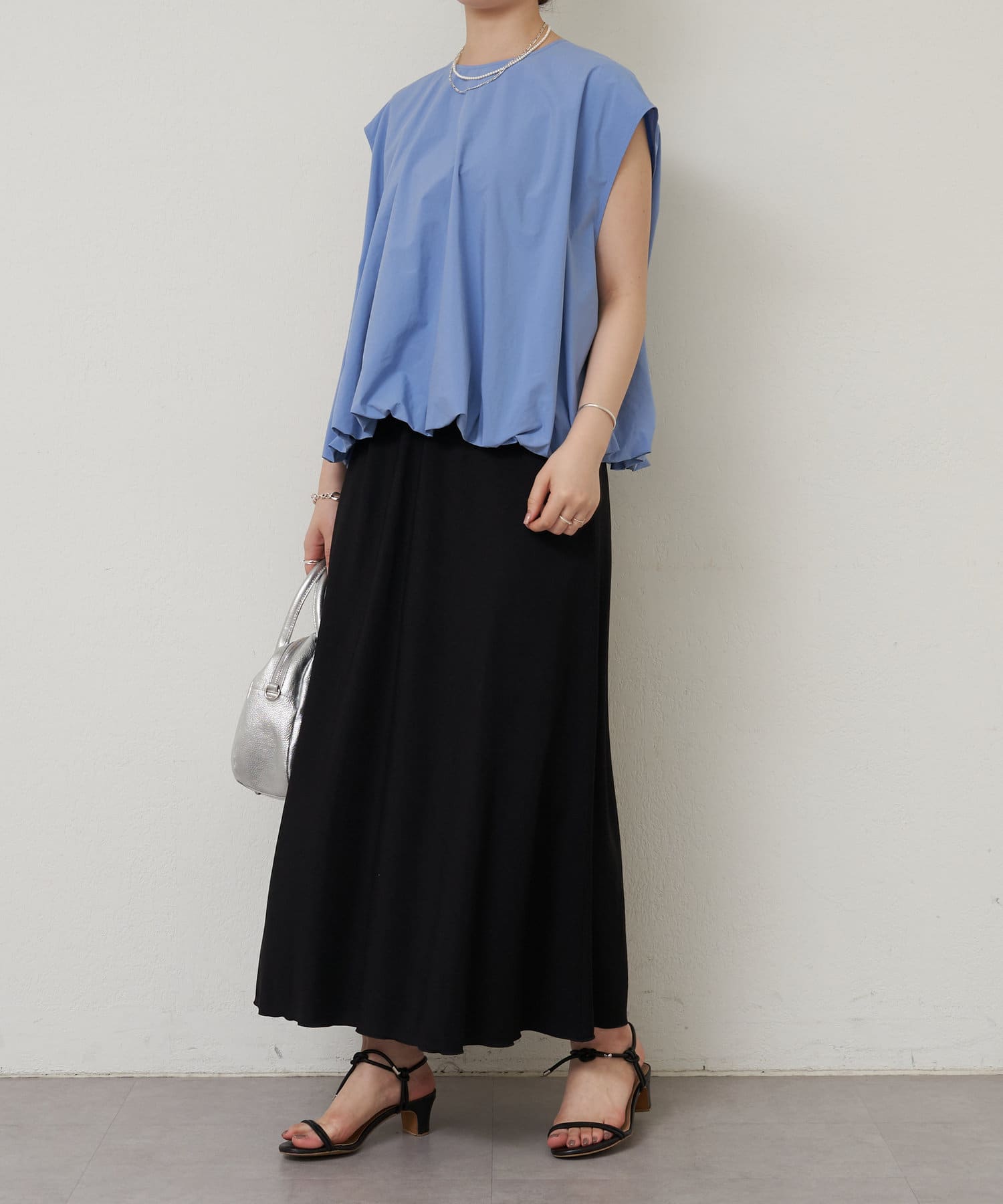 華やかなバルーンシルエットが着映えるノースリーブブラウス。
