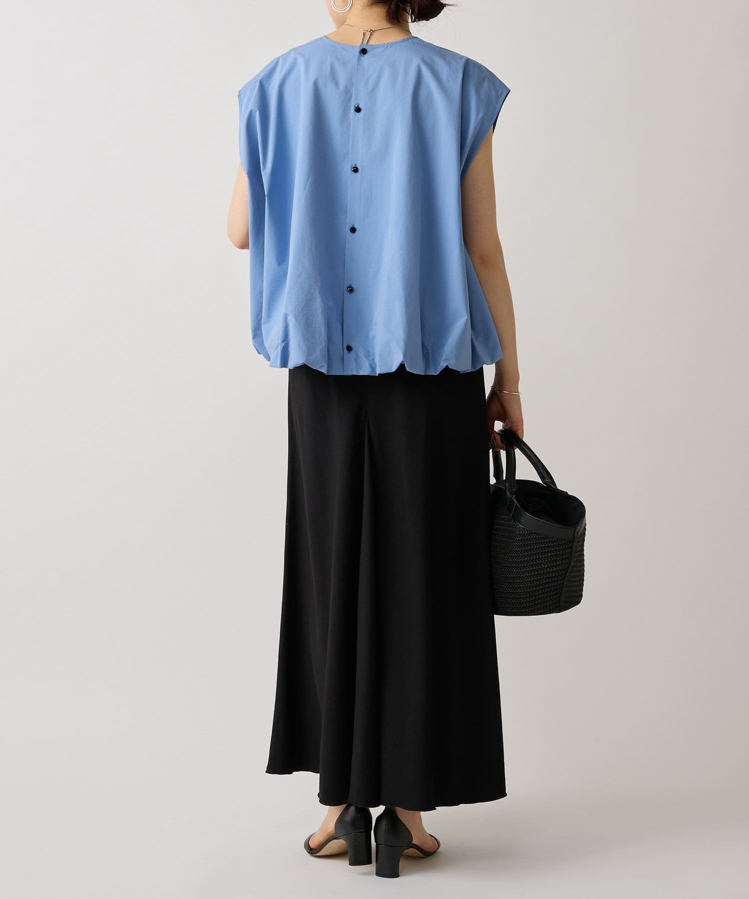 後ろボタンバルーンブラウス