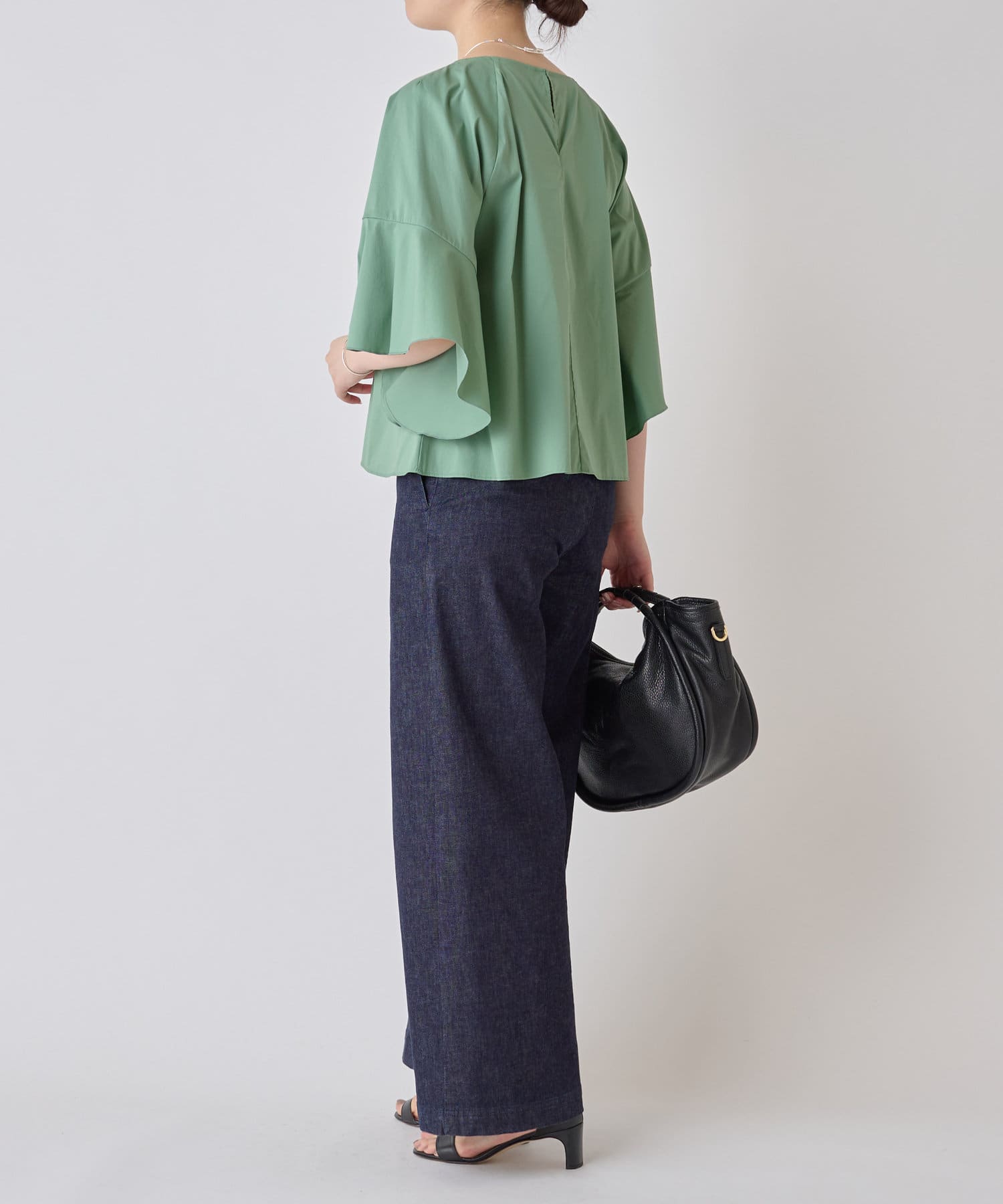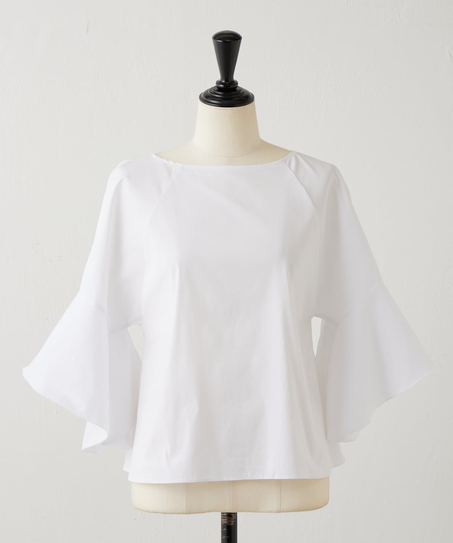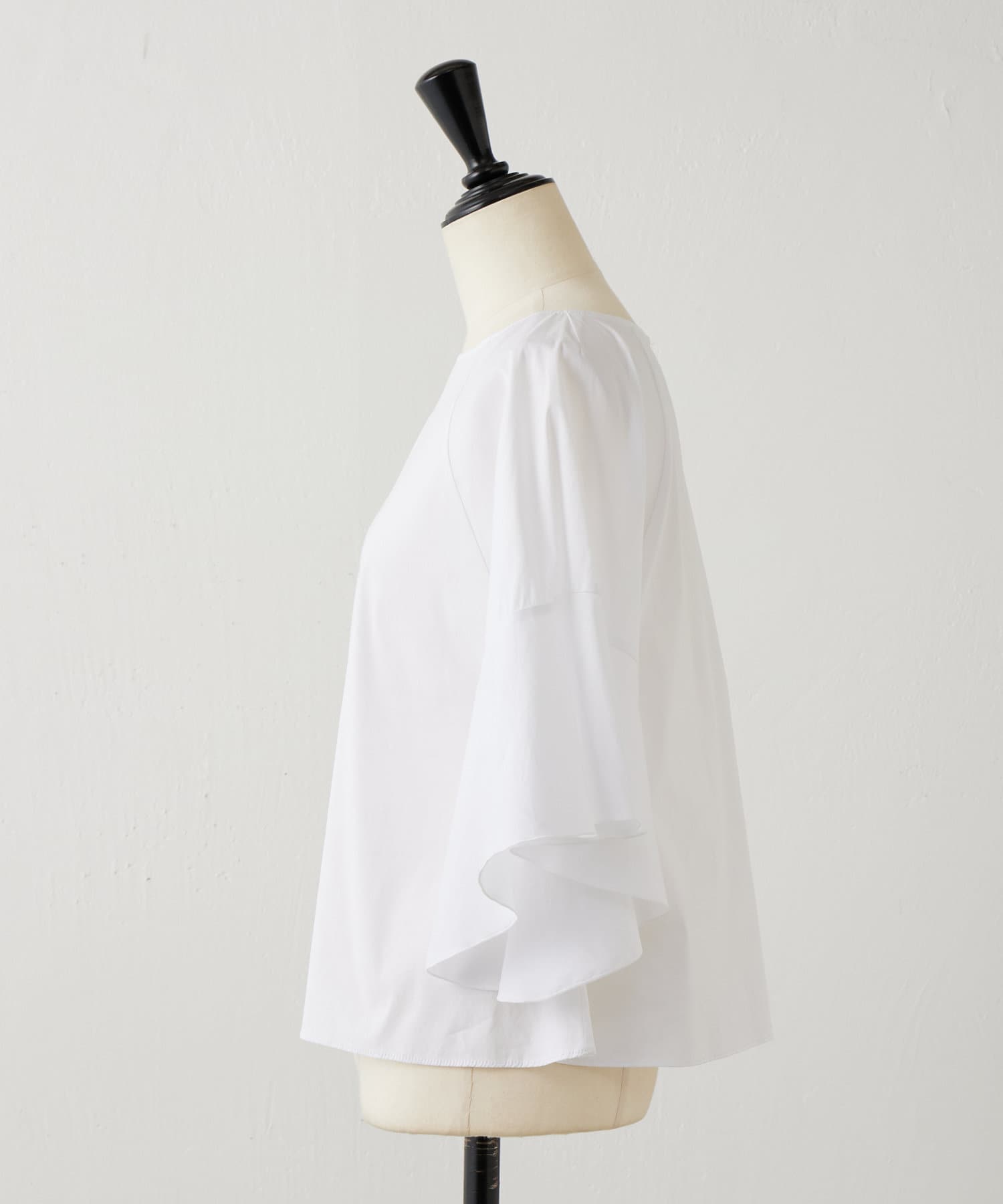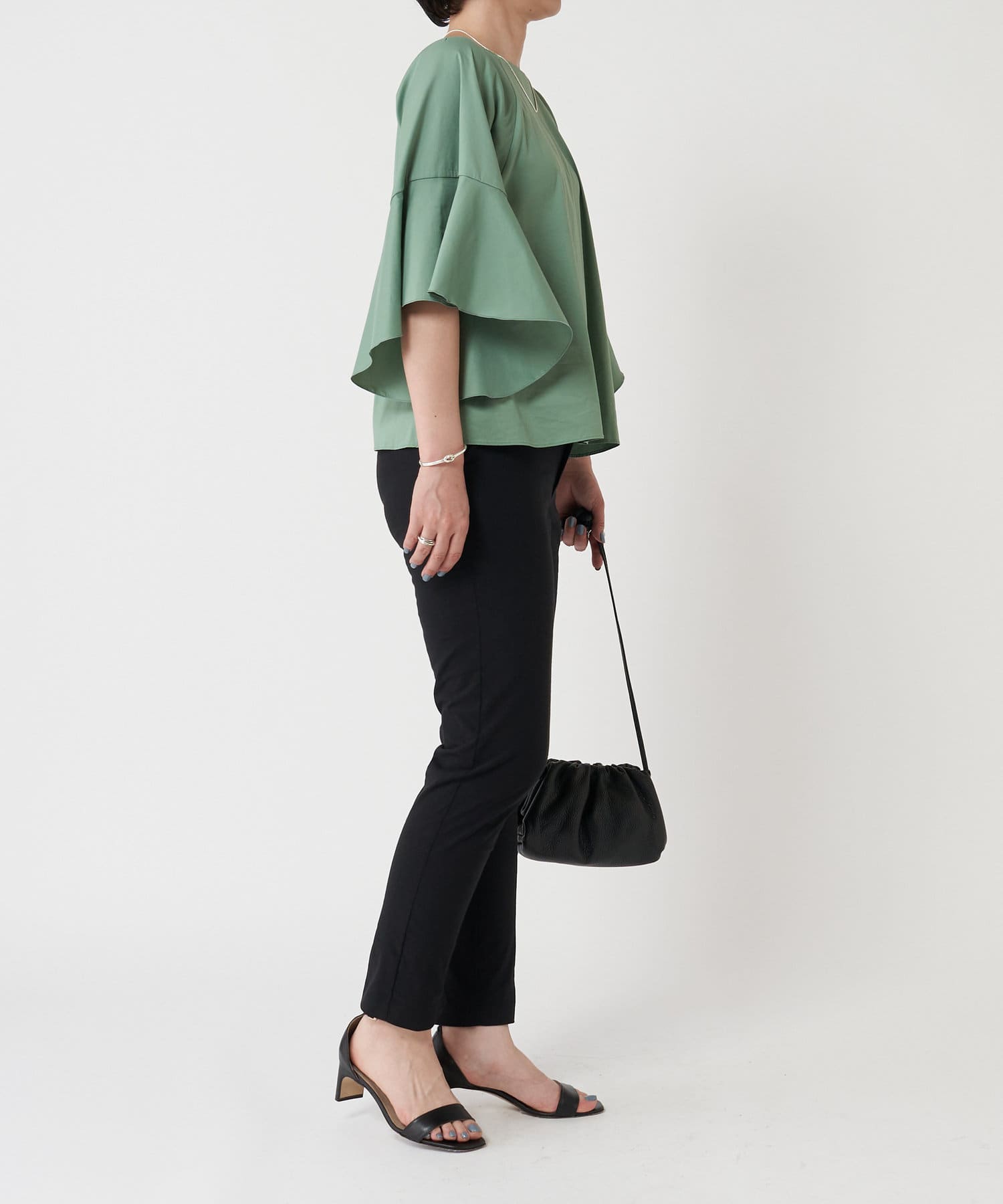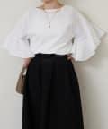 袖のフレアデザインが、さりげない華やかさをプラス。