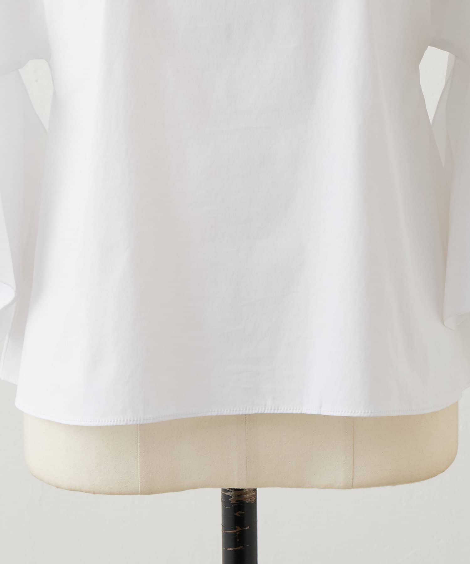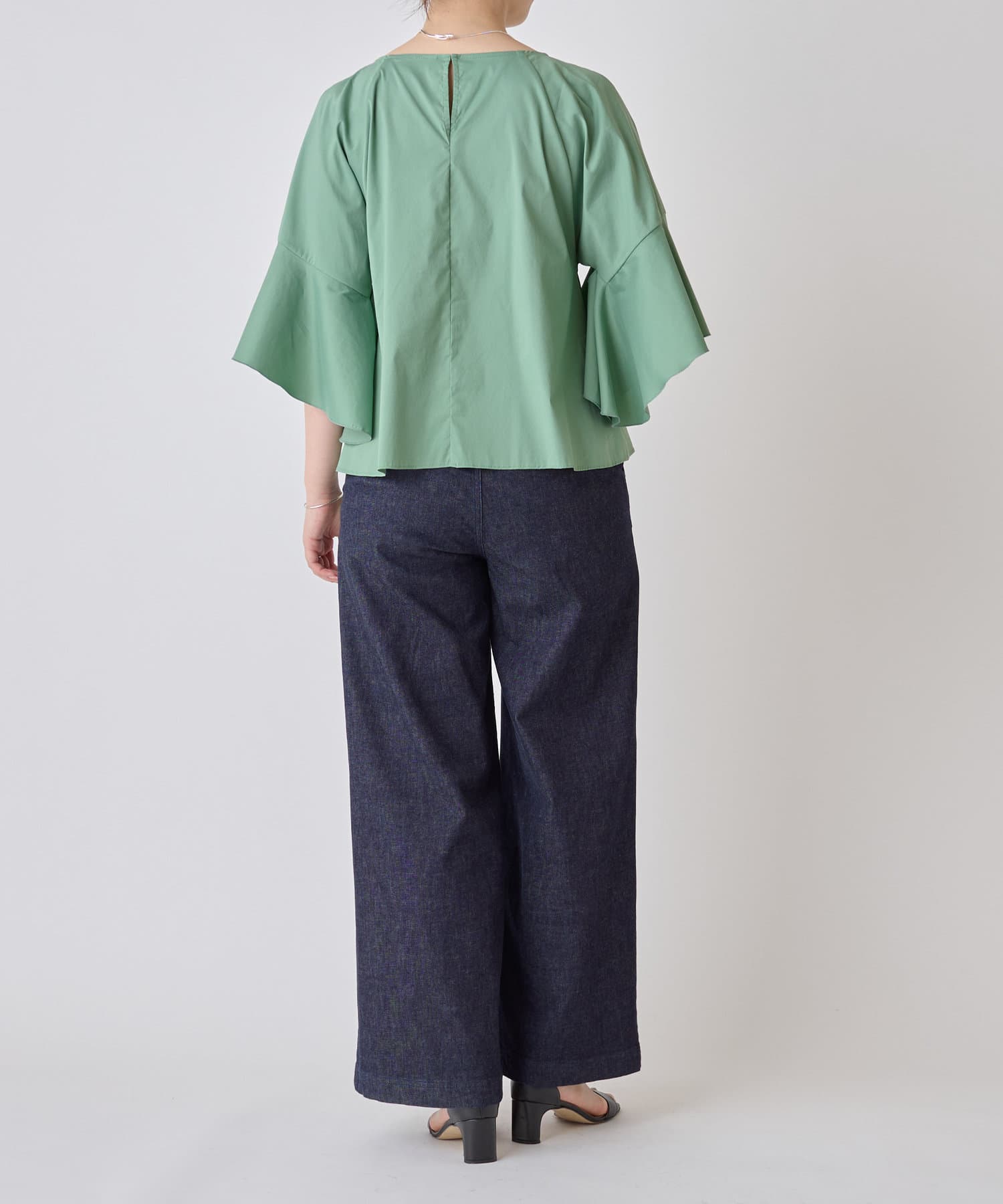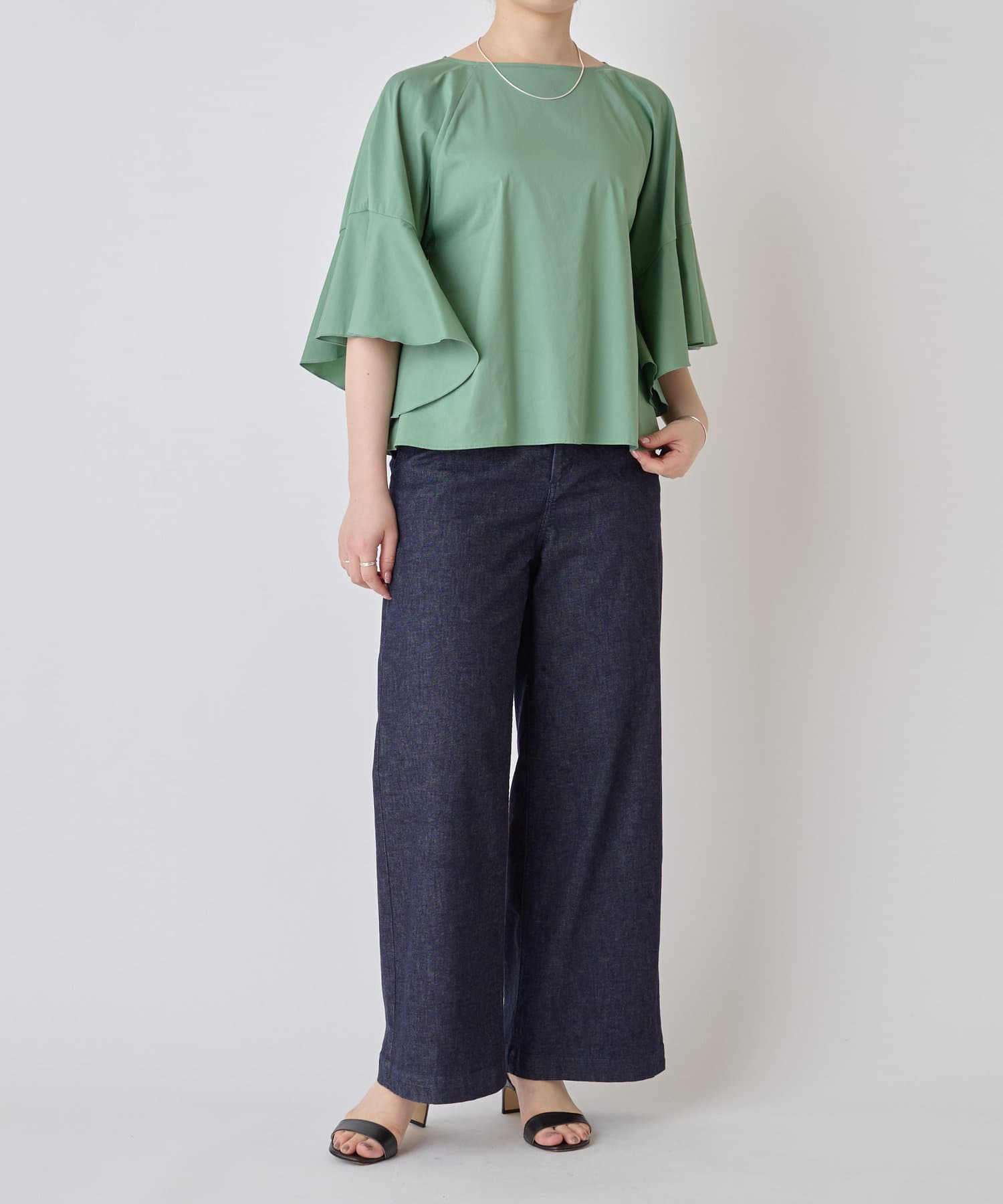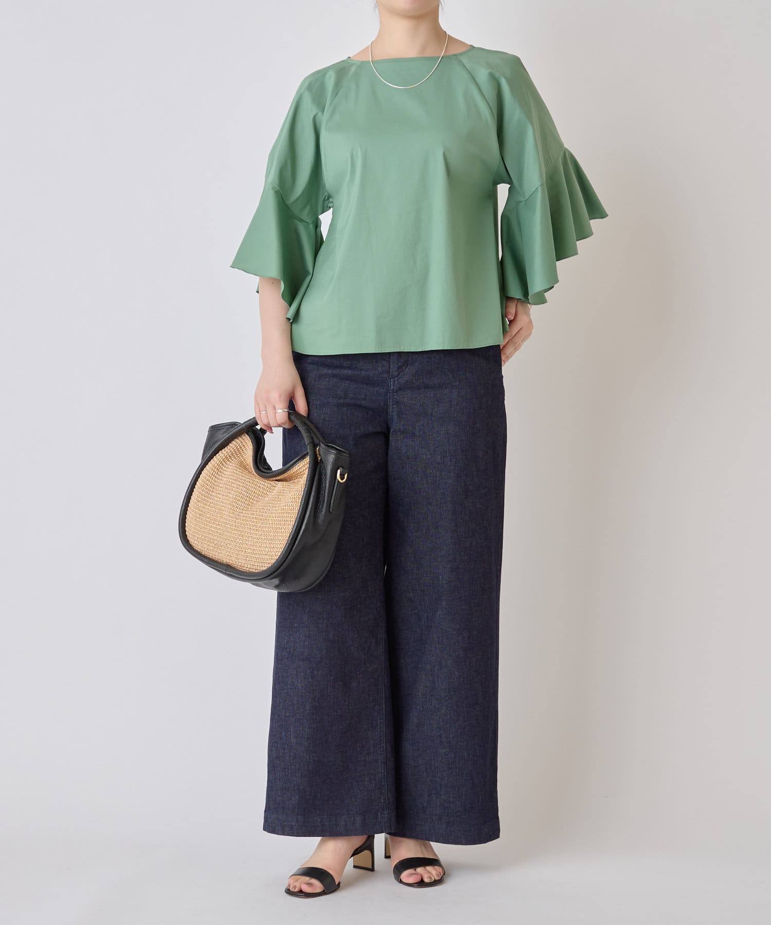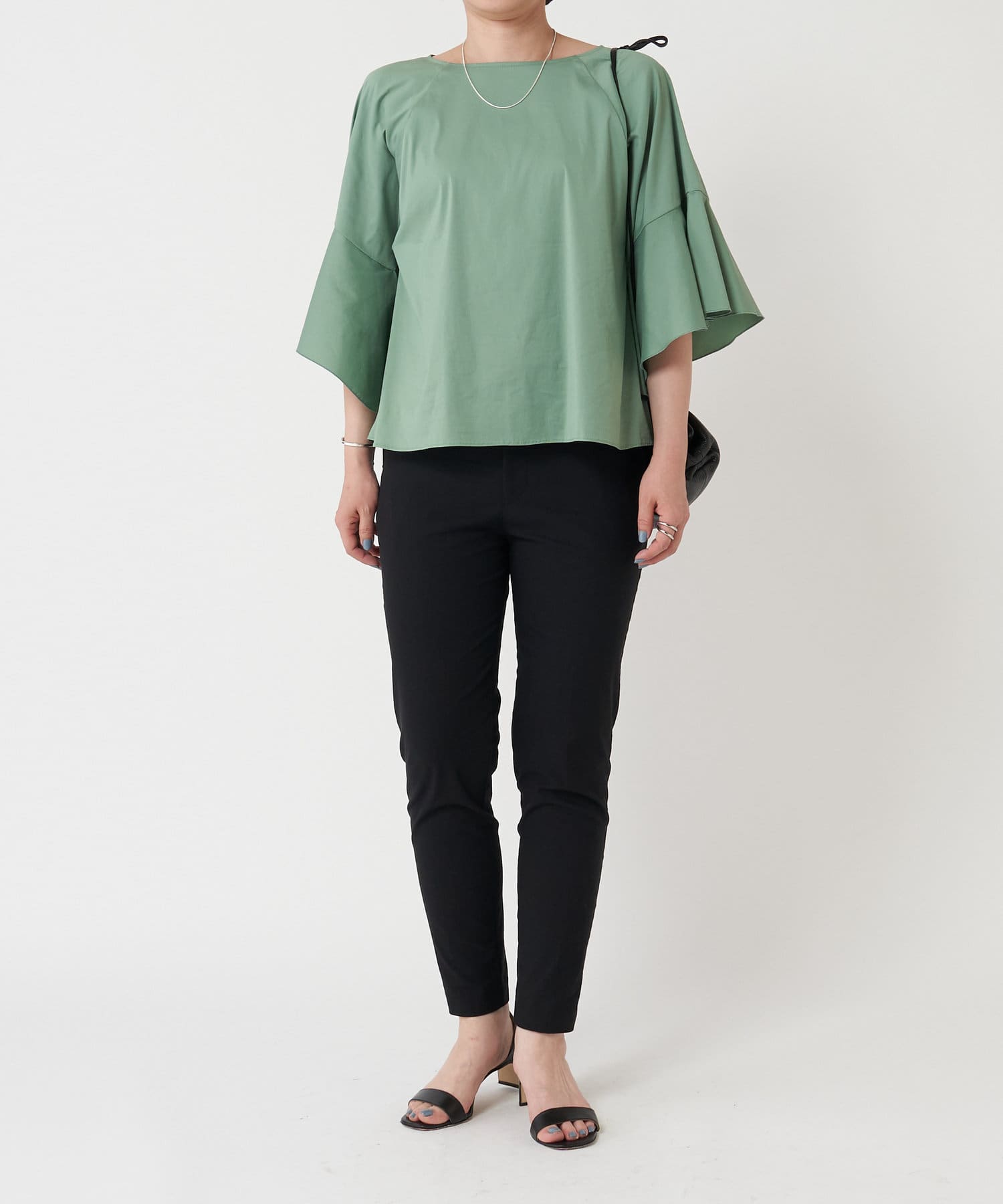 袖のフレアデザインが、さりげない華やかさをプラス。