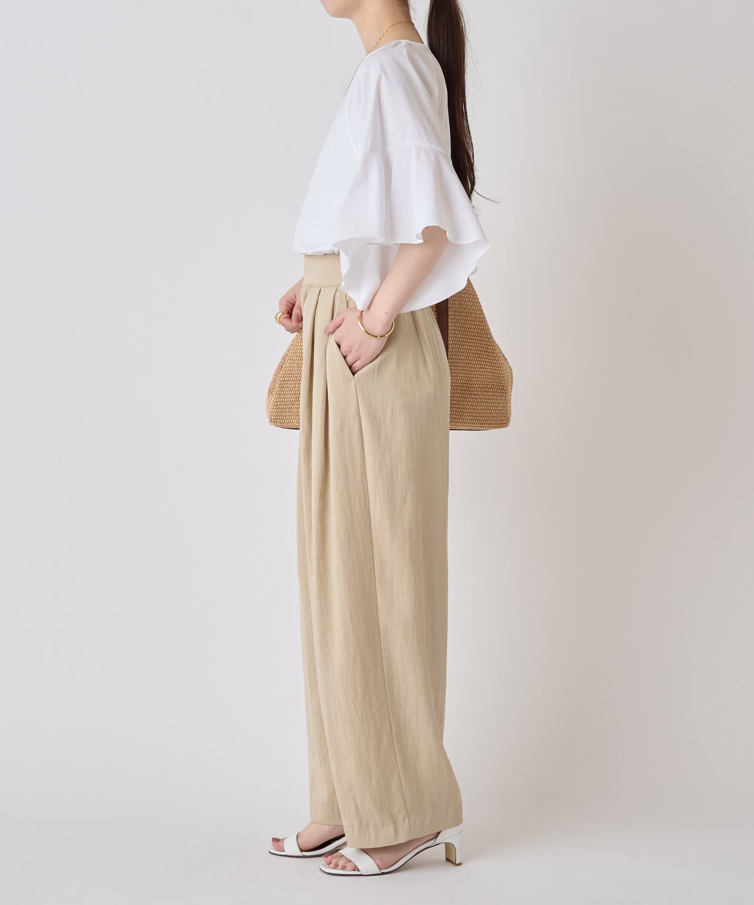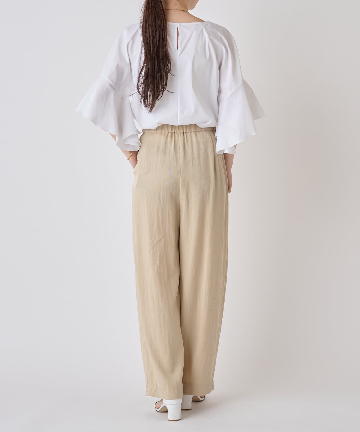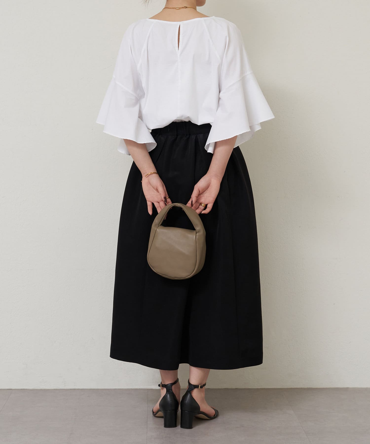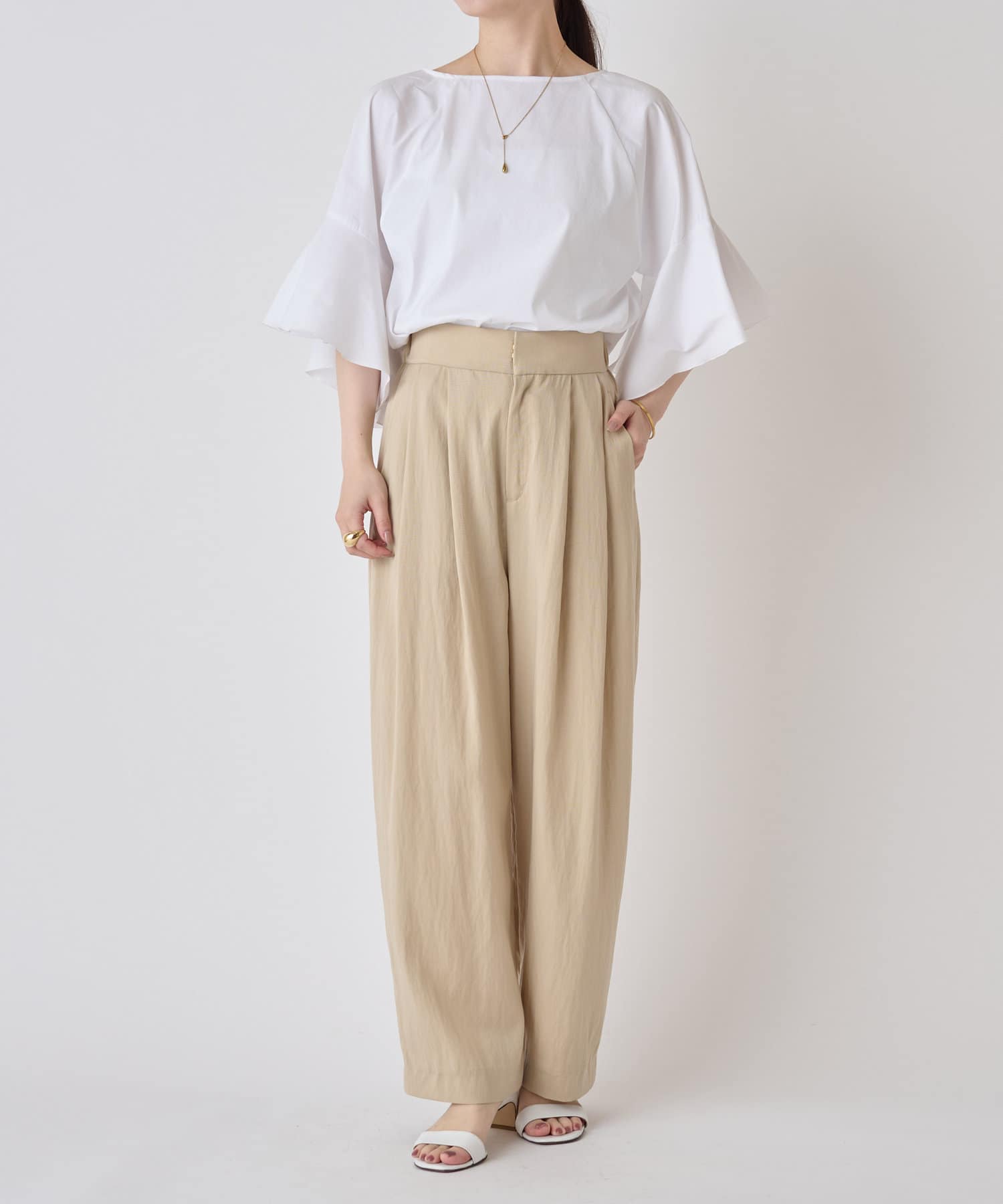 袖のフレアデザインが、さりげない華やかさをプラス。
