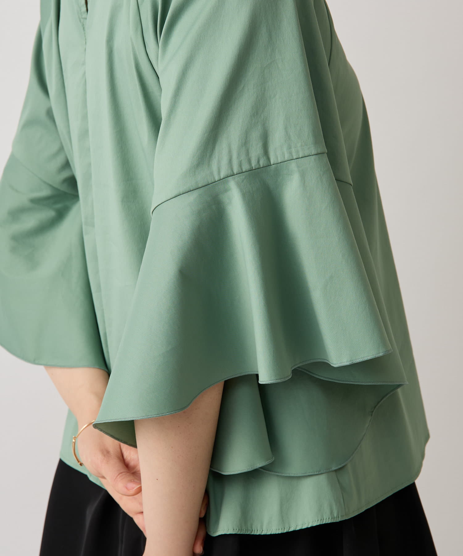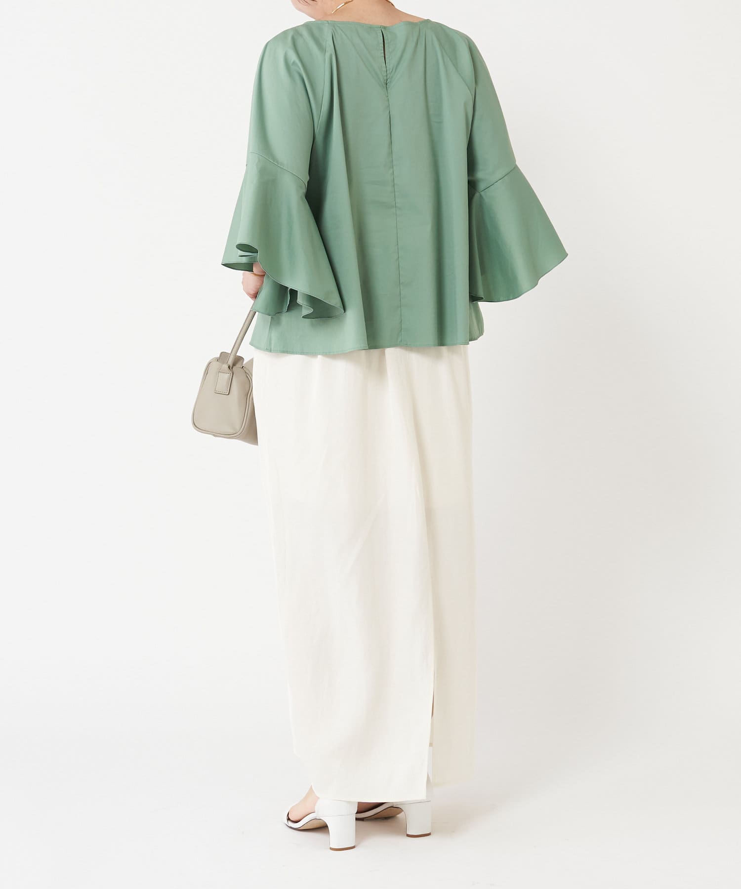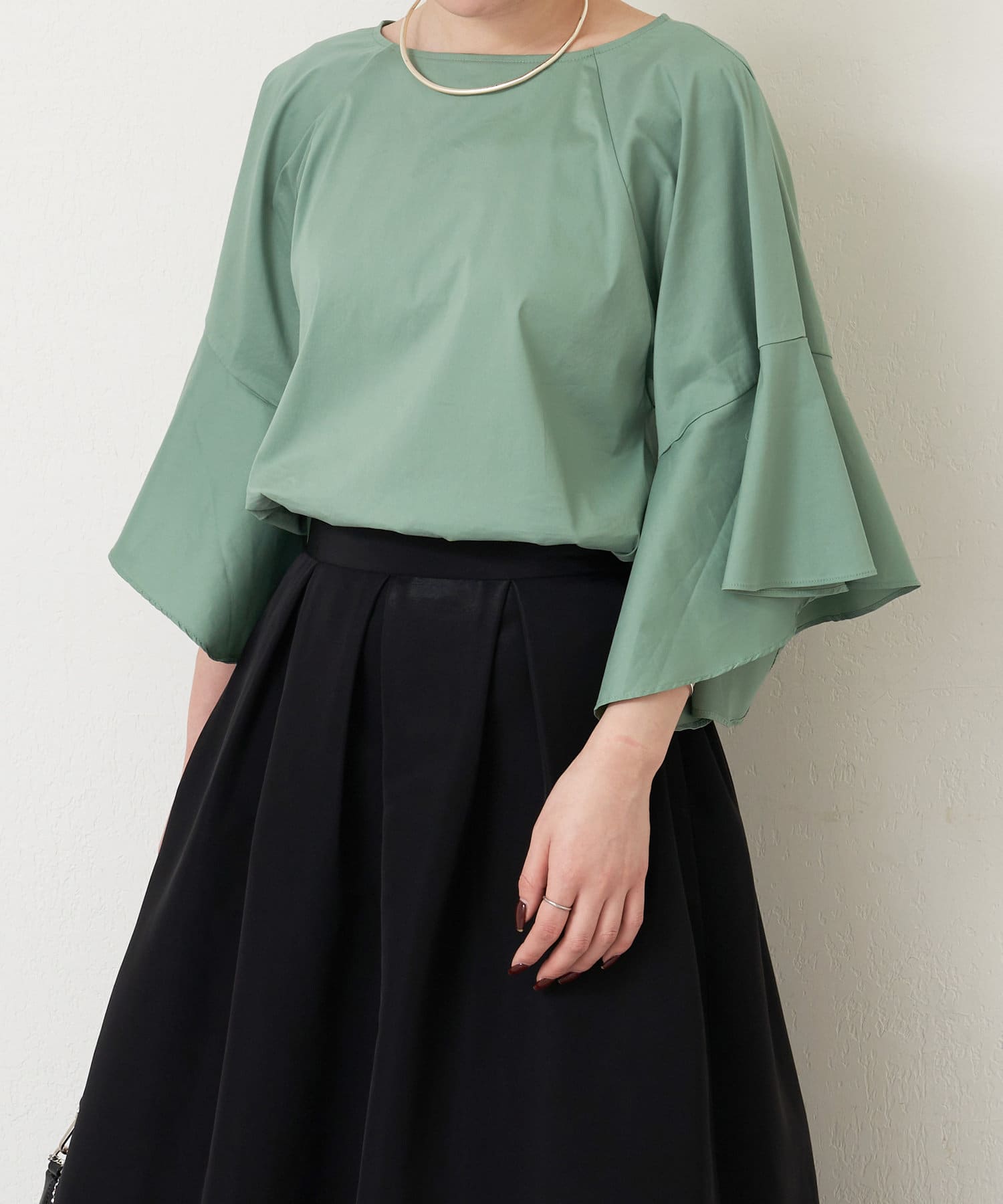 着るだけで女性らしい雰囲気を演出できるフレアデザインスリーブブラウス。