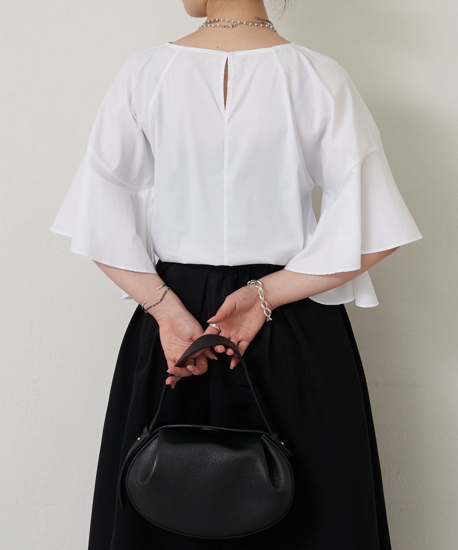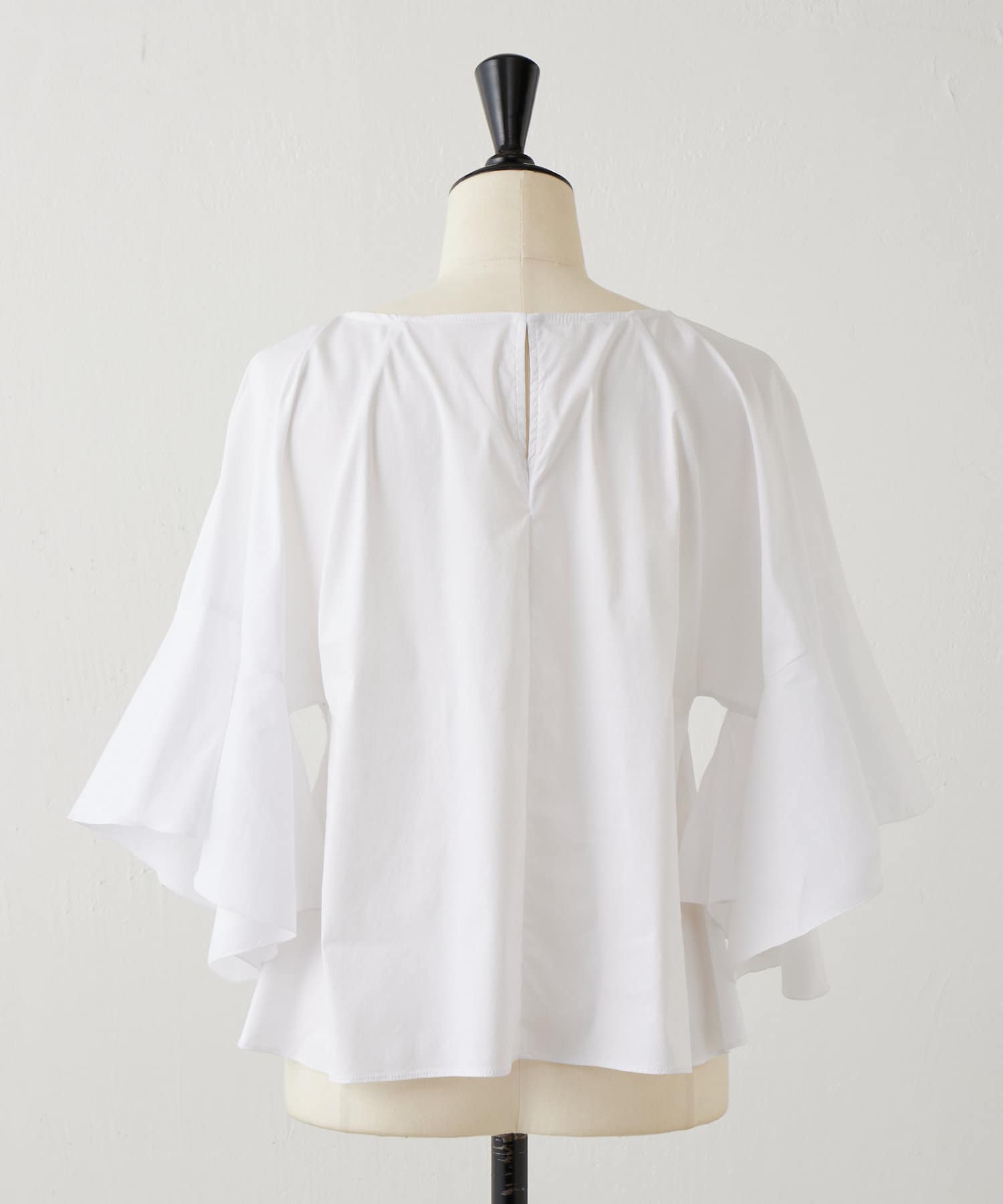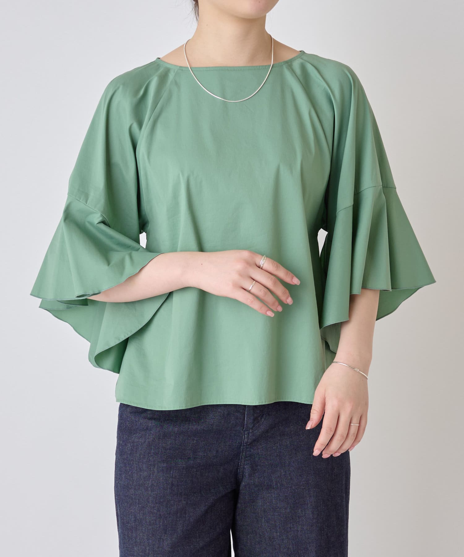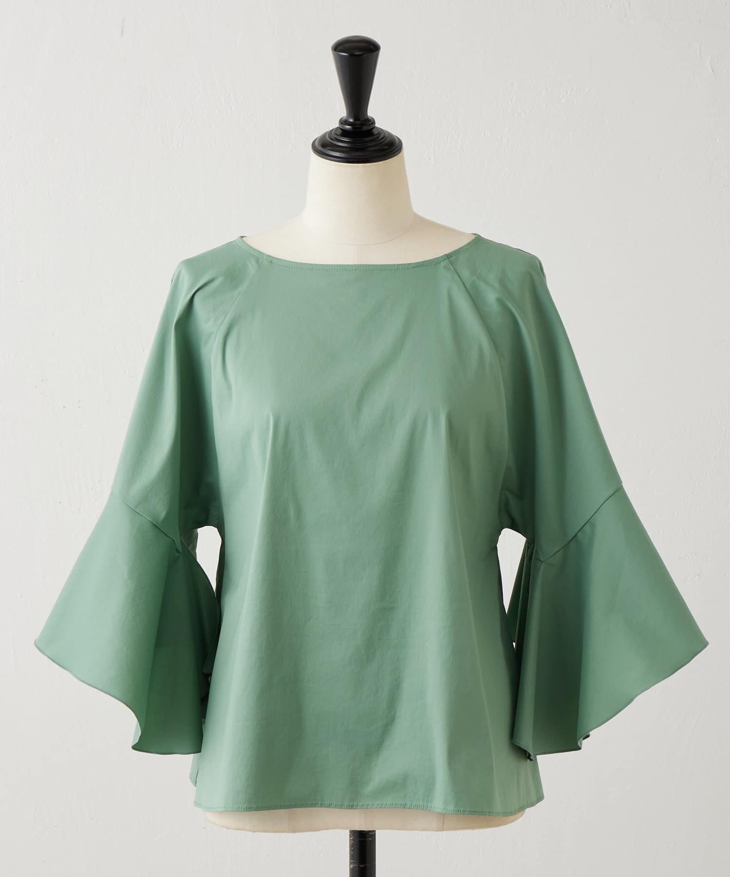 着るだけで女性らしい雰囲気を演出できるフレアデザインスリーブブラウス。