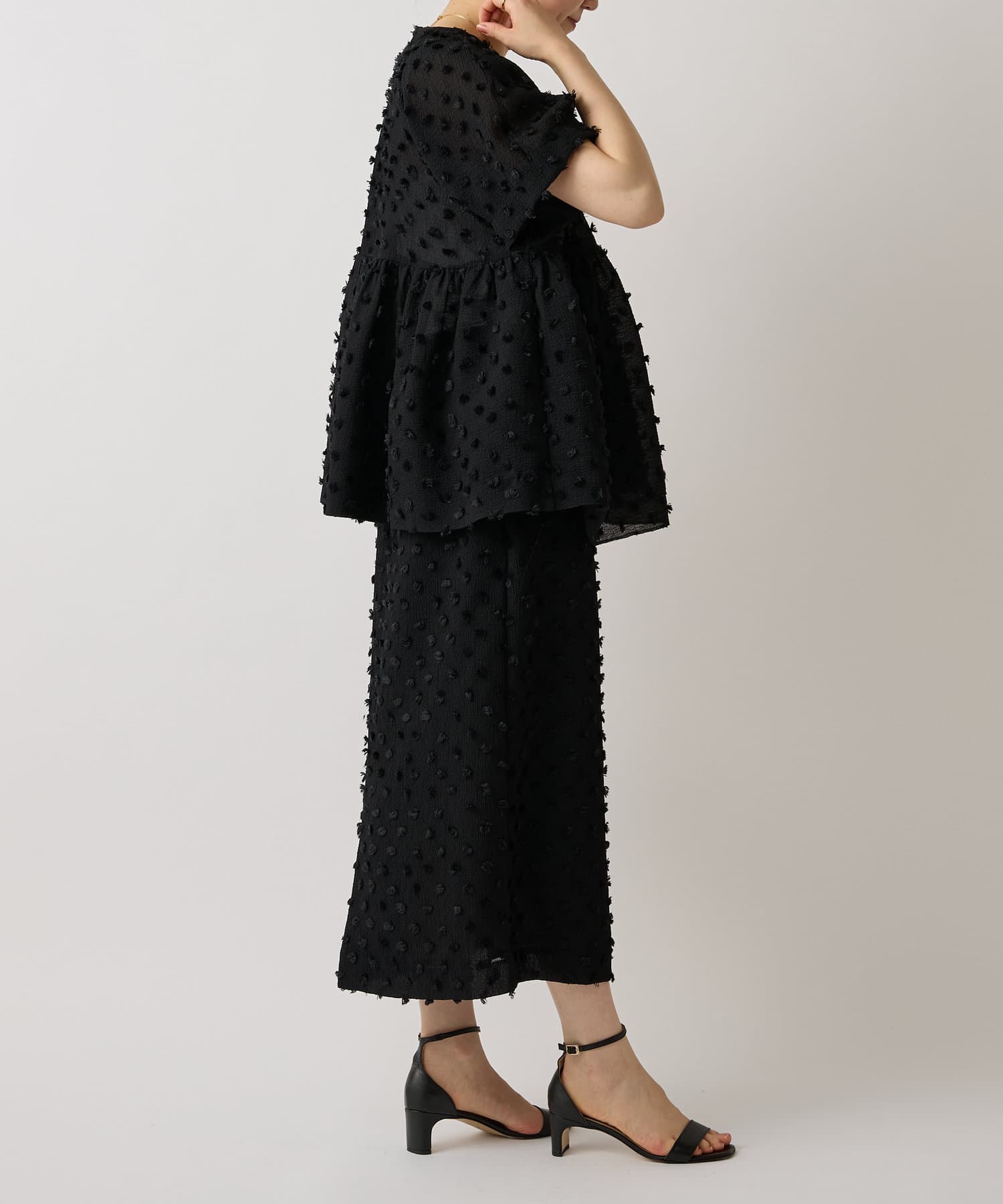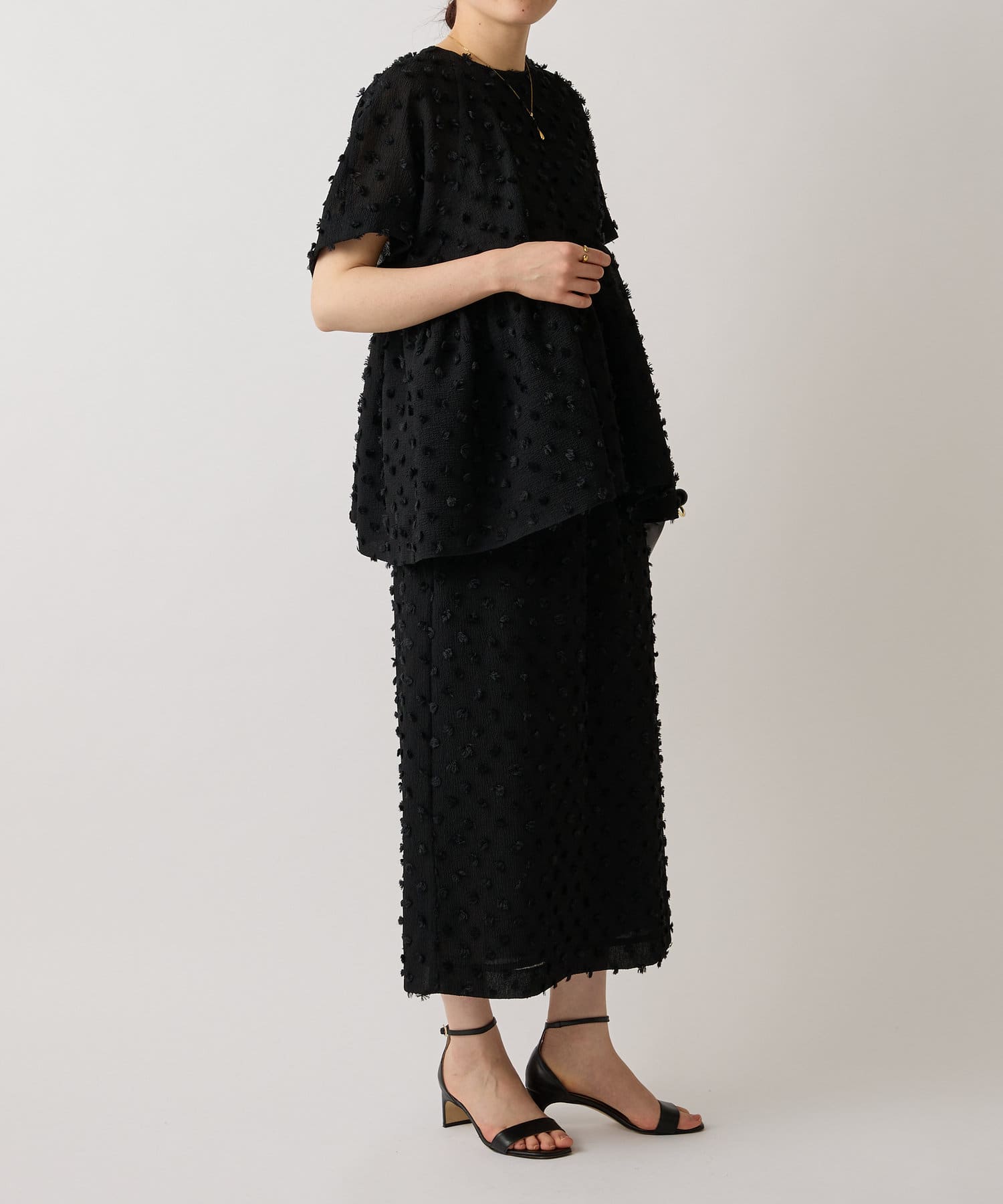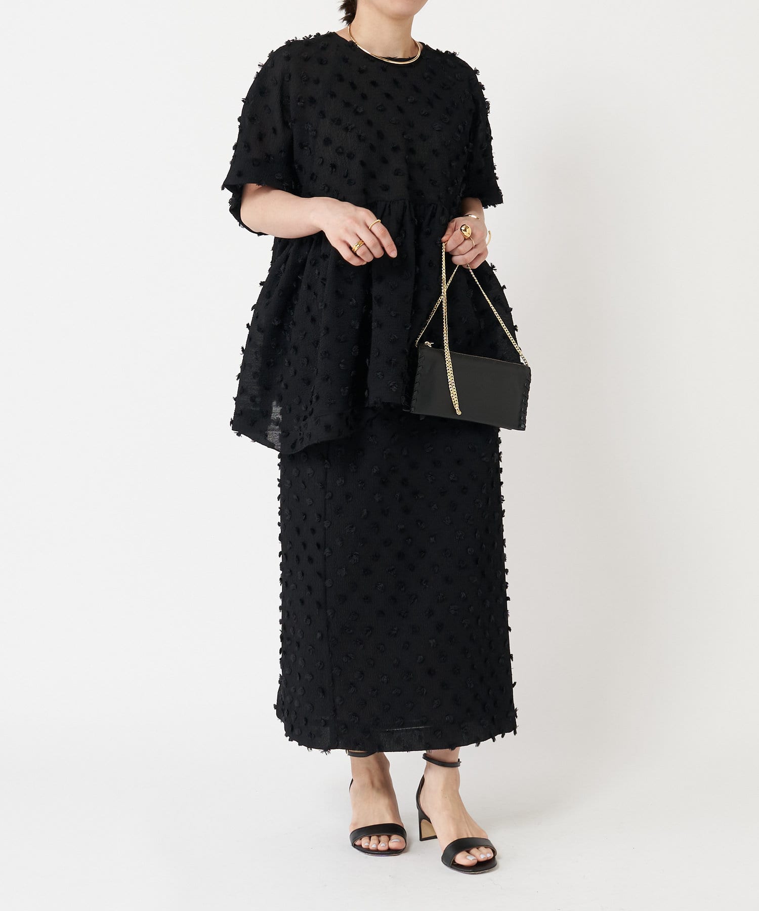 シワ加工を施したエアリーな生地で、ブラックの上品な雰囲気と軽やかさがマッチしています。