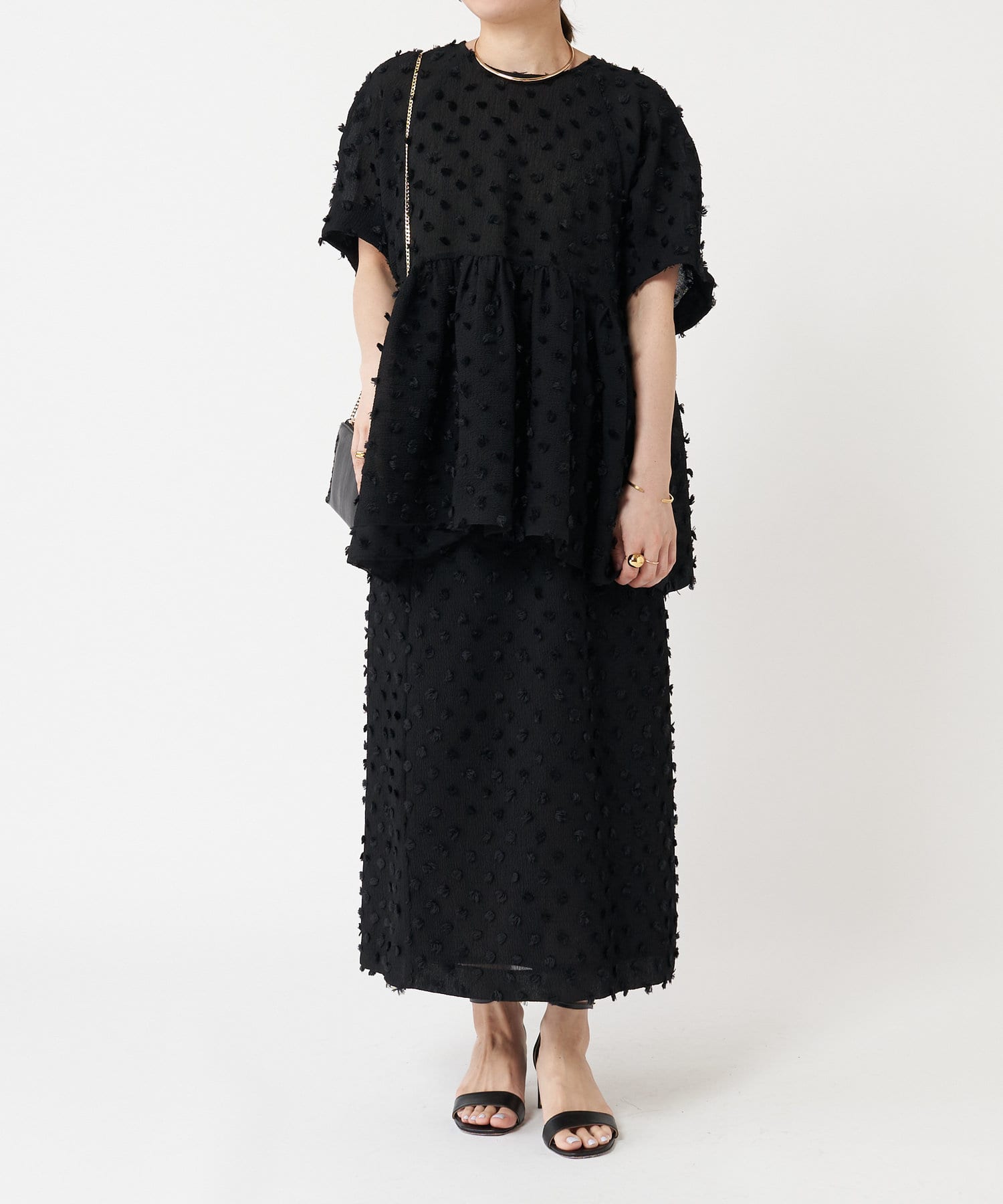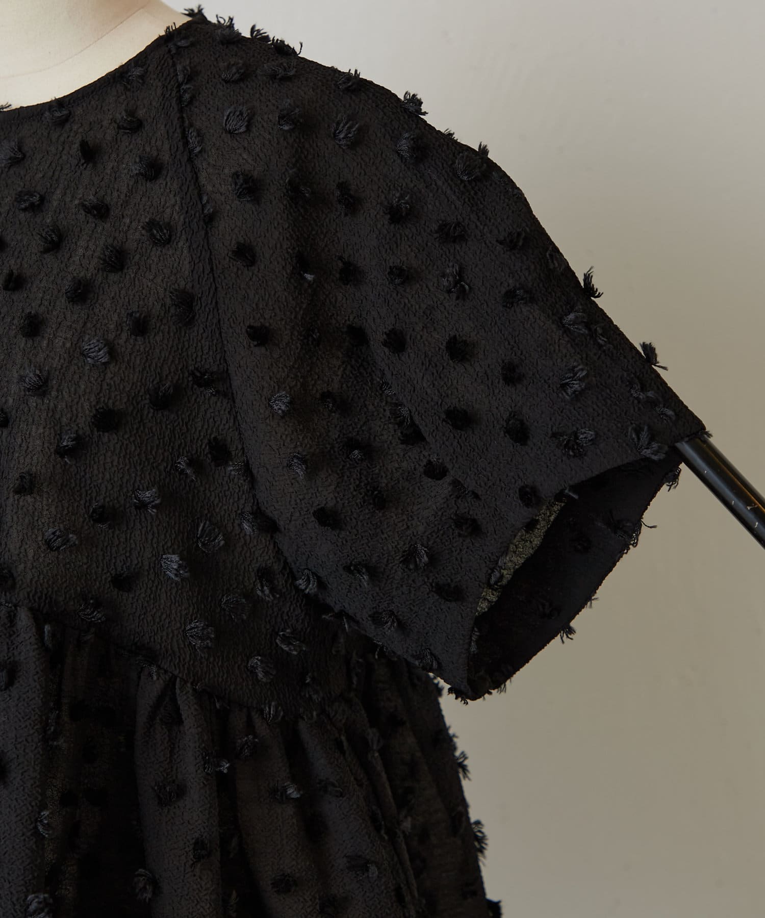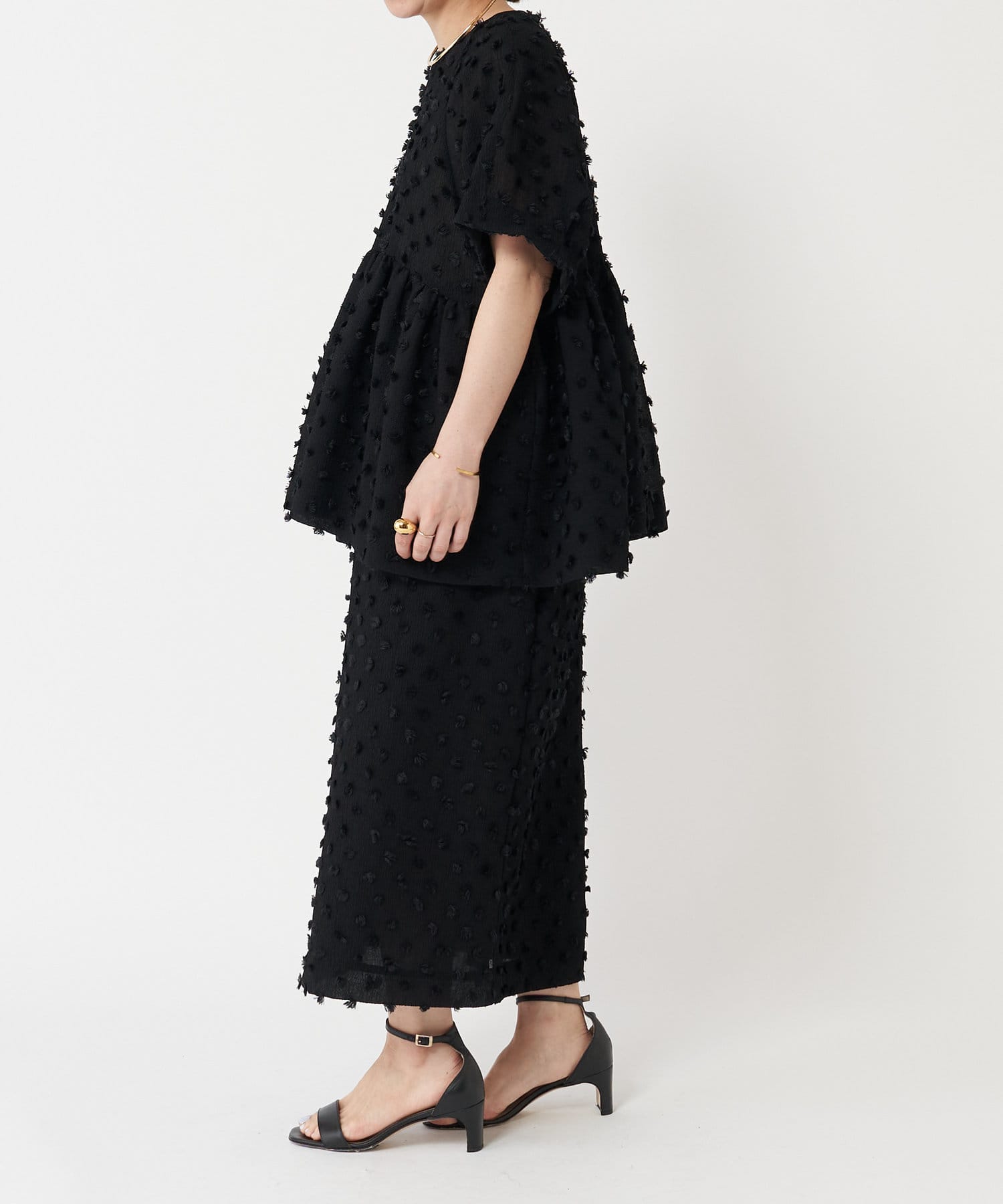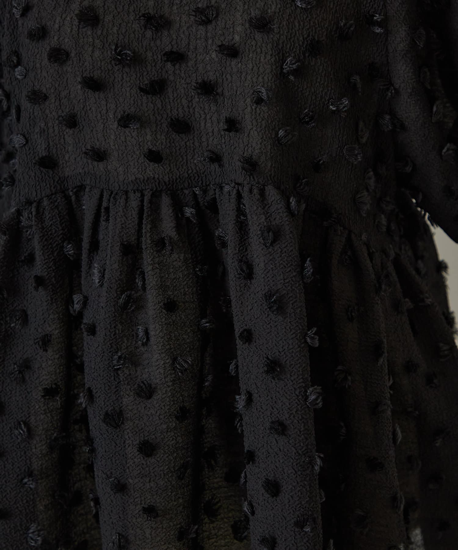 シワ加工を施したエアリーな生地で、ブラックの上品な雰囲気と軽やかさがマッチしています。