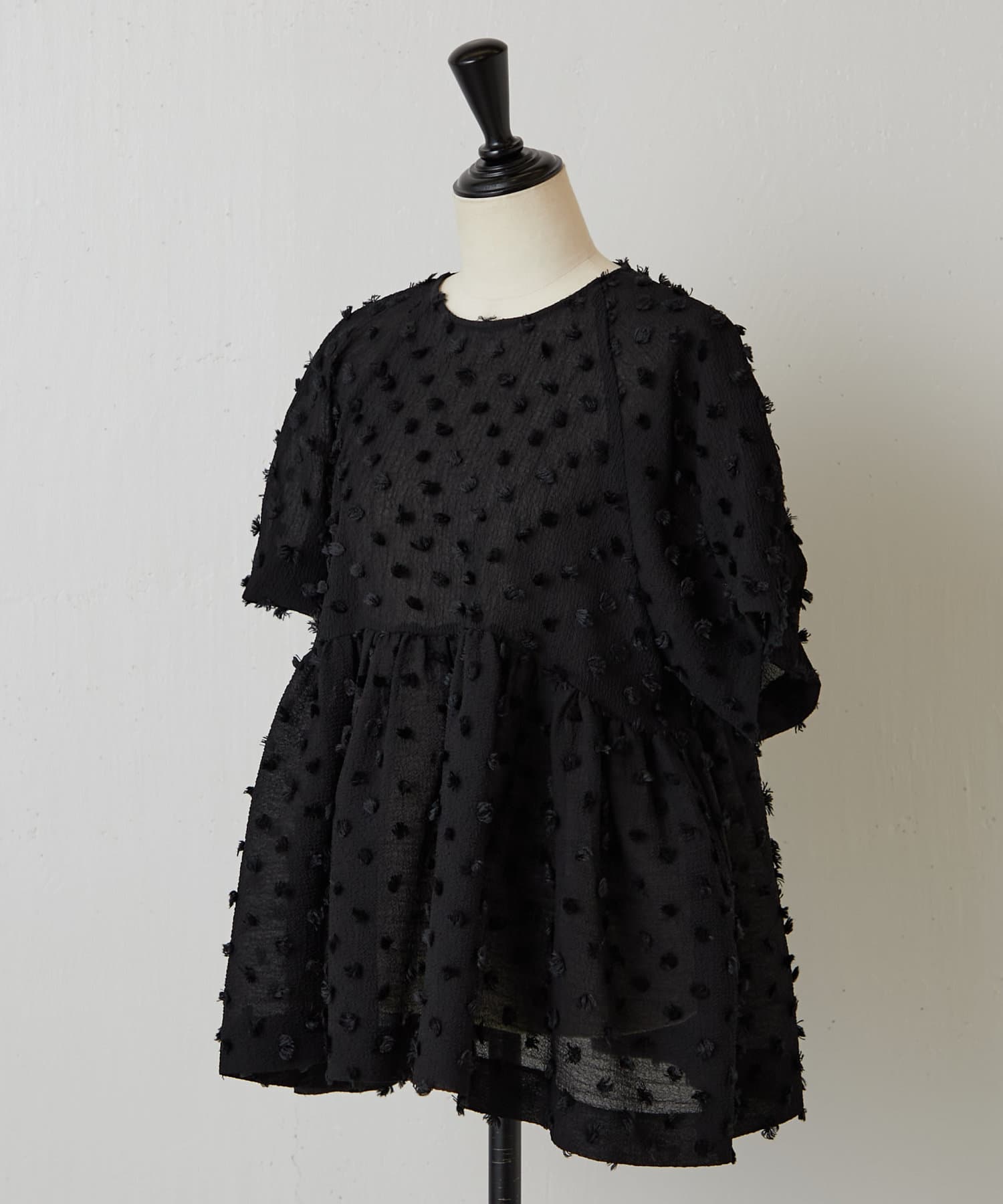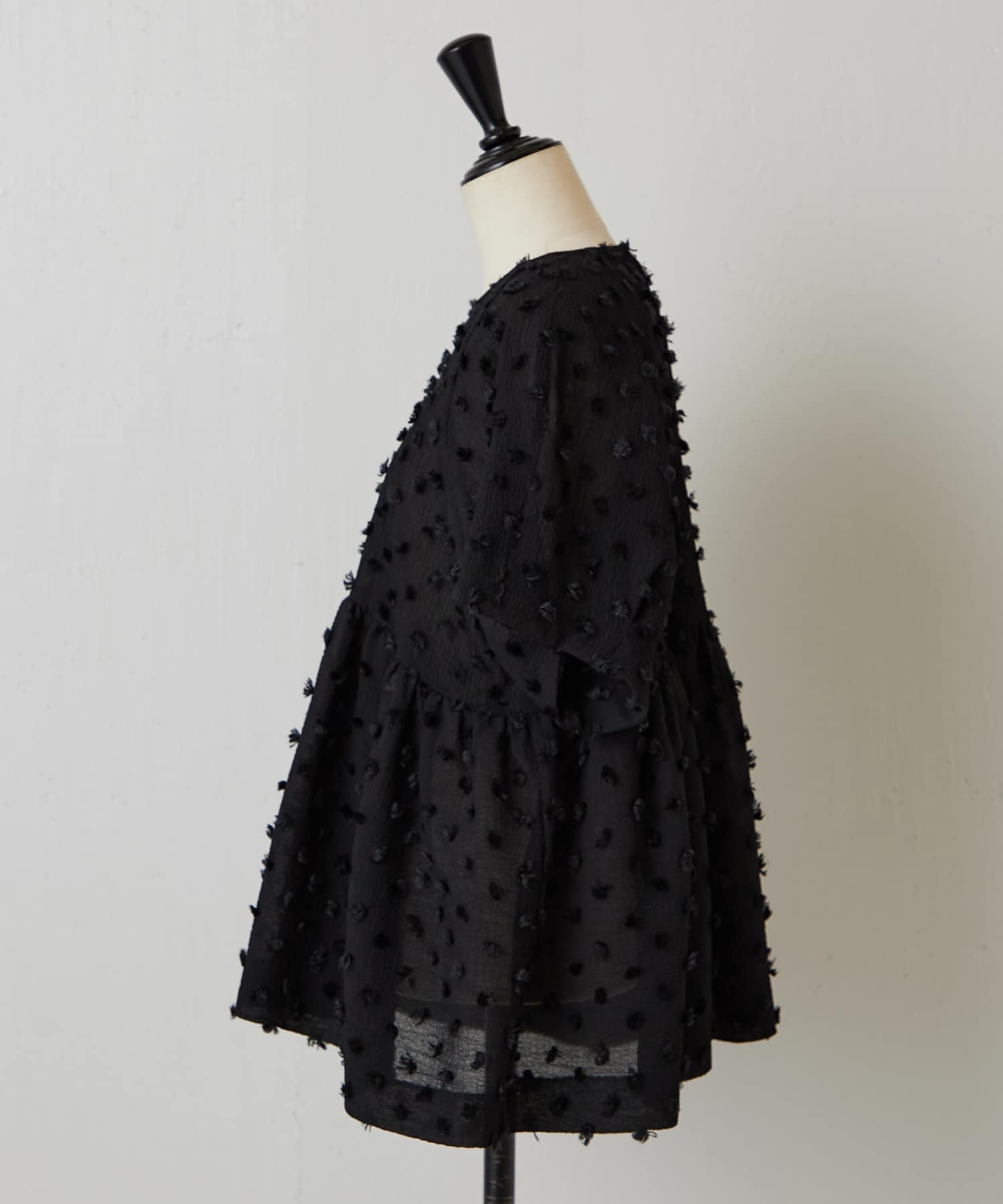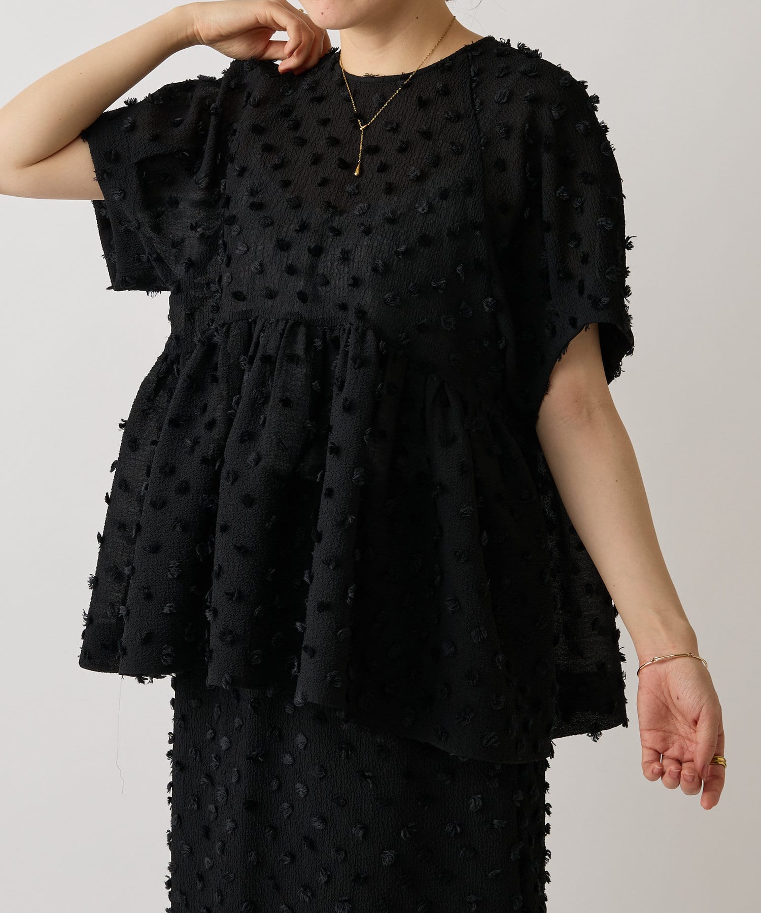 細かなフリンジでドット柄を表現したニュアンスのあるアイテム。