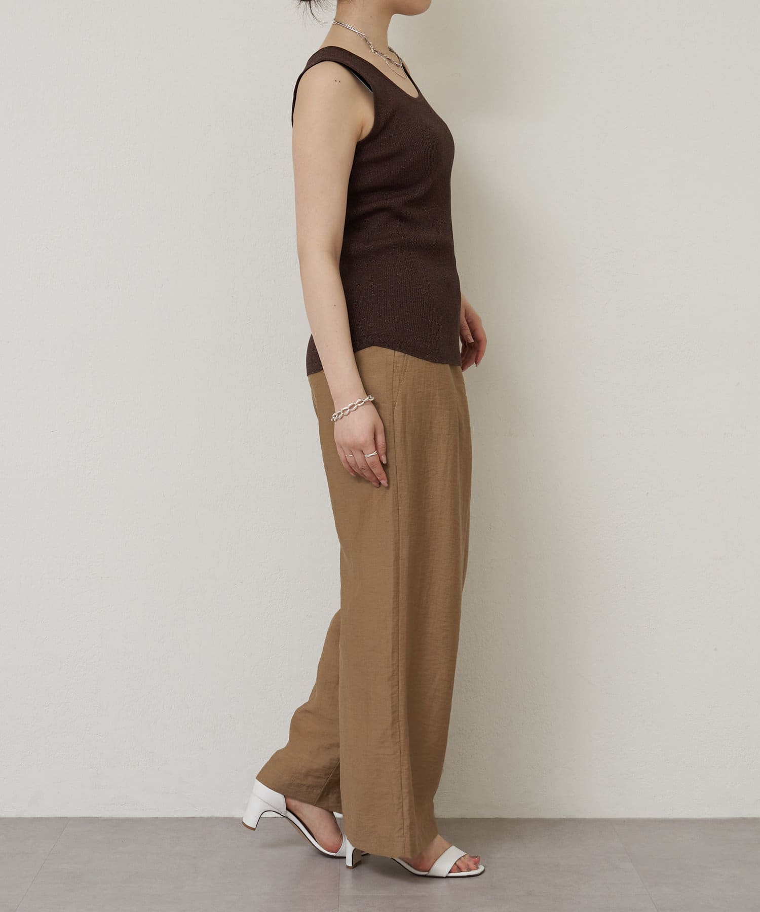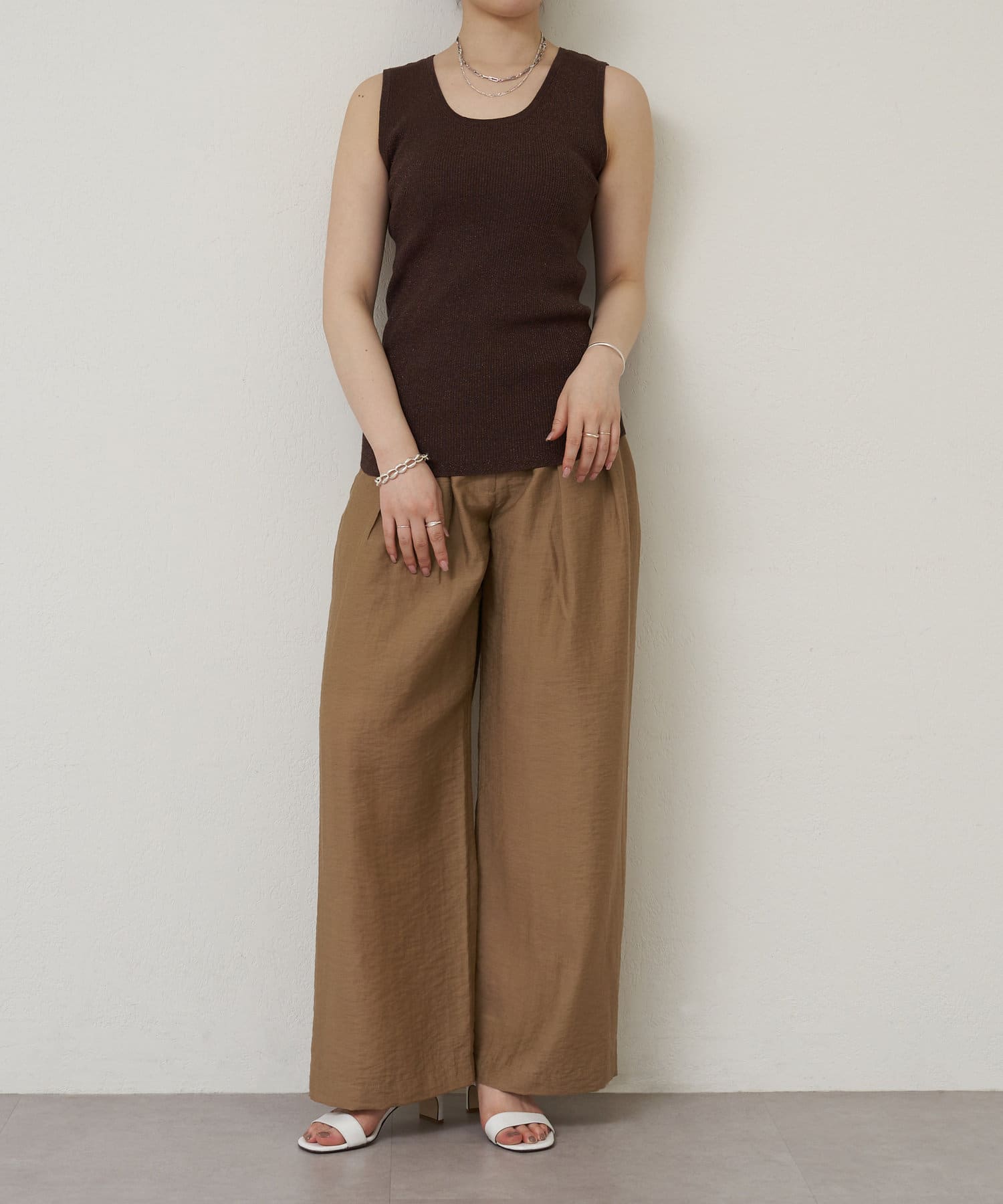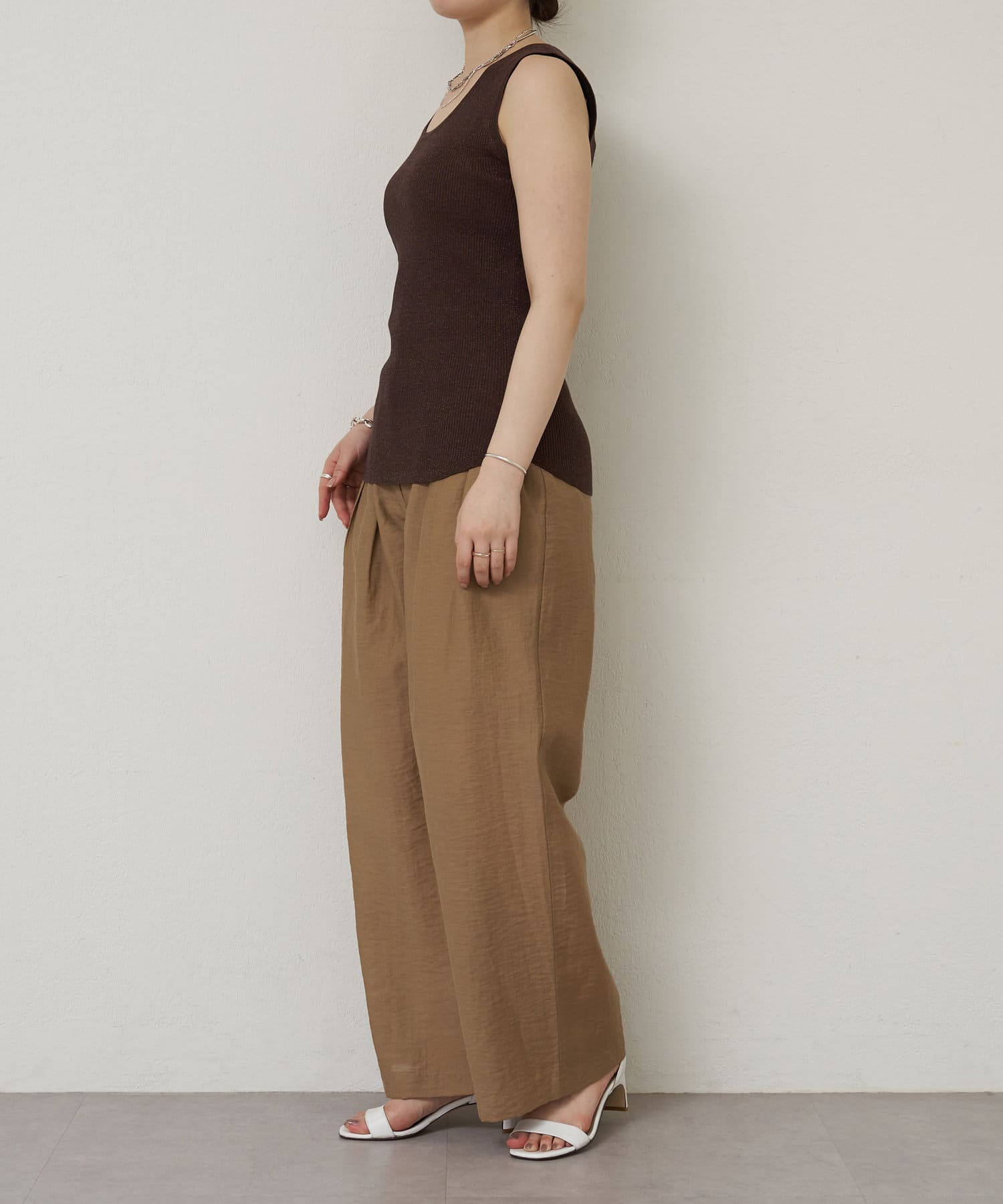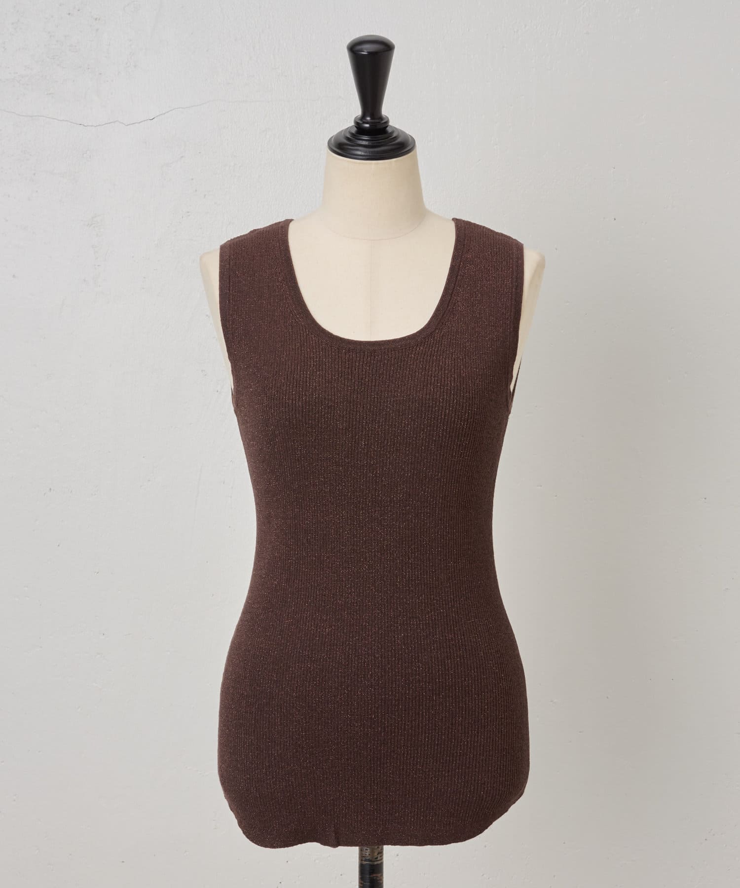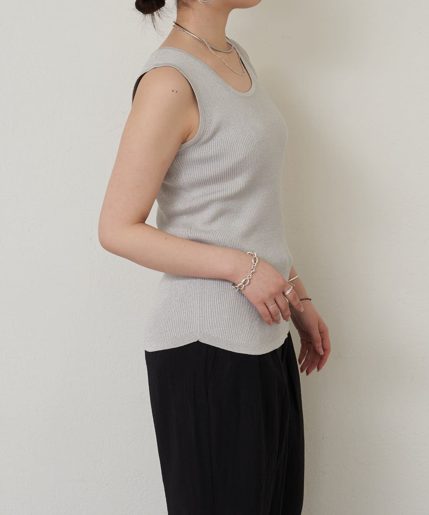 細かなラメ入りの上品なタンクトップ。
