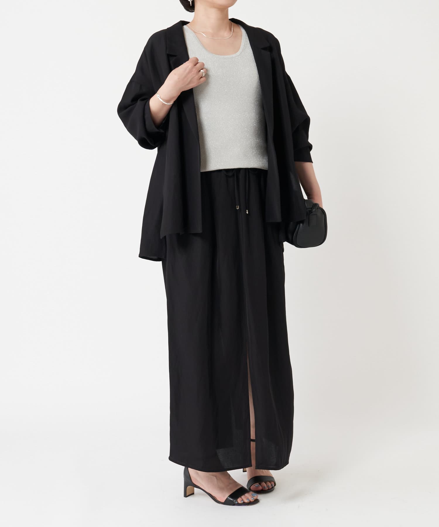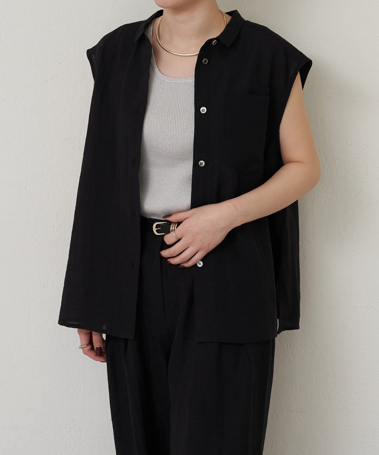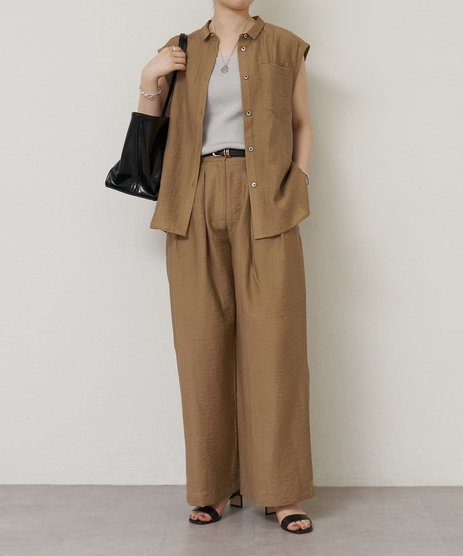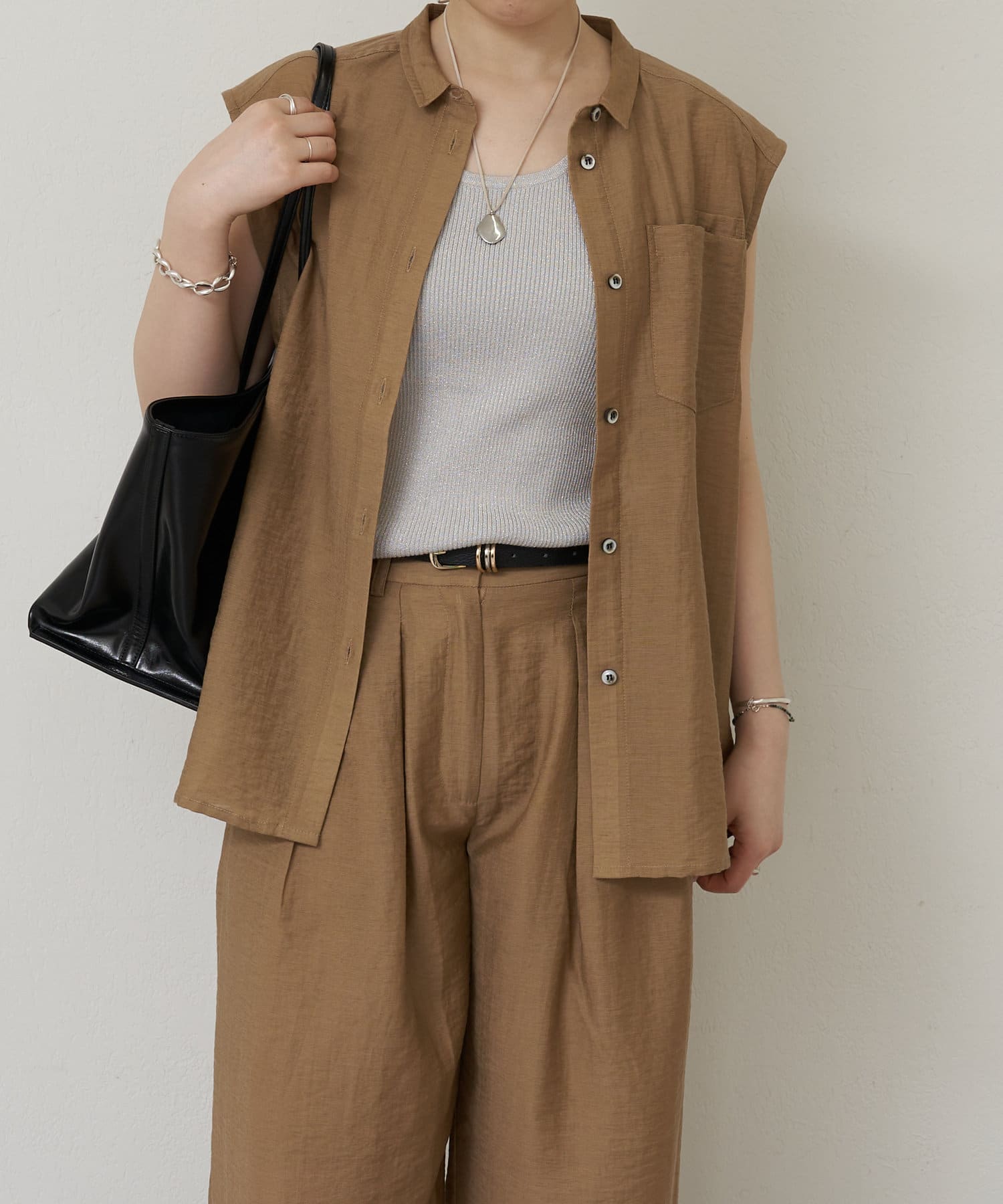 細かなラメ入りの上品なタンクトップ。