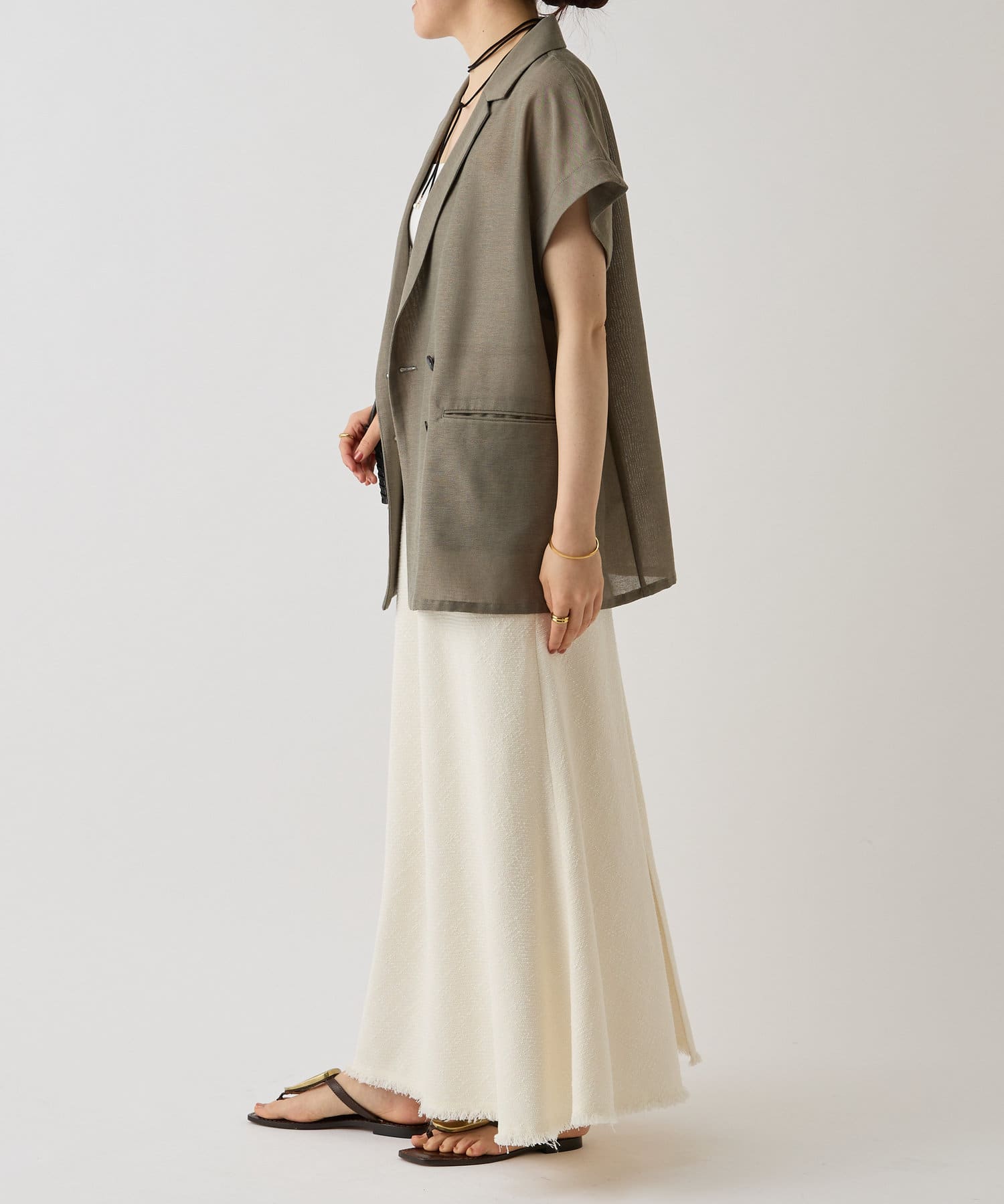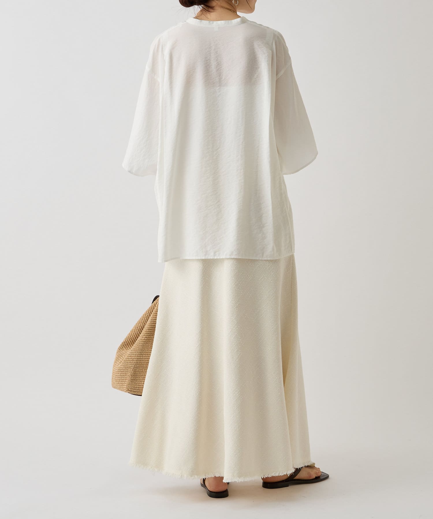 ・この製品は生地をバイアス地(斜め)に使用しています。ハンガーでの保管や着用時に伸びることがあります。あらかじめご了承ください。