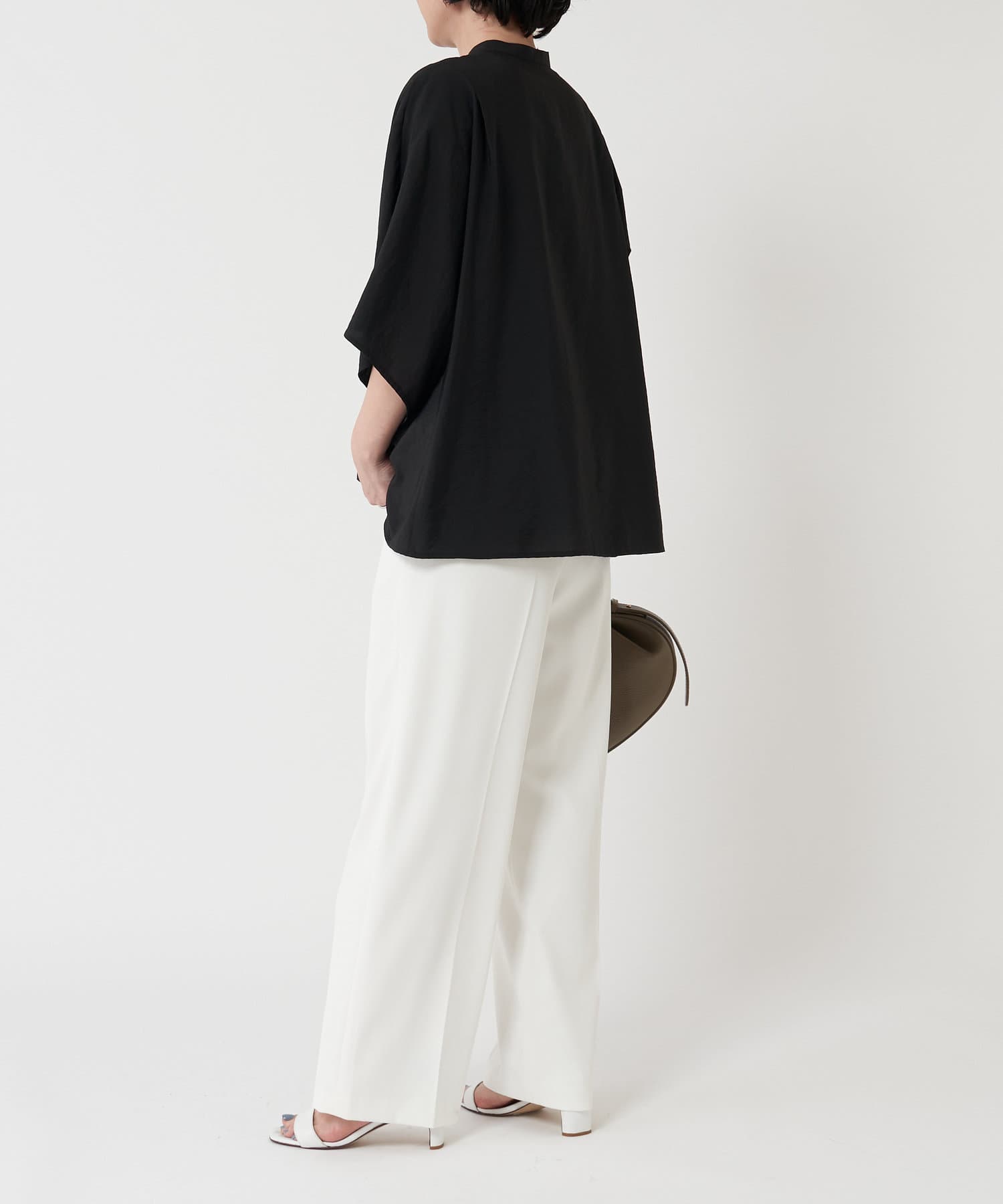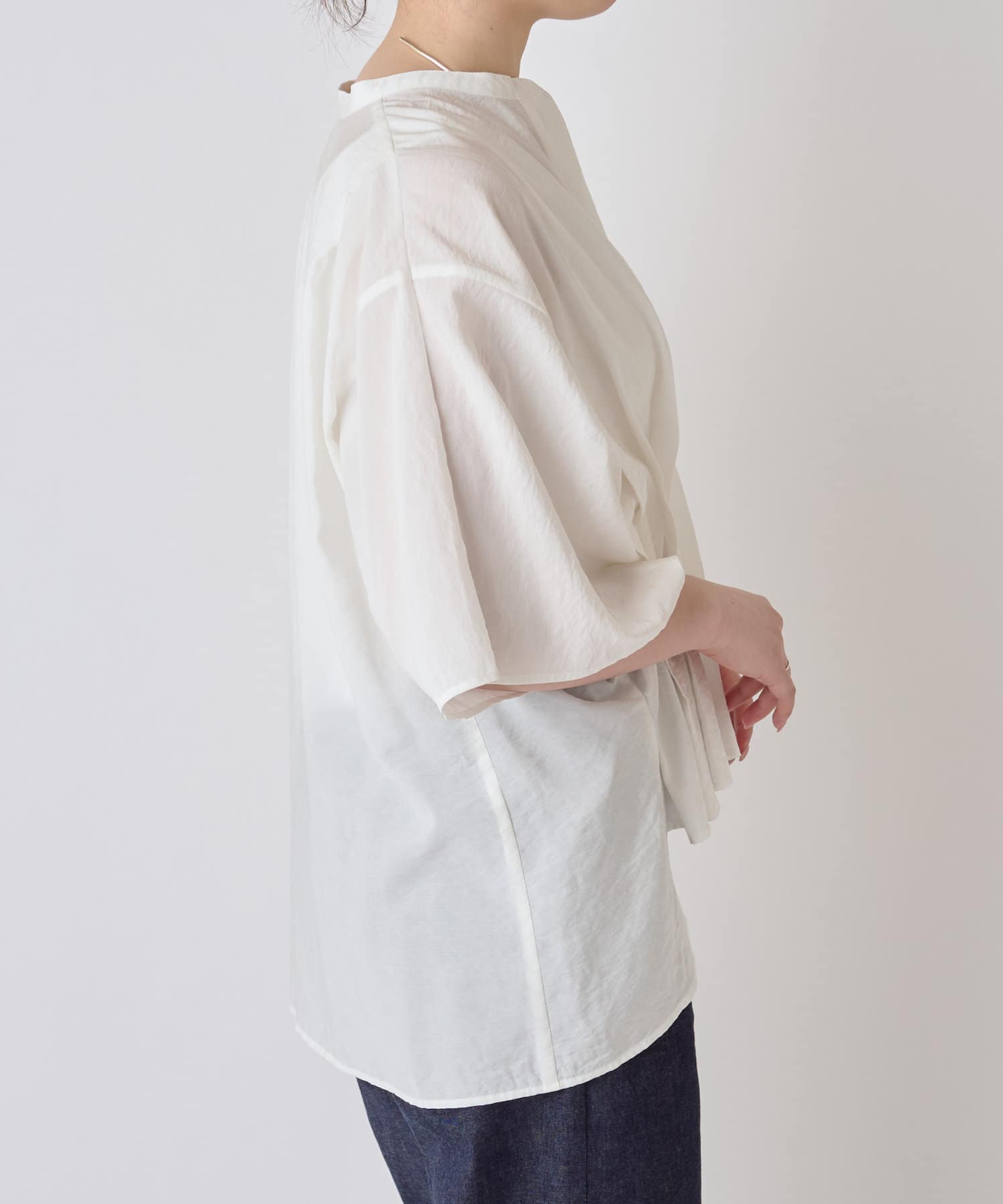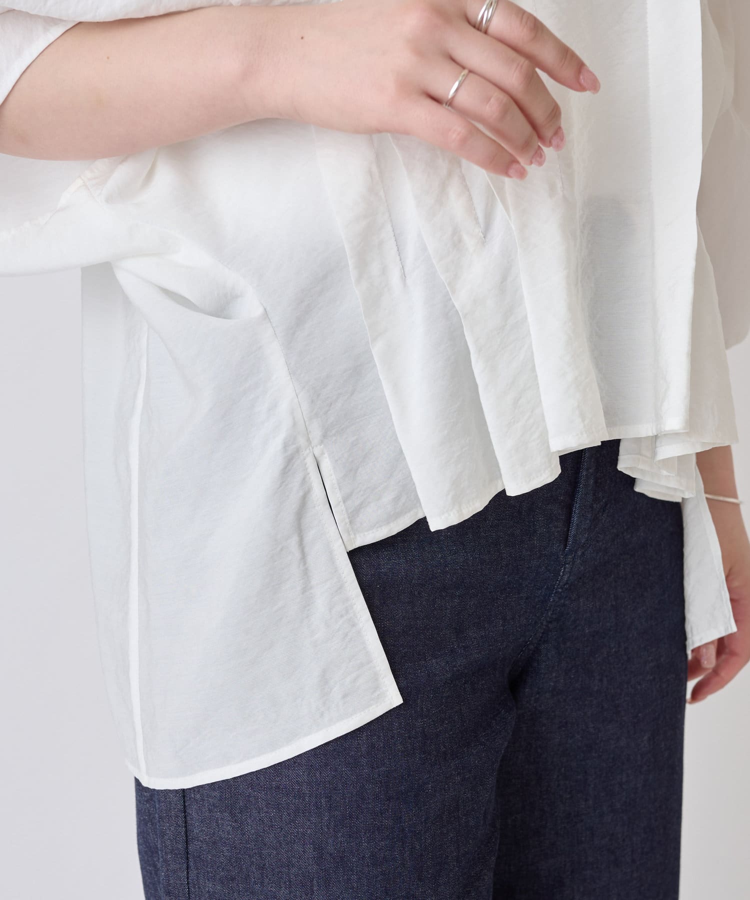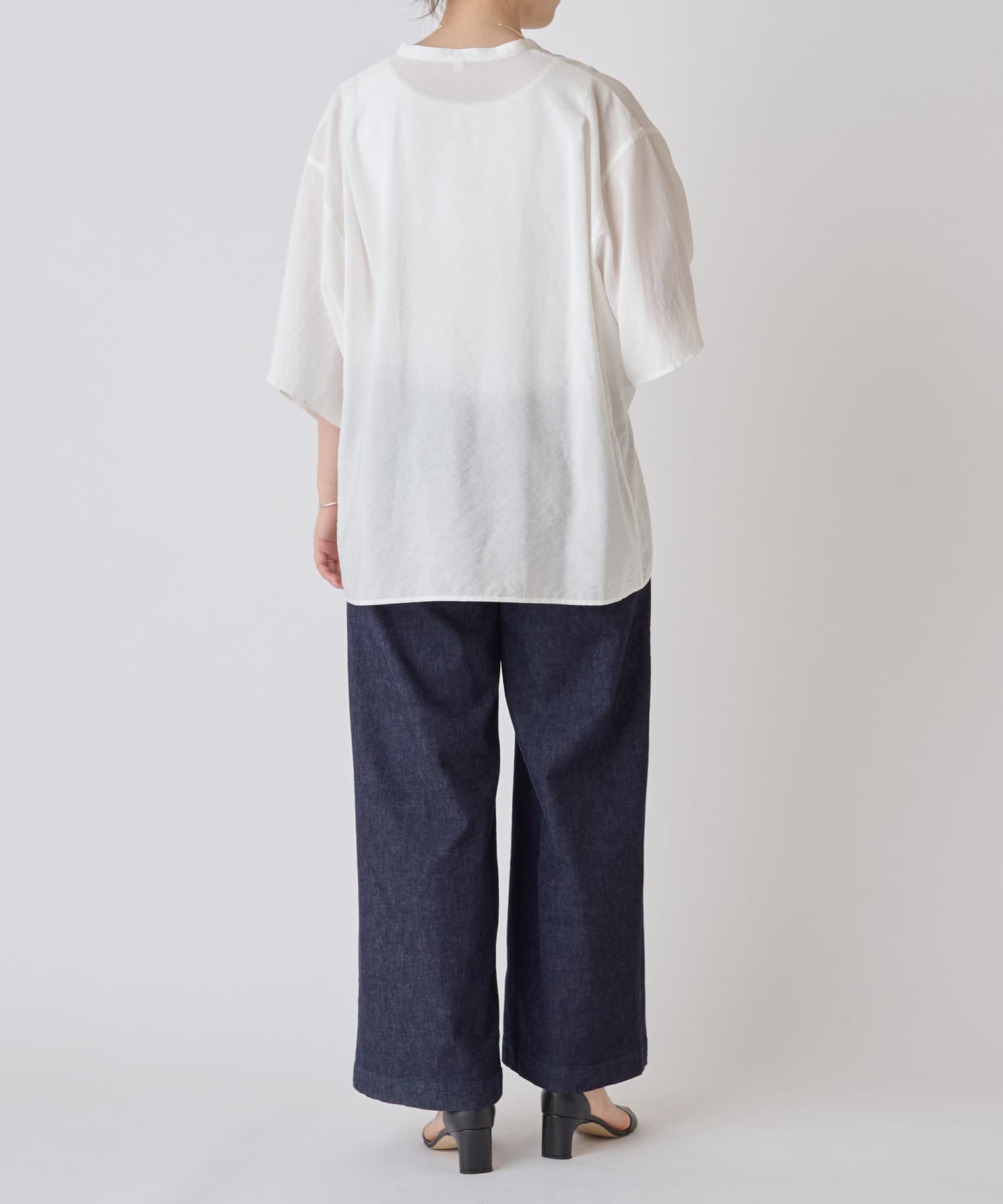 袖まわりがゆったりしていてさらっとした着心地のブラウスは暑い時期にもぴったり。