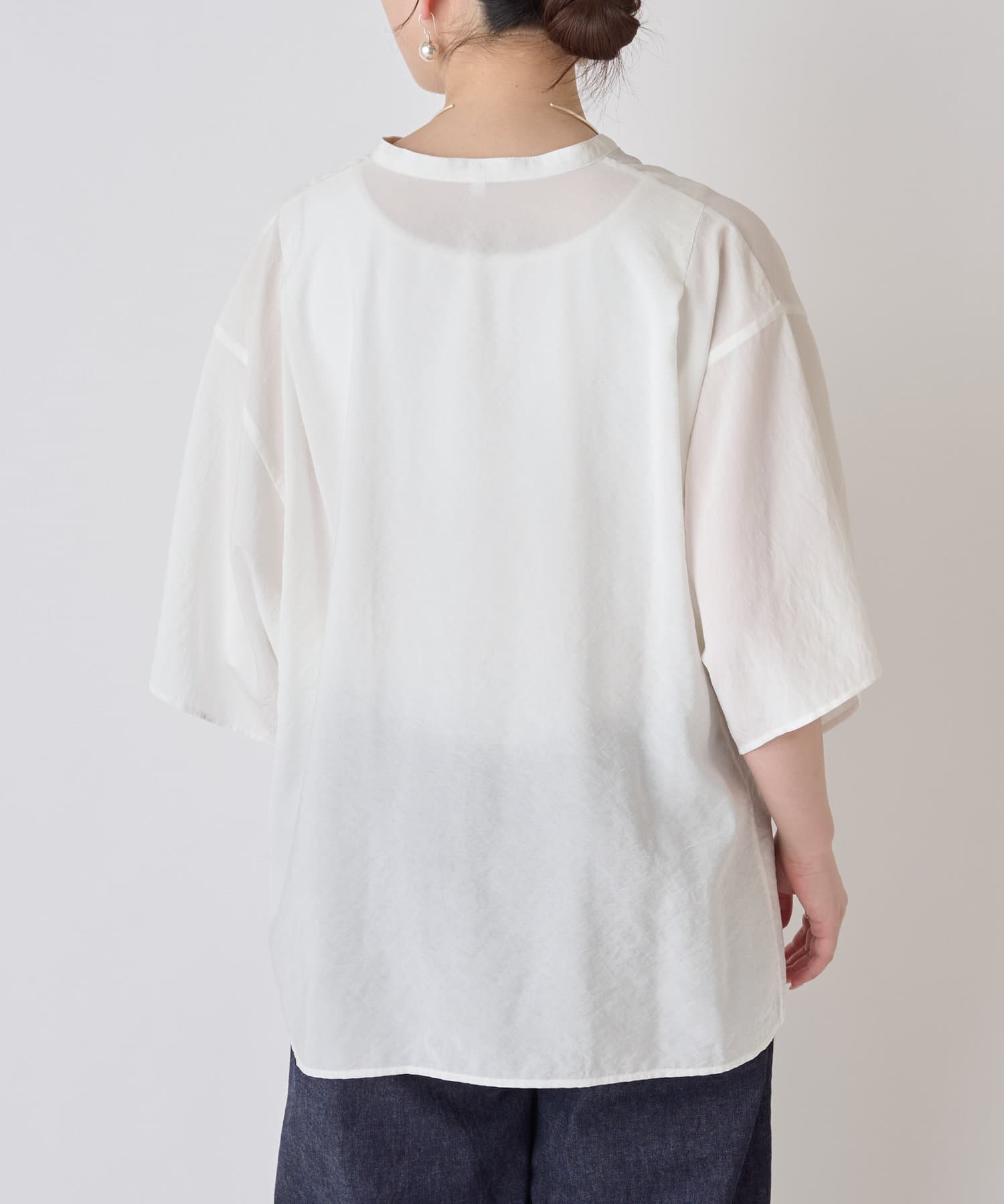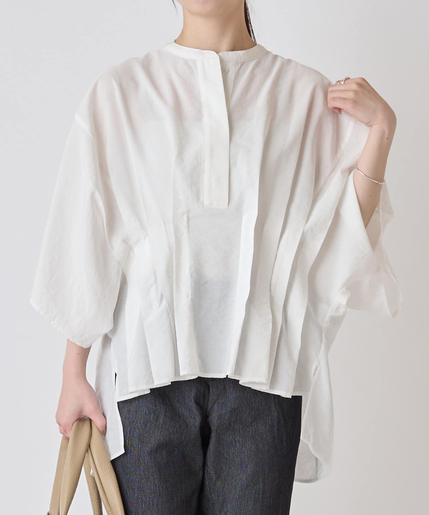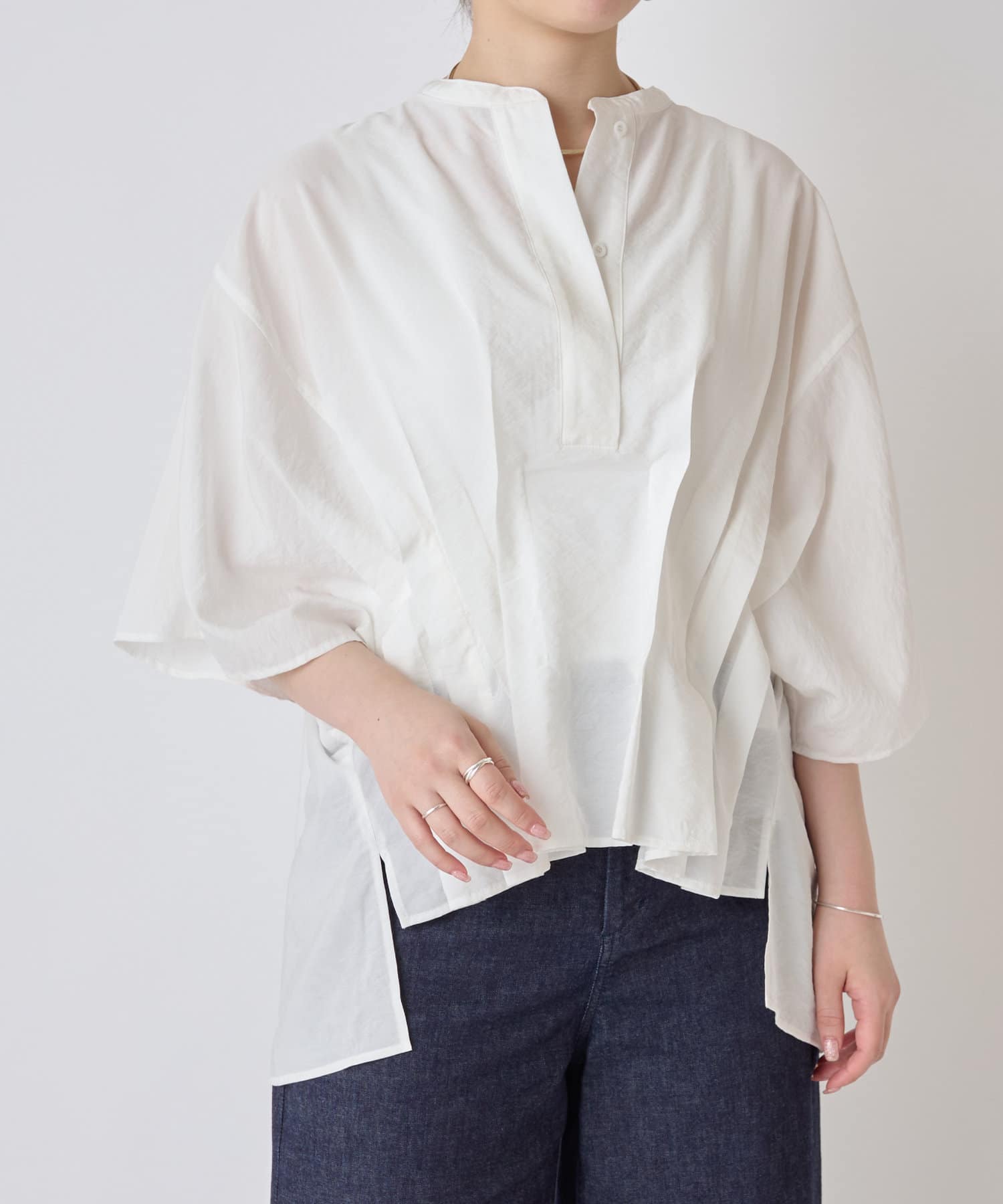 袖まわりがゆったりしていてさらっとした着心地のブラウスは暑い時期にもぴったり。