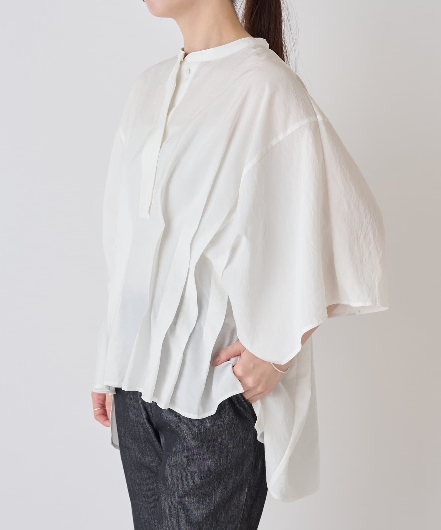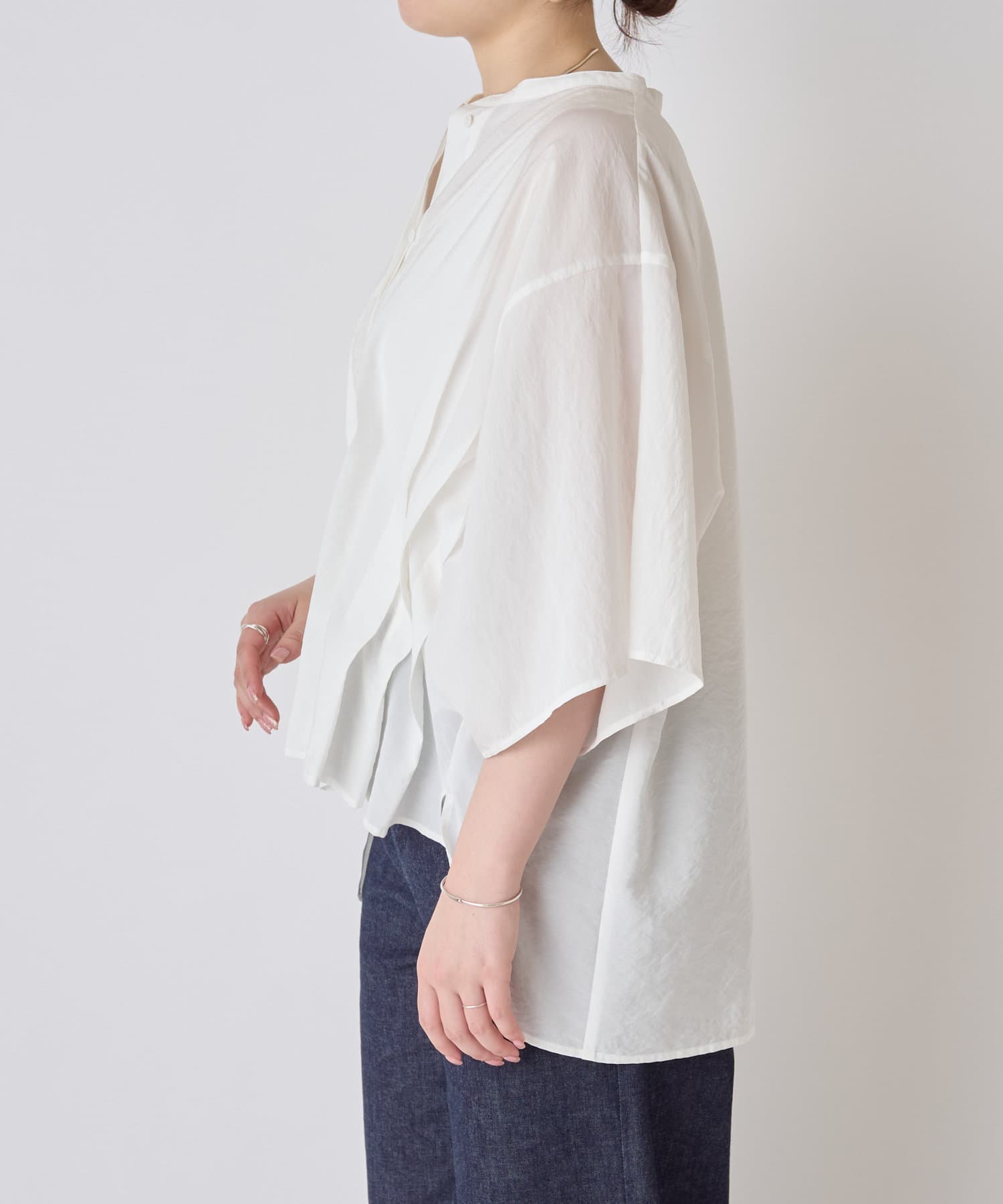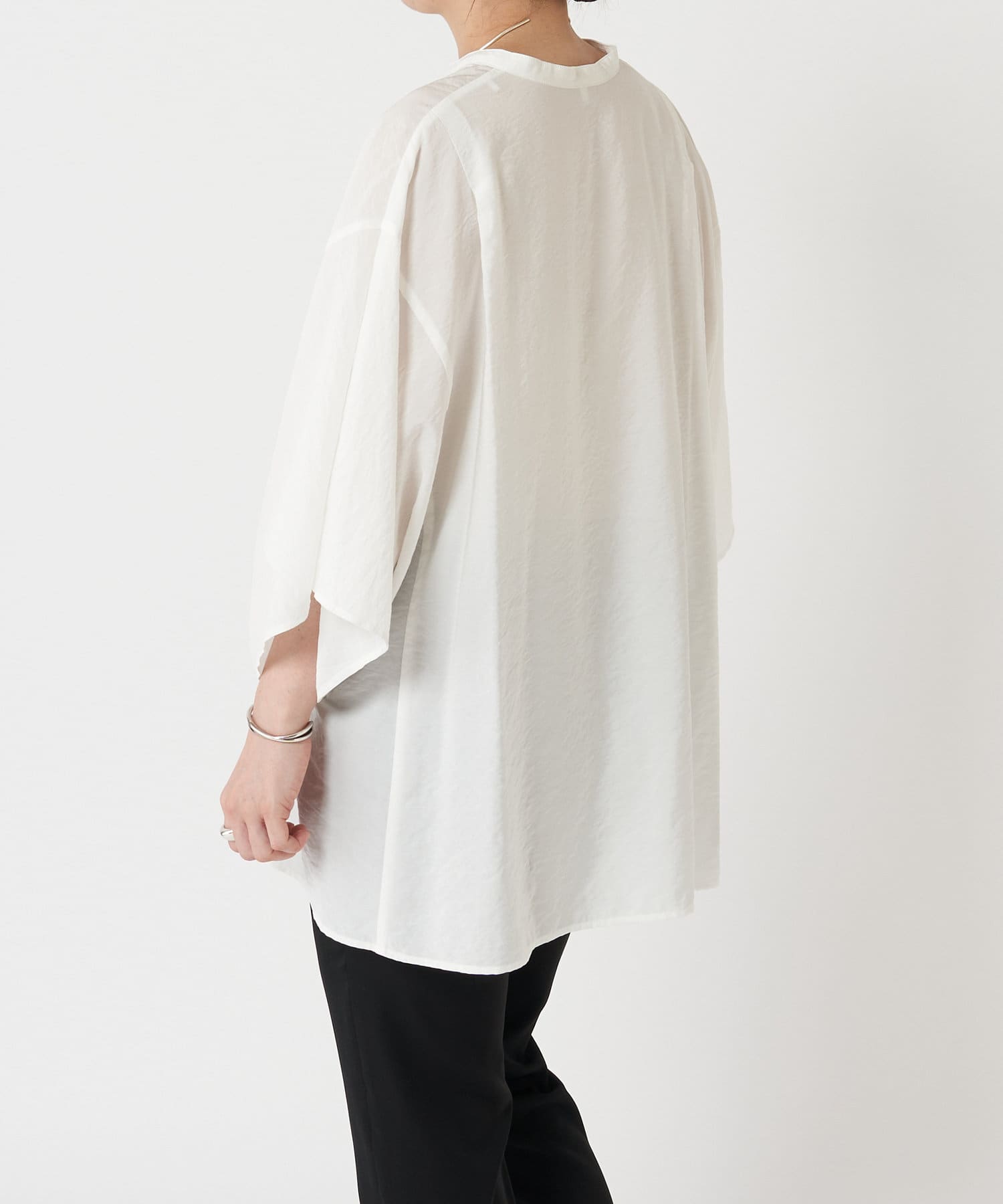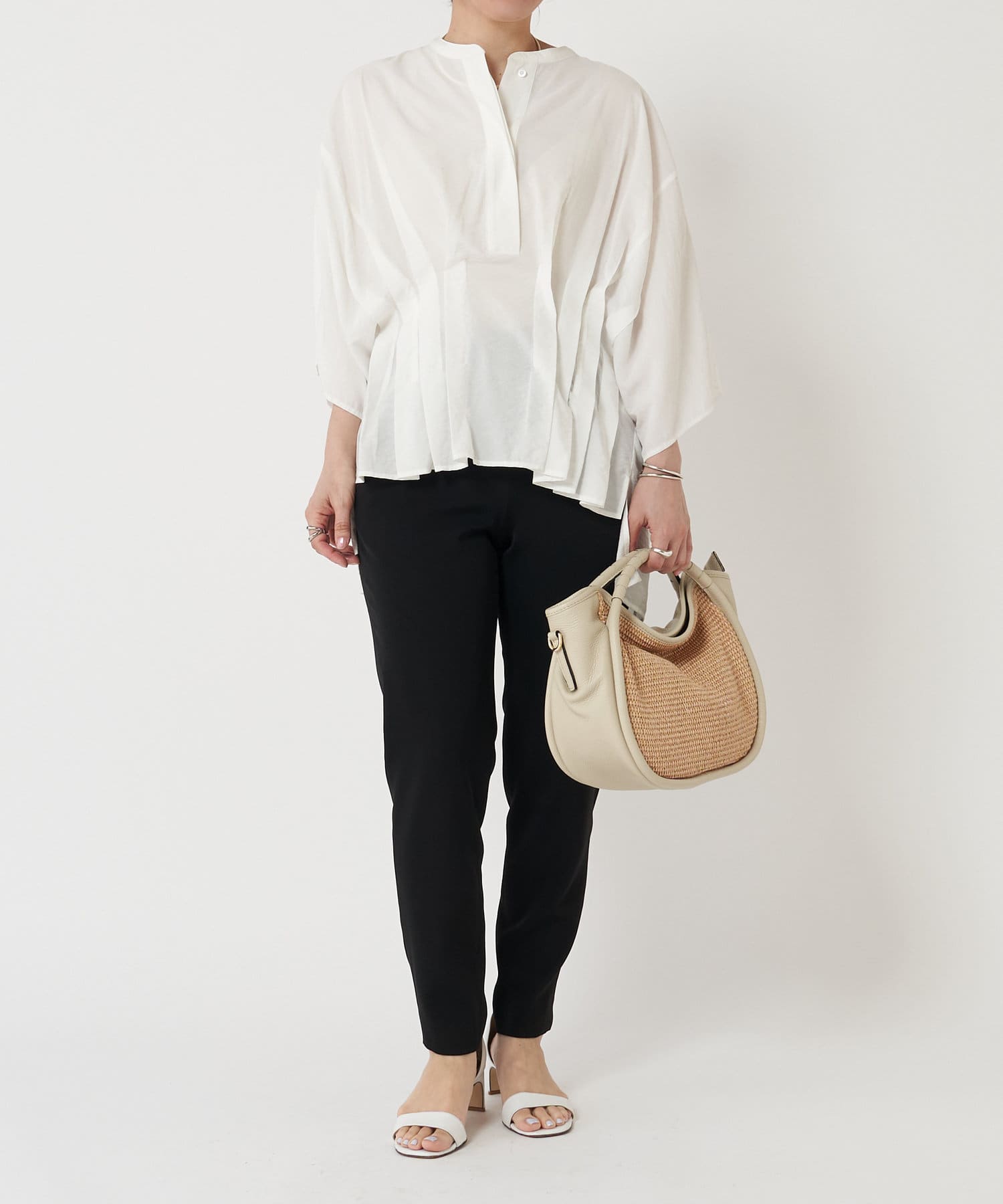 袖まわりがゆったりしていてさらっとした着心地のブラウスは暑い時期にもぴったり。