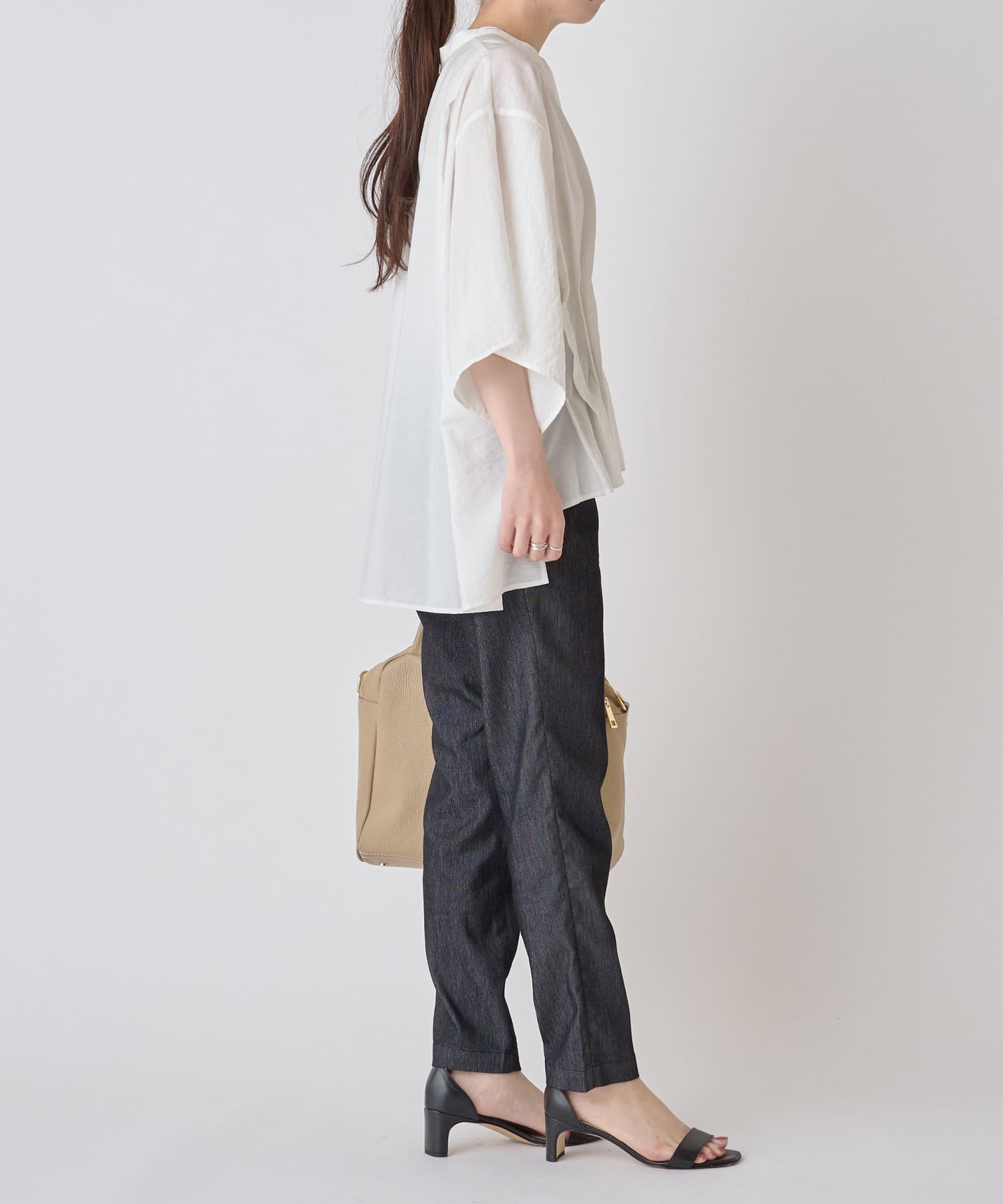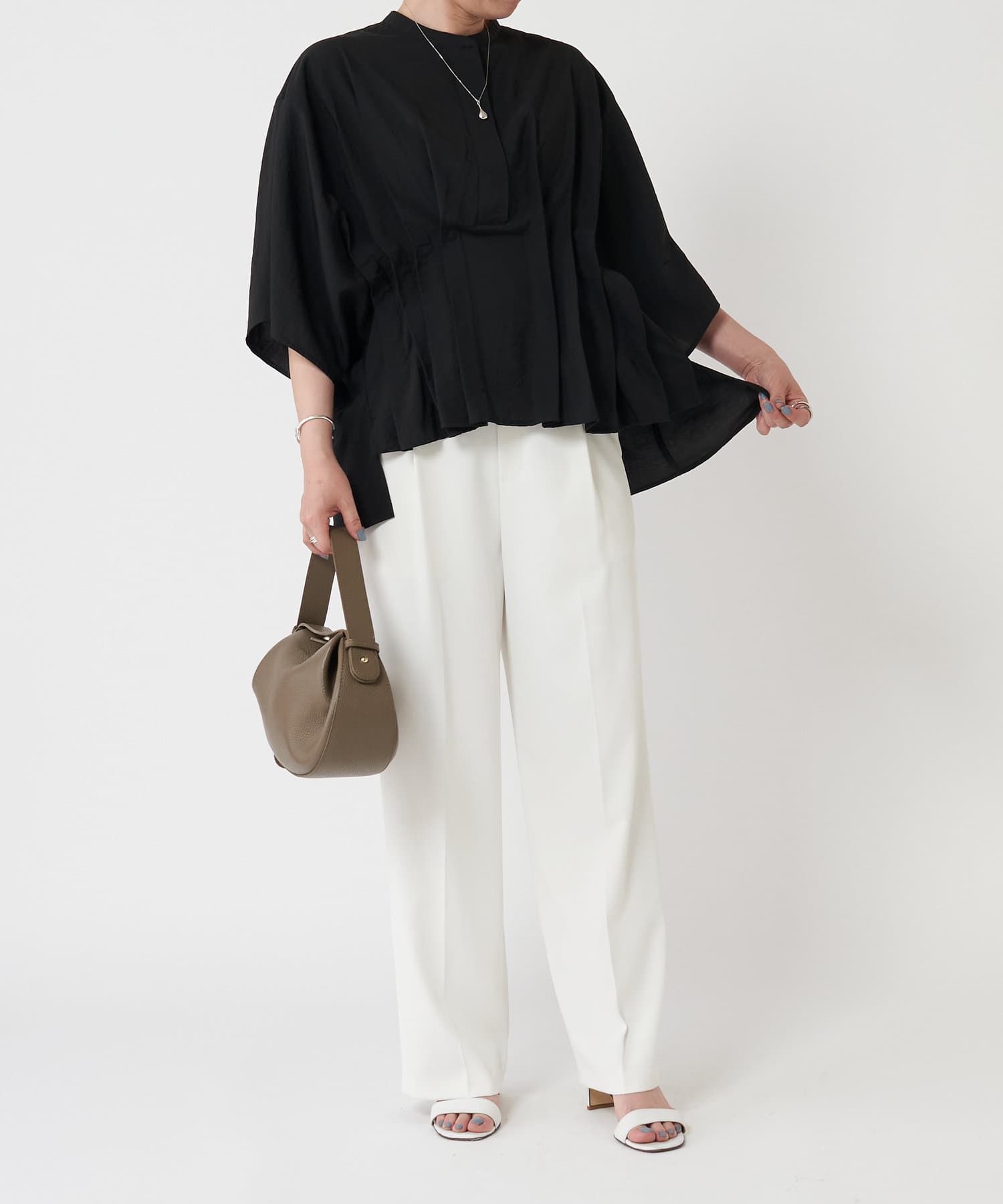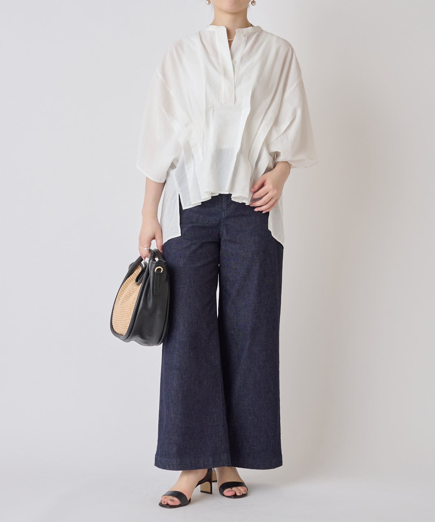 前後差のあるデザインなので、細身のパンツからワイドボトムまで相性良く着ていただけます。