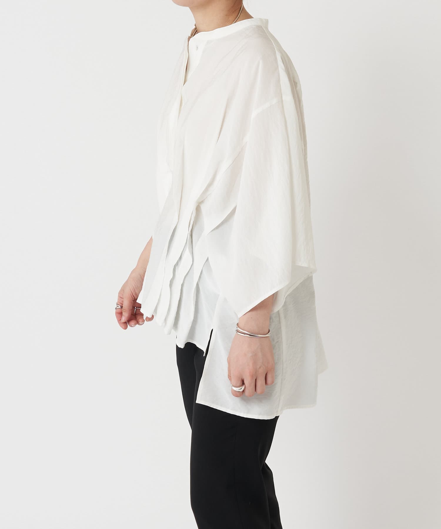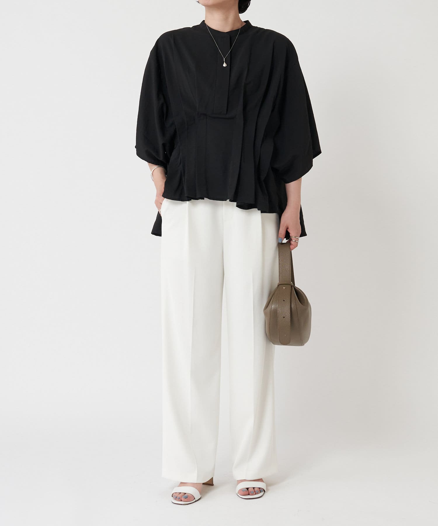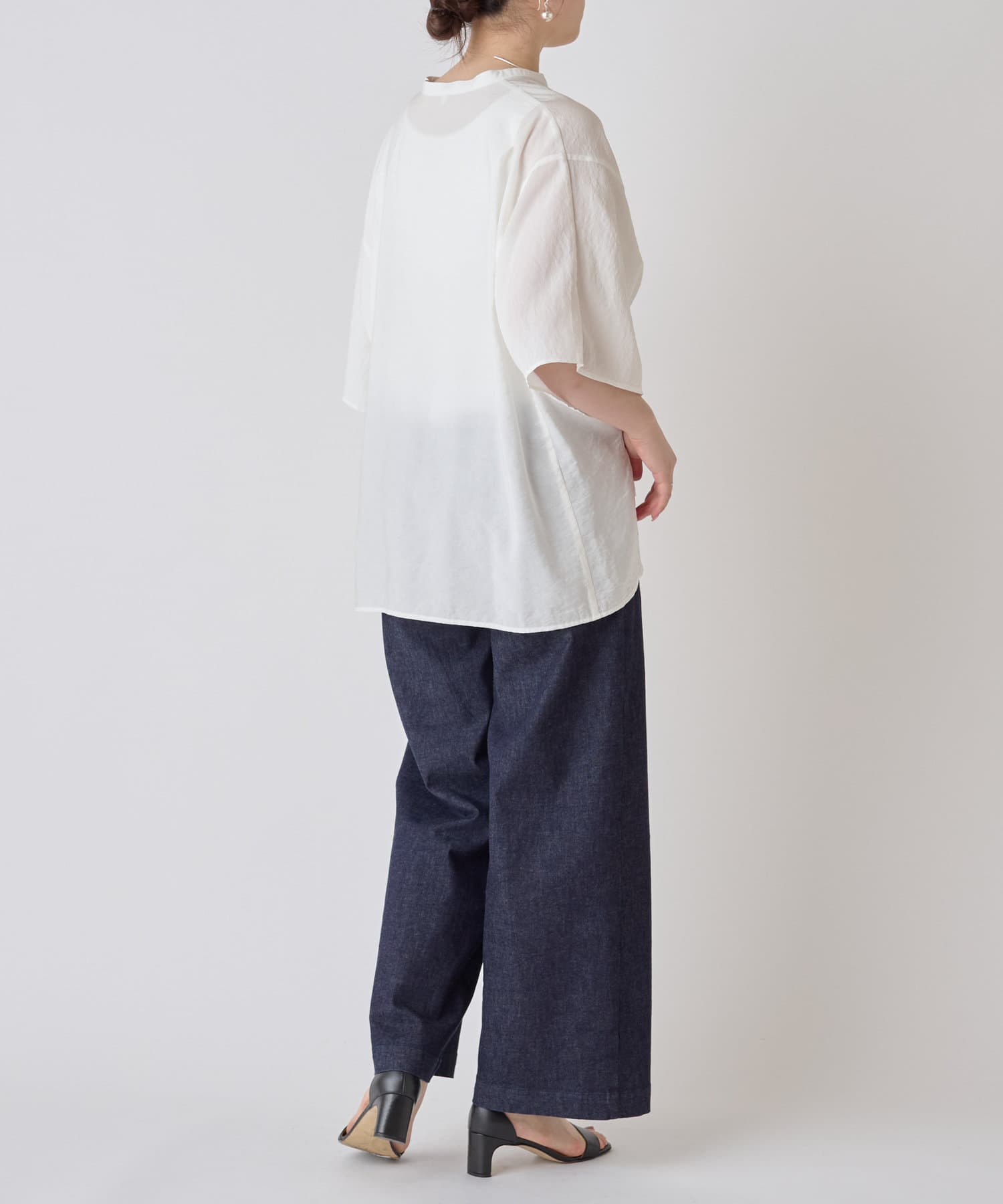 前後差のあるデザインなので、細身のパンツからワイドボトムまで相性良く着ていただけます。