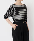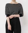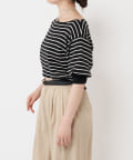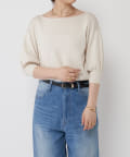 ボートネックの開きがデコルテを美しく見せ、女性らしさを引き立てます。