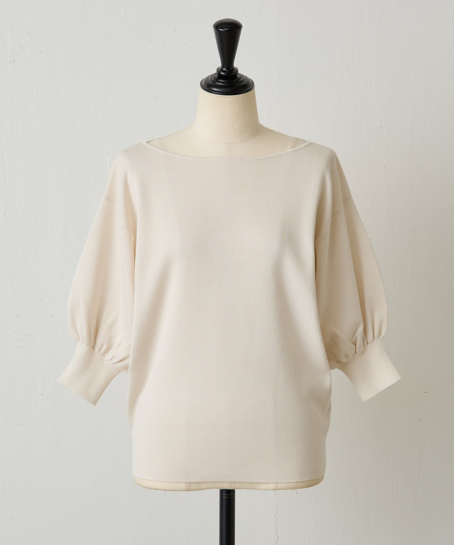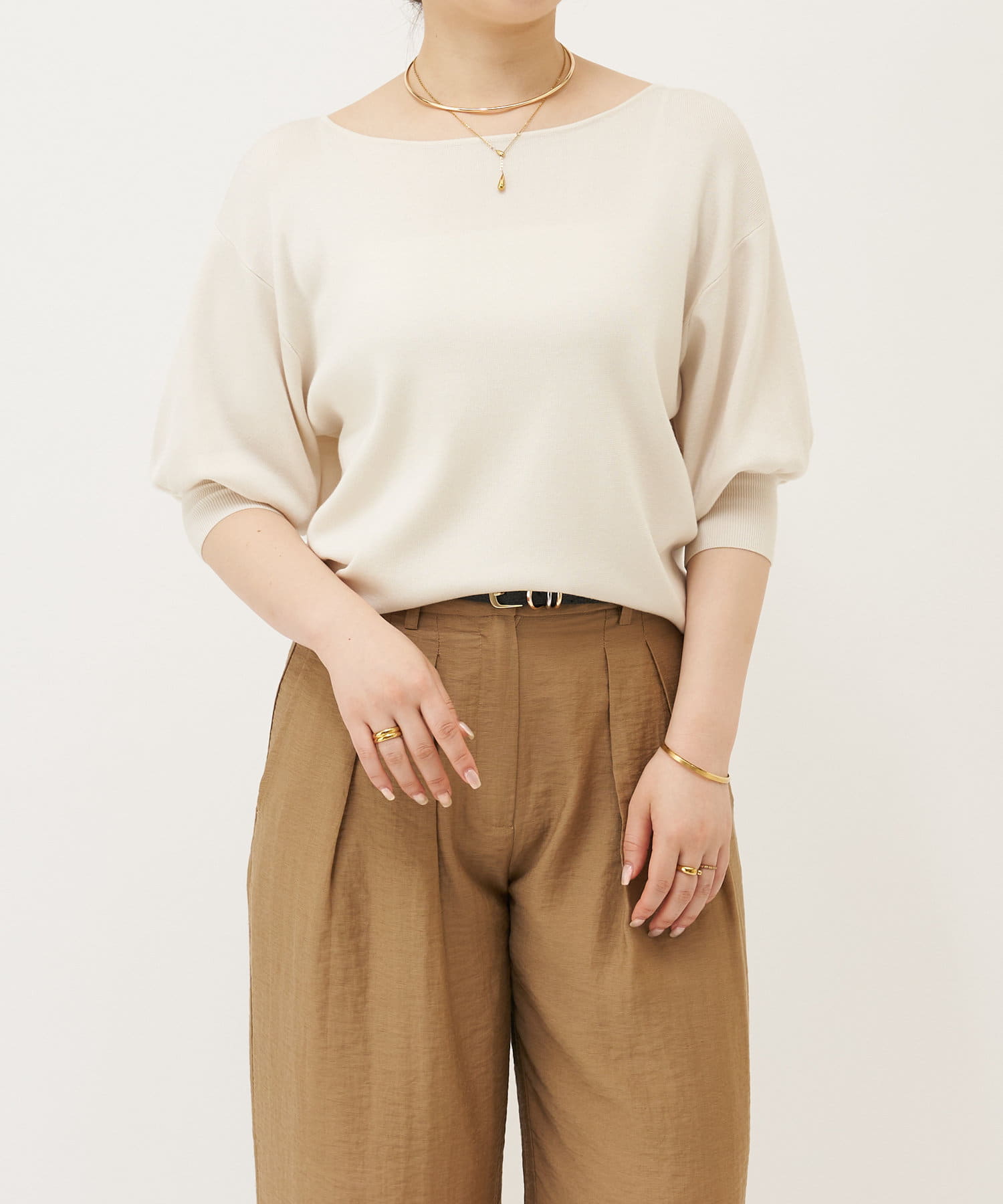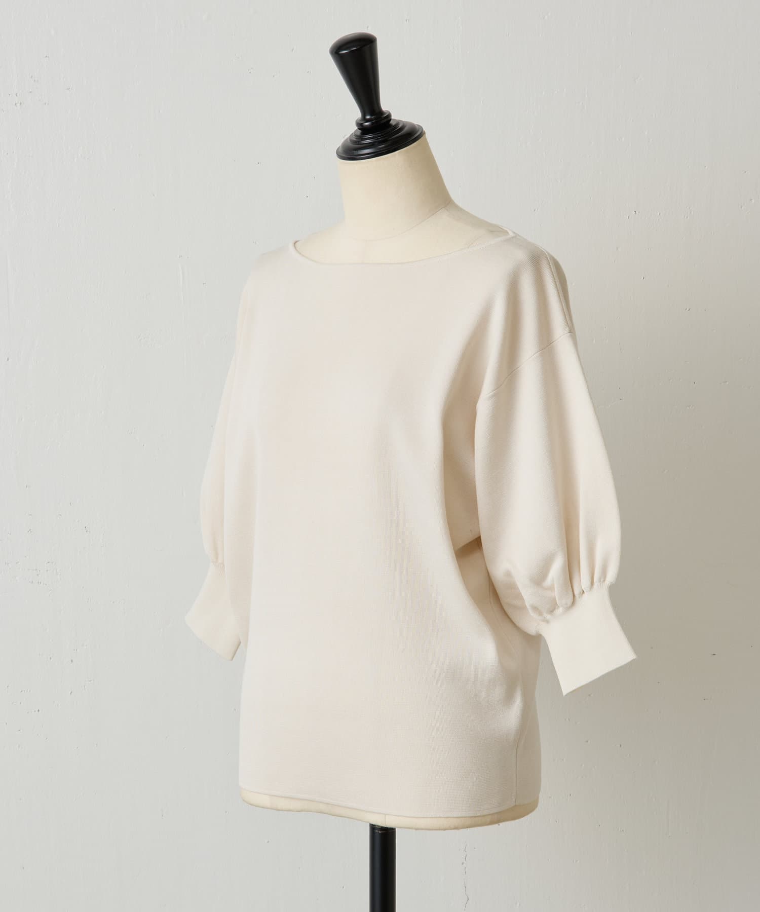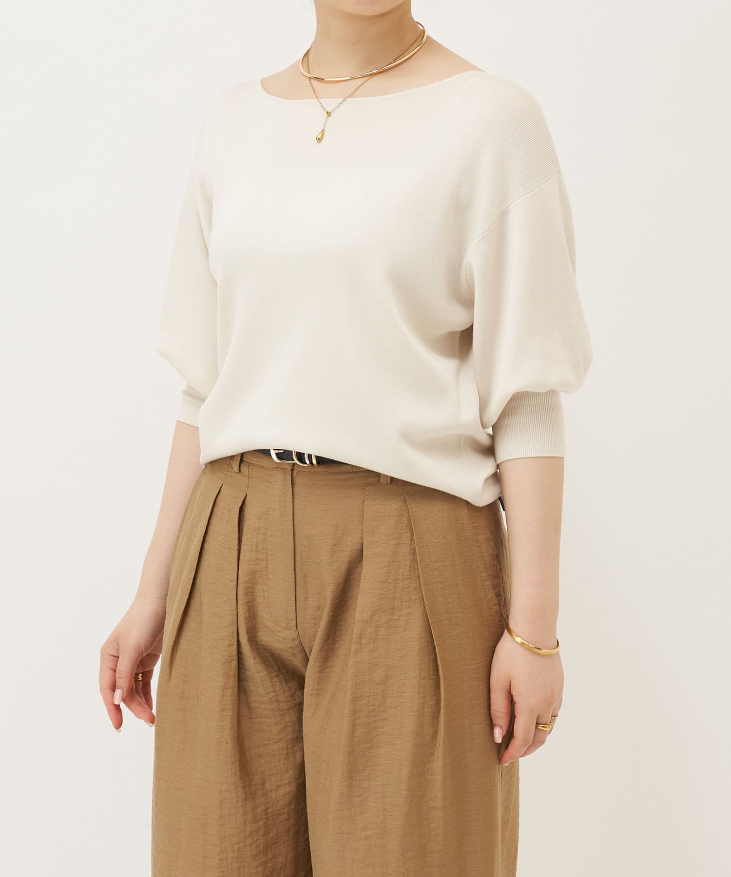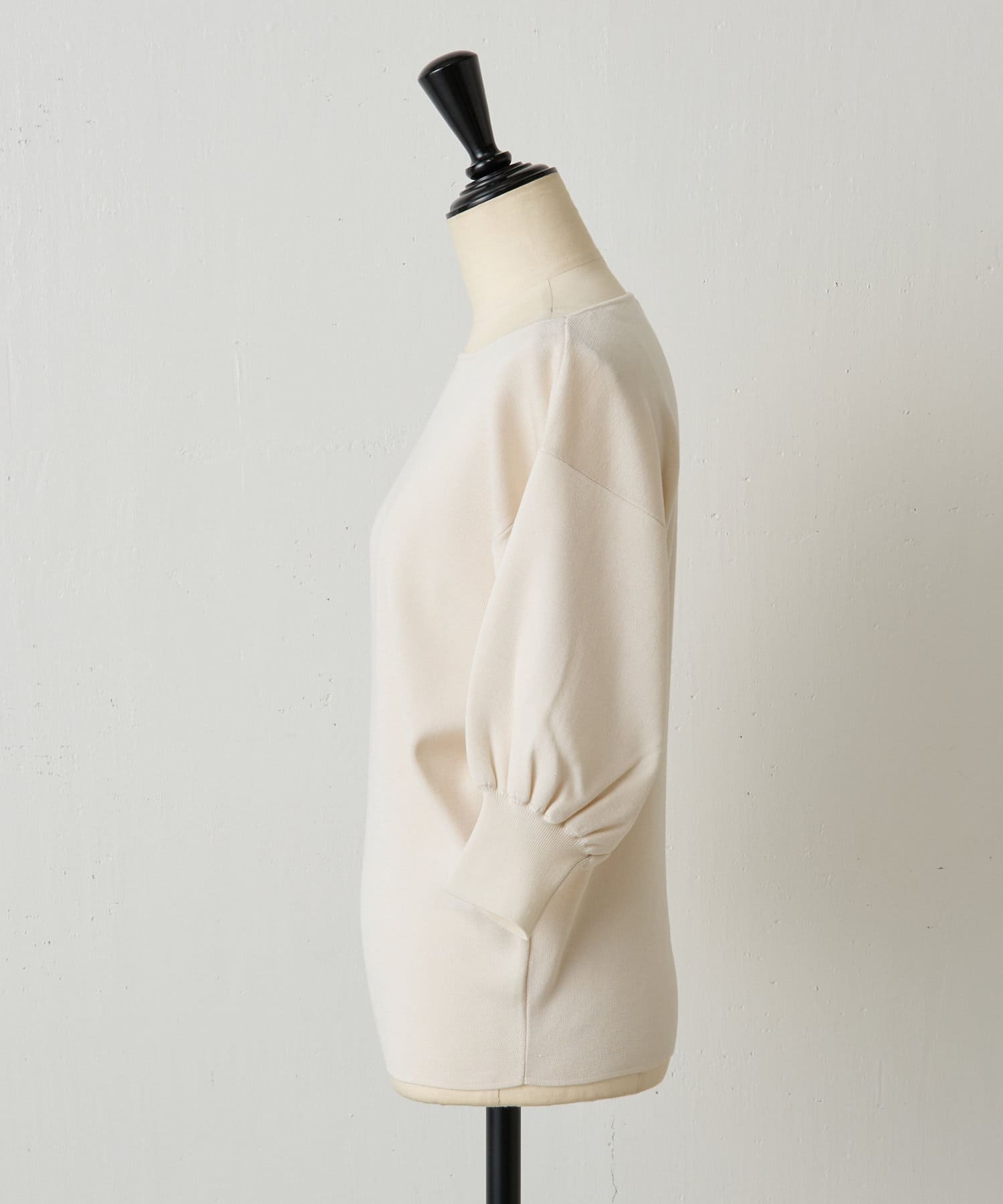 ふんわりとした袖のフォルムと、程よくゆとりのあるシルエットが、体のラインをきれいに見せつつリラックス感も演出。