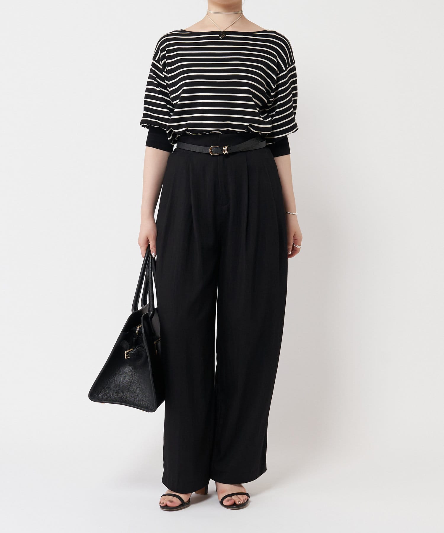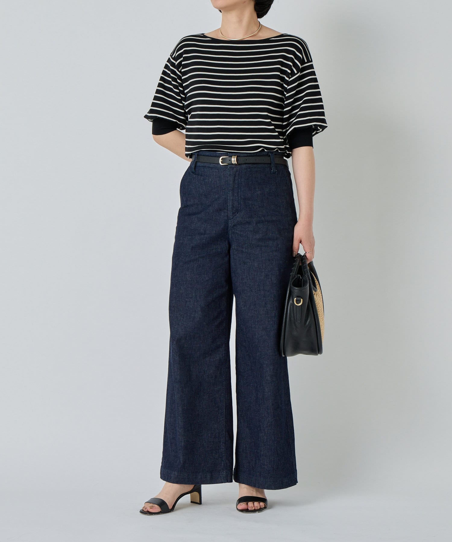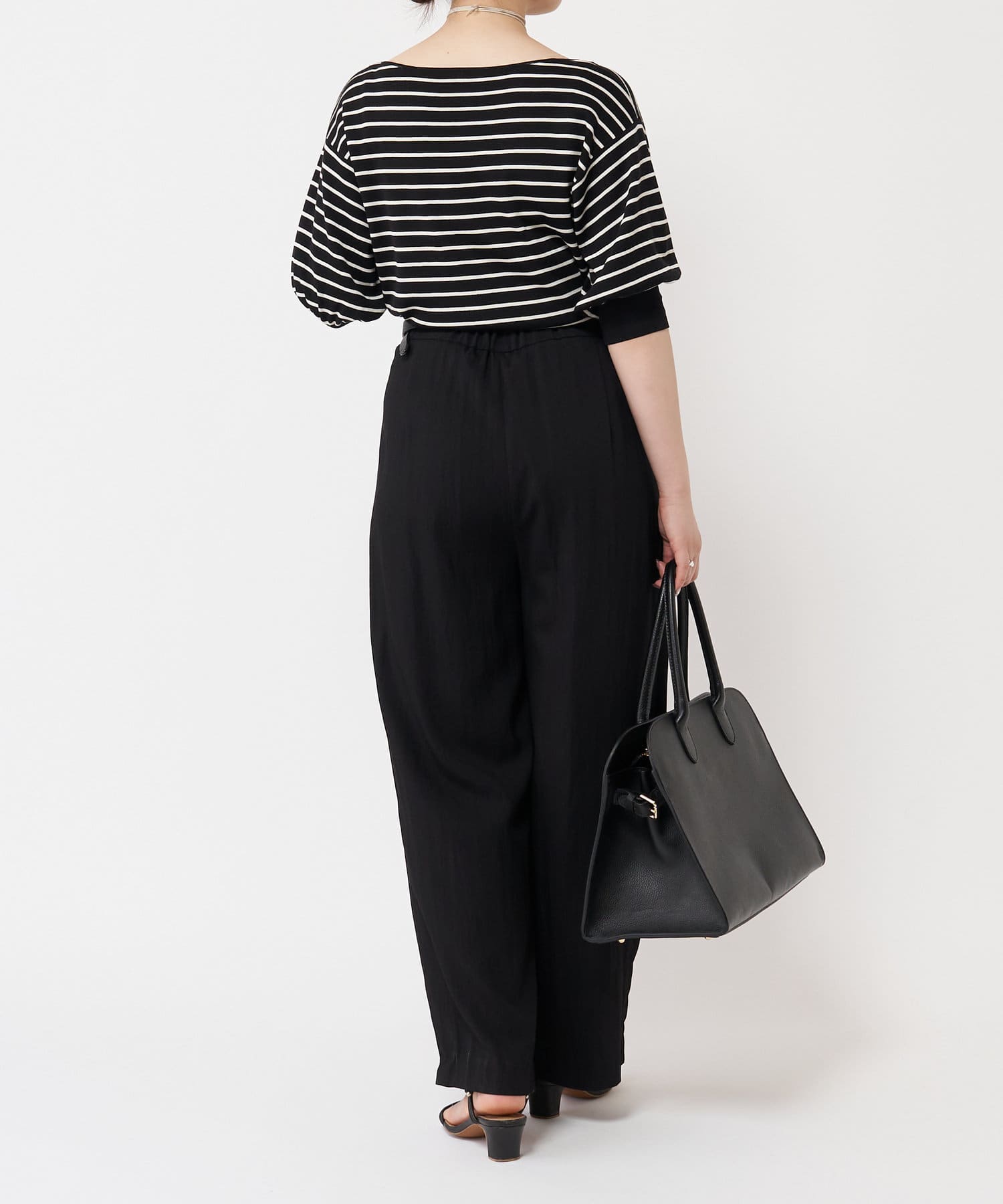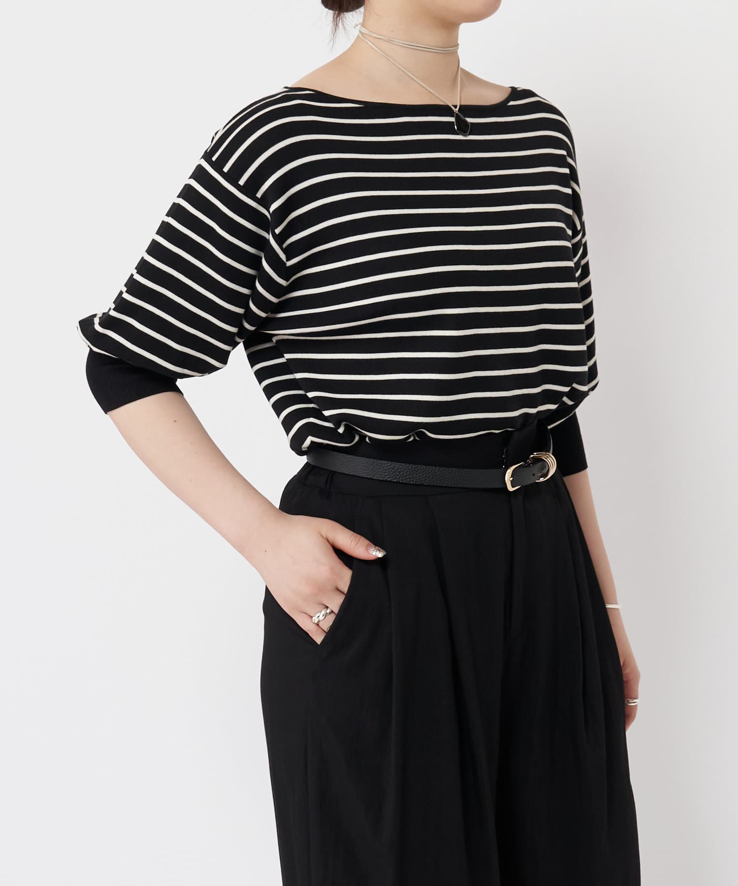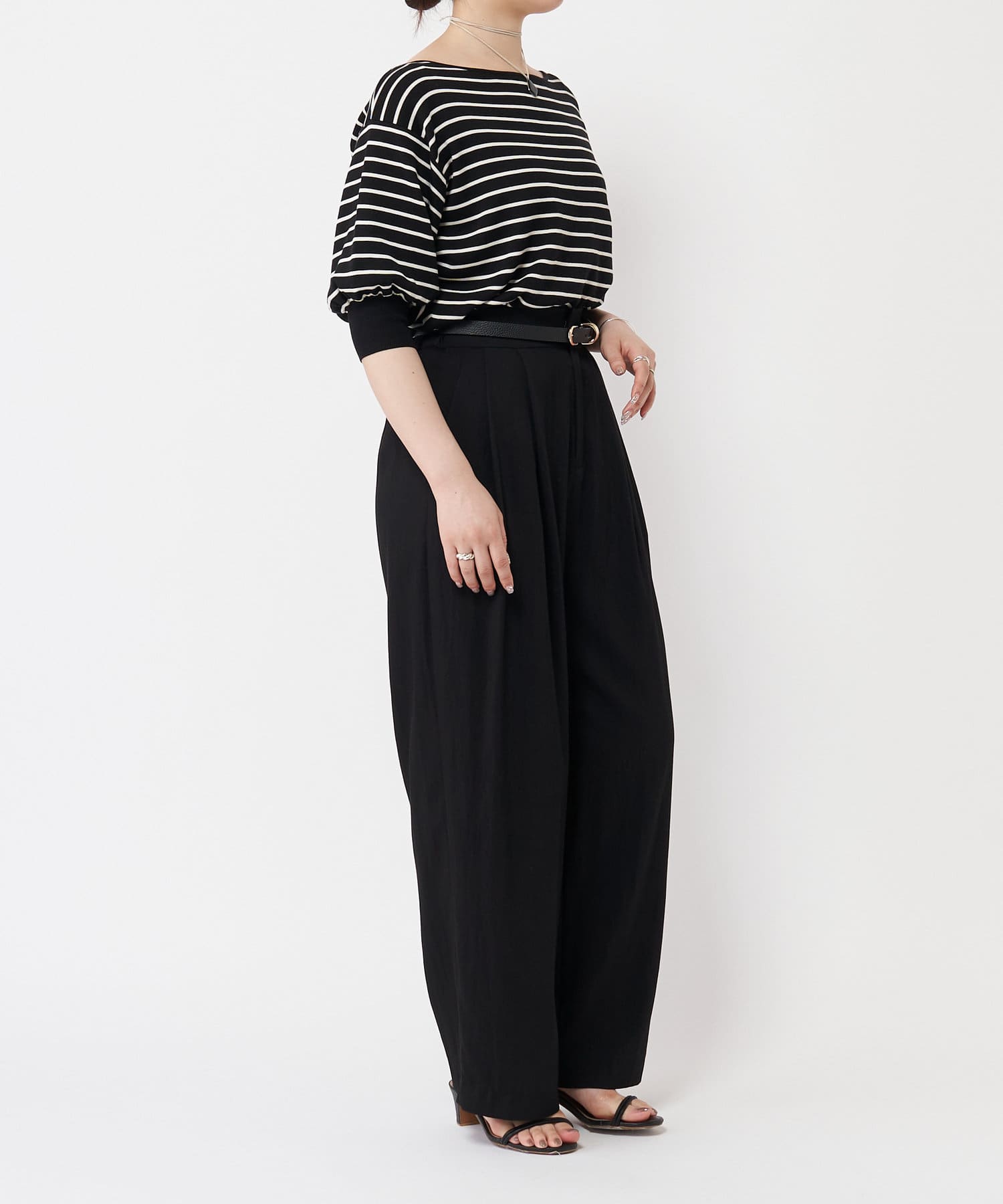 ふんわりとした袖のフォルムと、程よくゆとりのあるシルエットが、体のラインをきれいに見せつつリラックス感も演出。