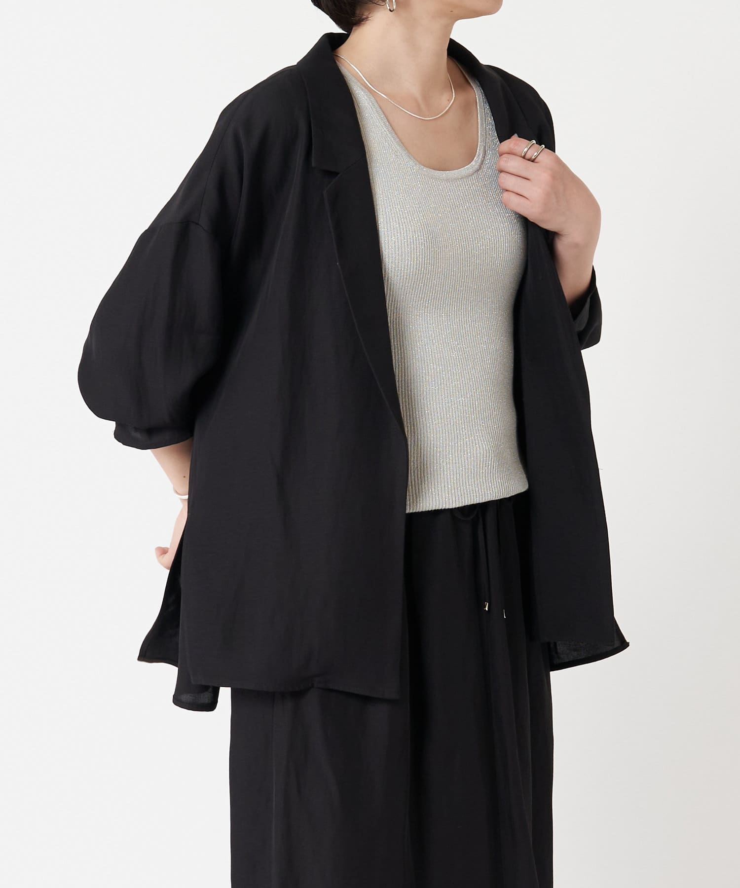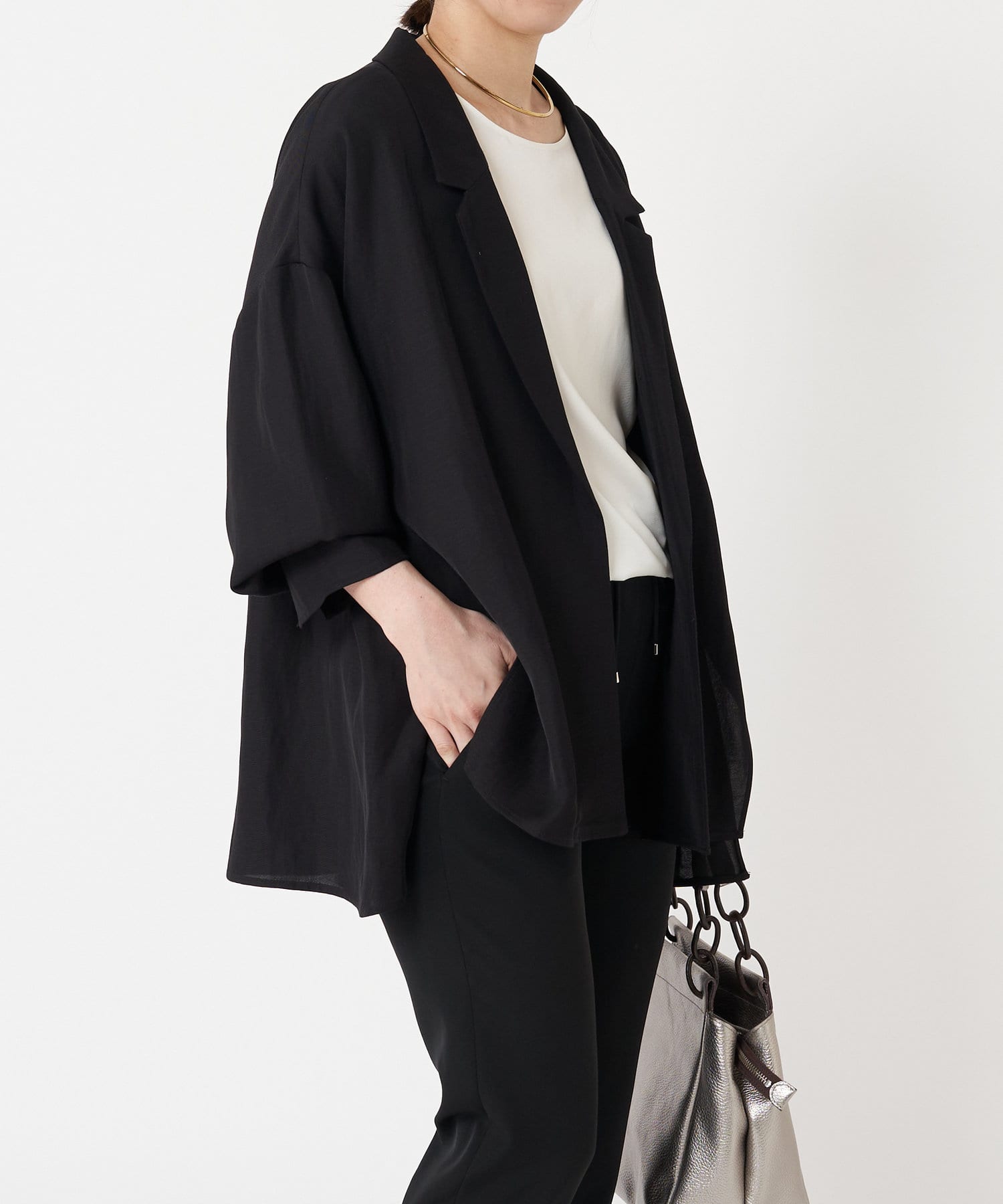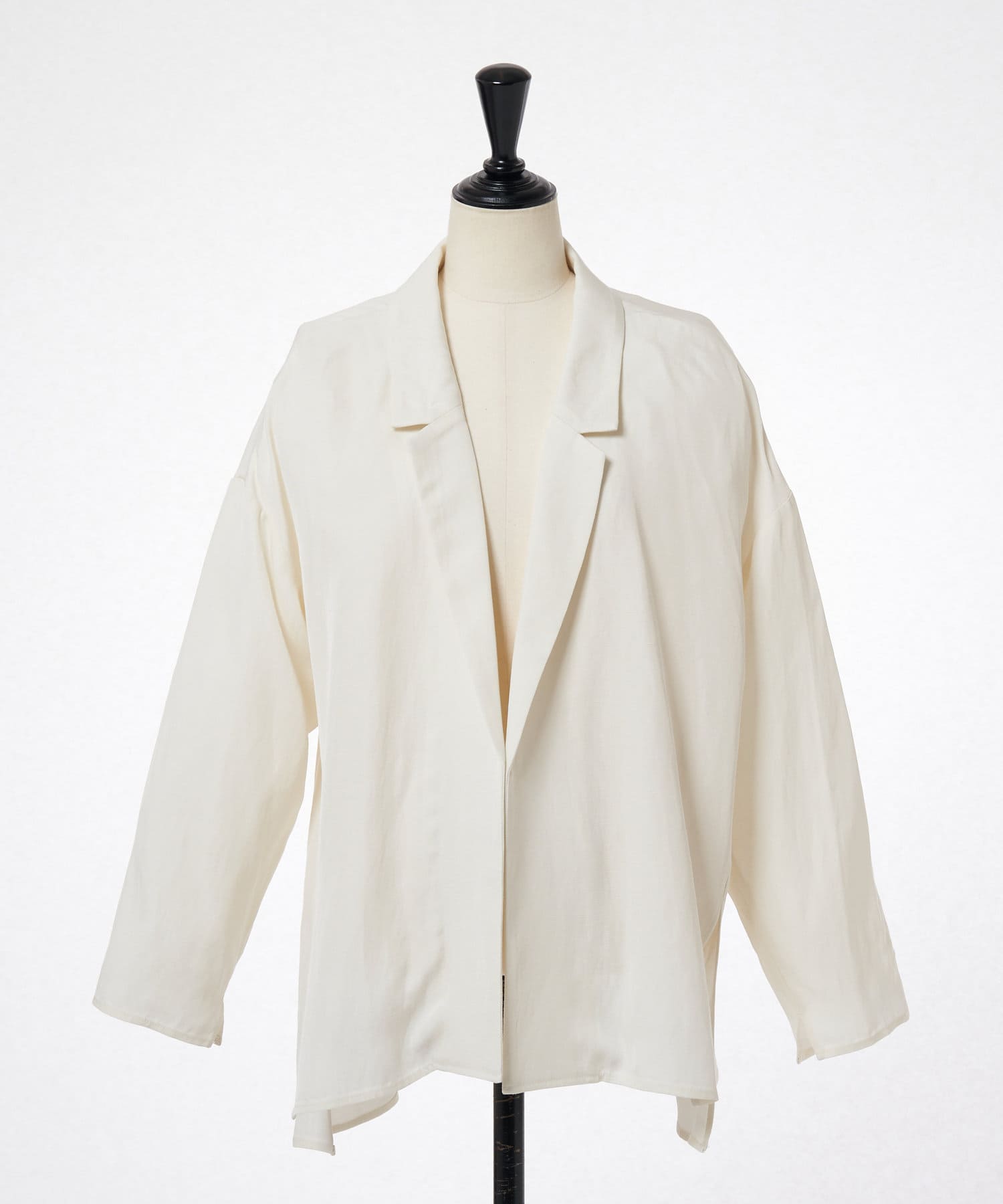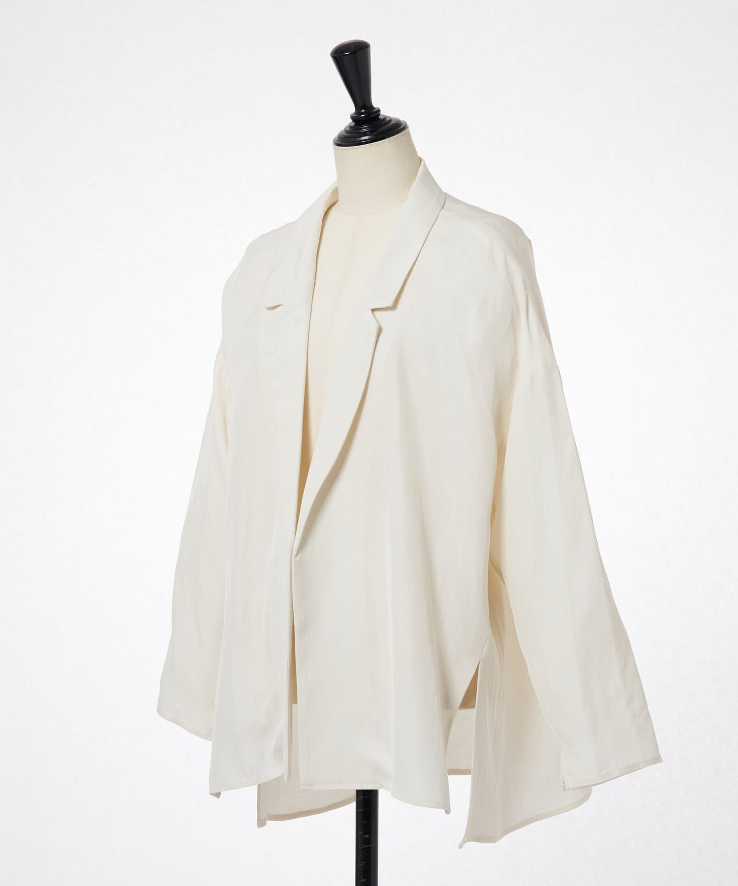 ドロップショルダーでサイドにスリットが入っており楽に着れて、固くなりすぎないのもポイント。