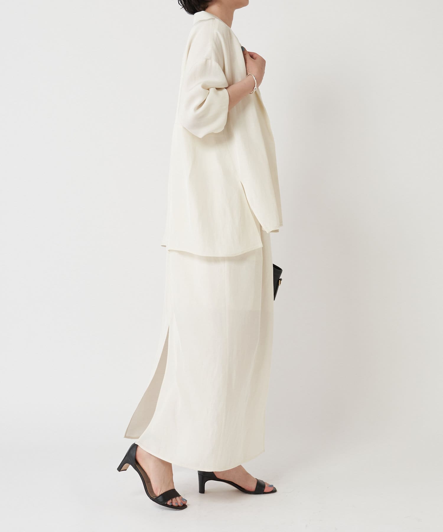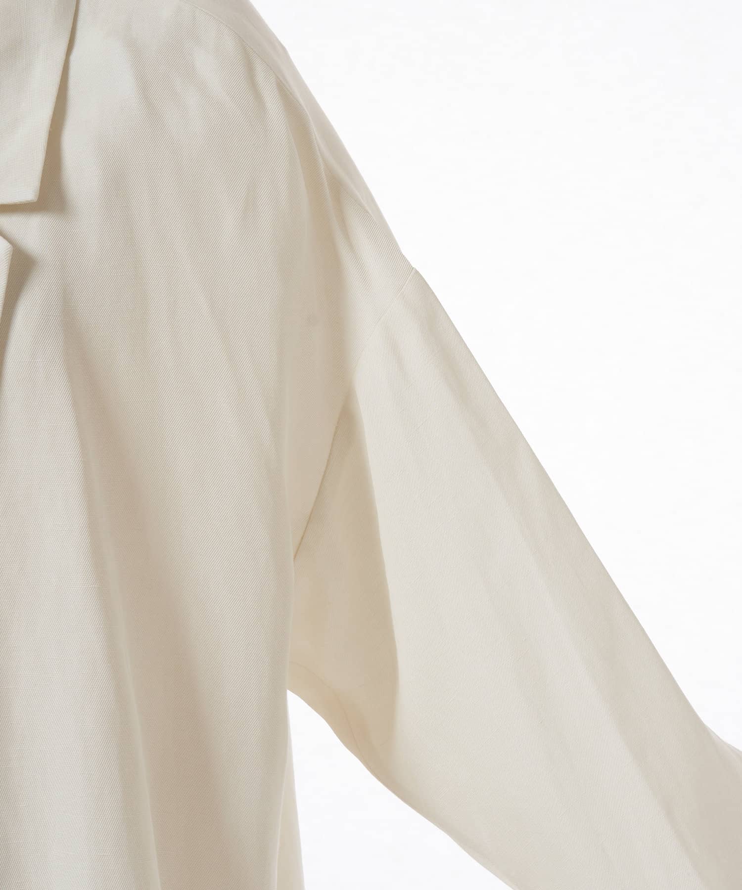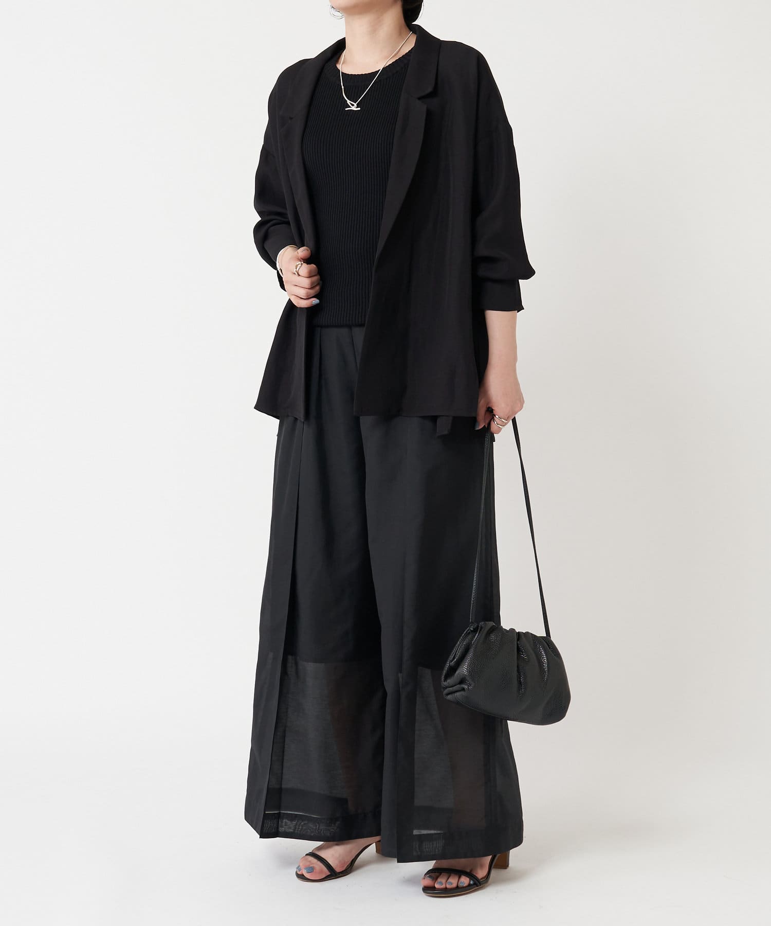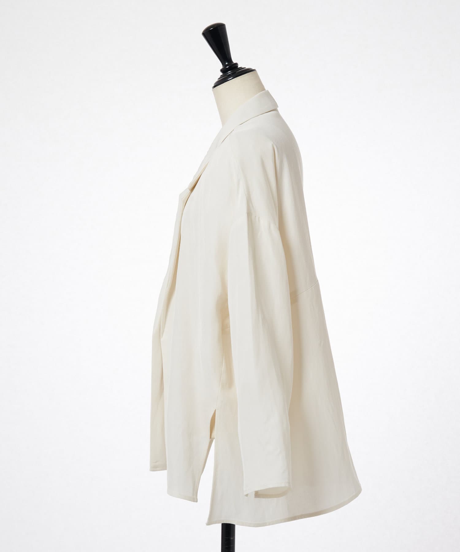 ドロップショルダーでサイドにスリットが入っており楽に着れて、固くなりすぎないのもポイント。