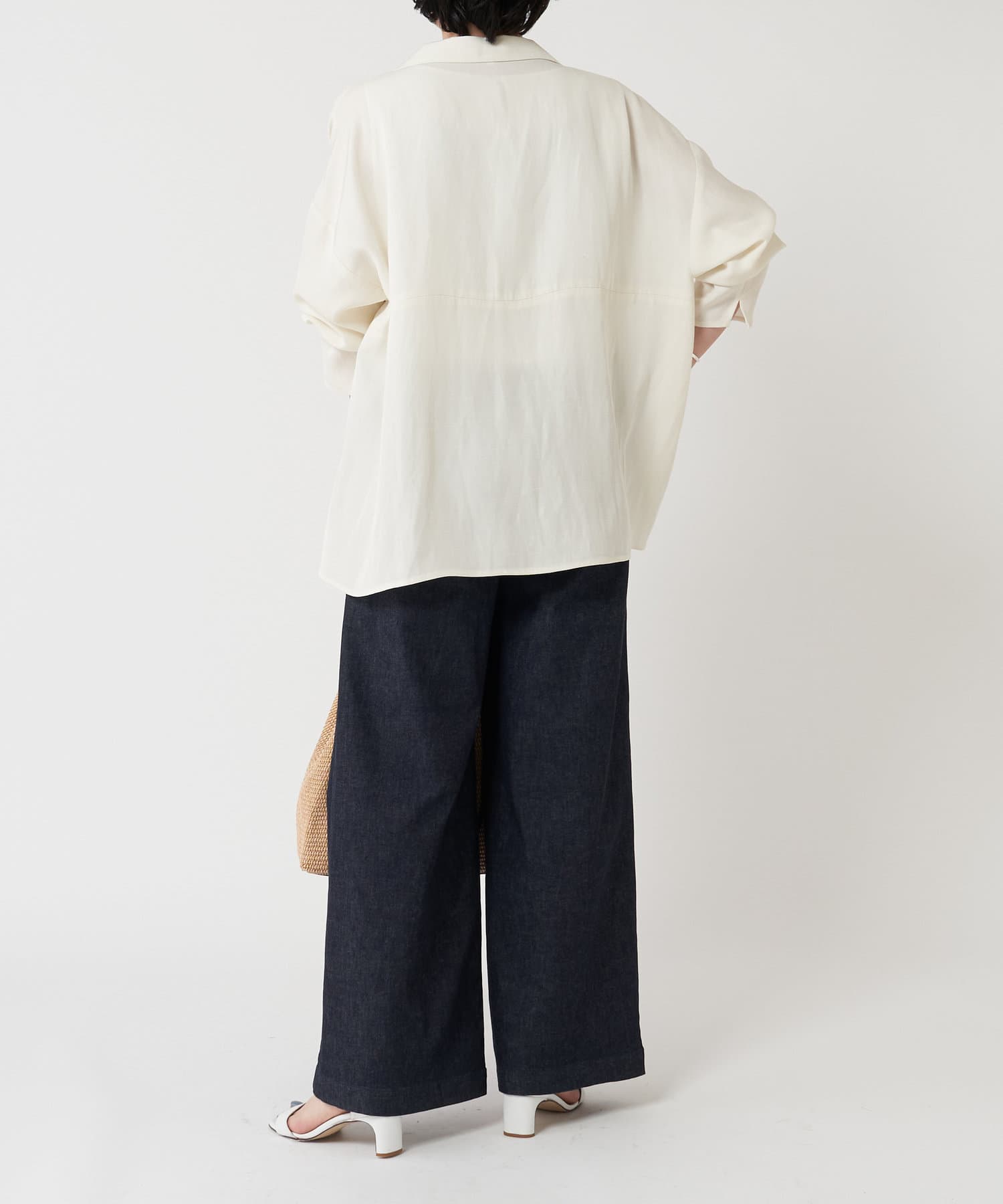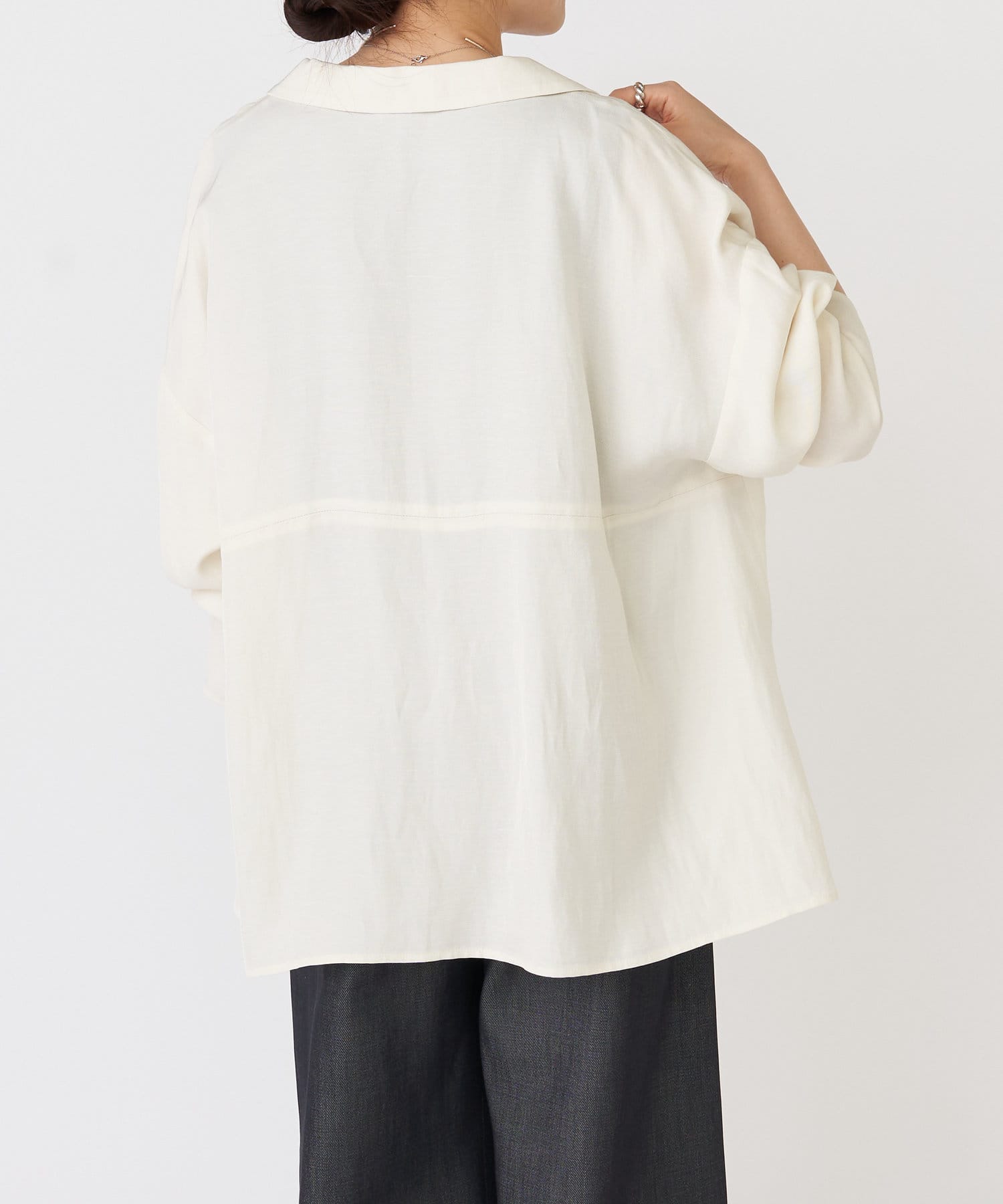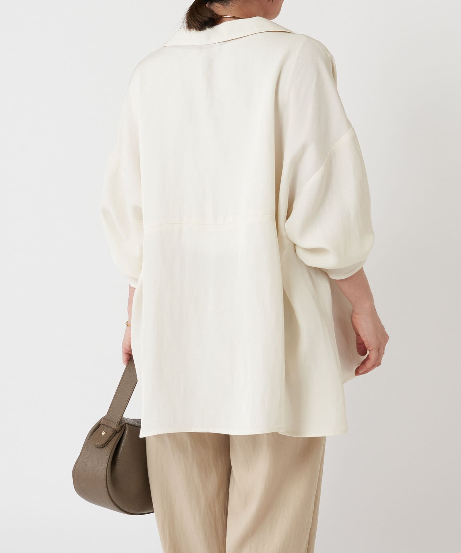 身体のラインを拾いすぎない程よくゆとりのあるシルエットで、パンツやスカートなど様々なボトムスと好相性。