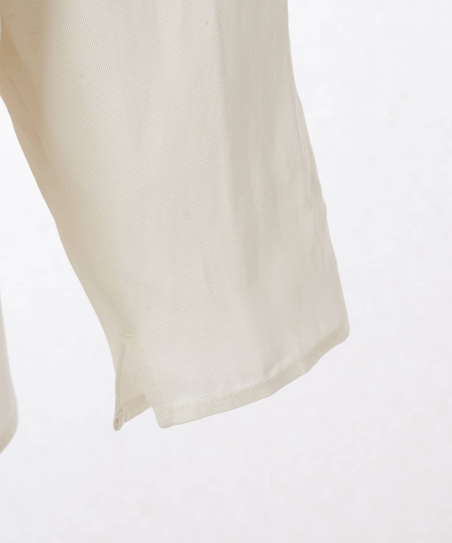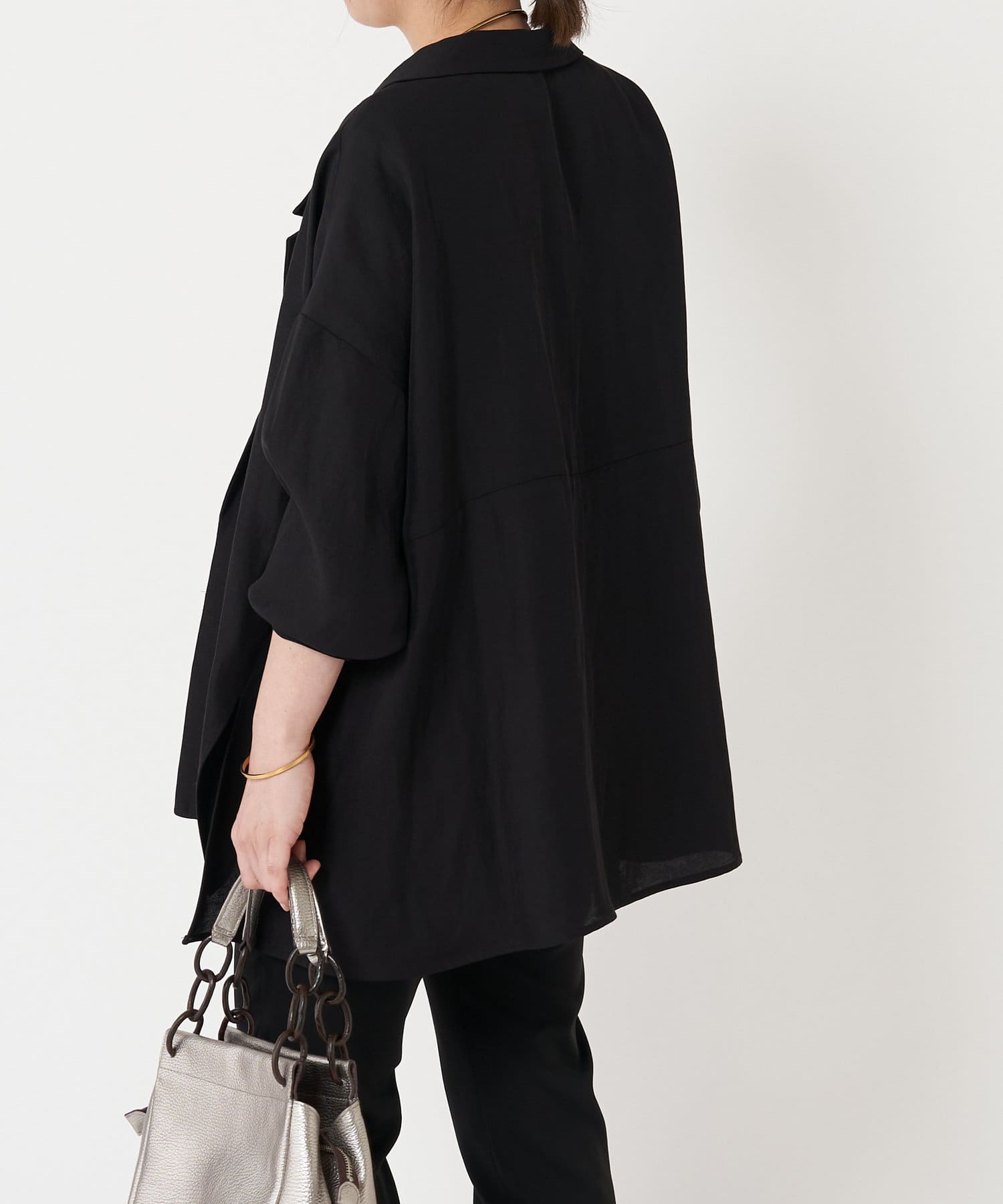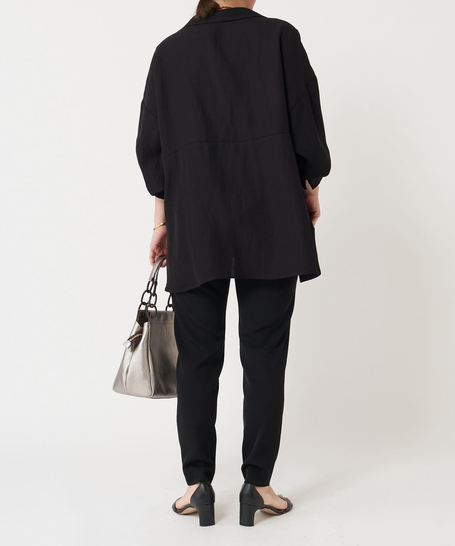 身体のラインを拾いすぎない程よくゆとりのあるシルエットで、パンツやスカートなど様々なボトムスと好相性。