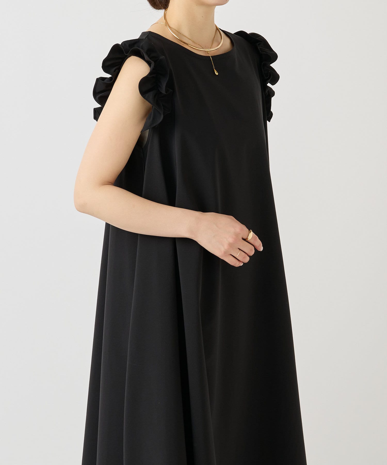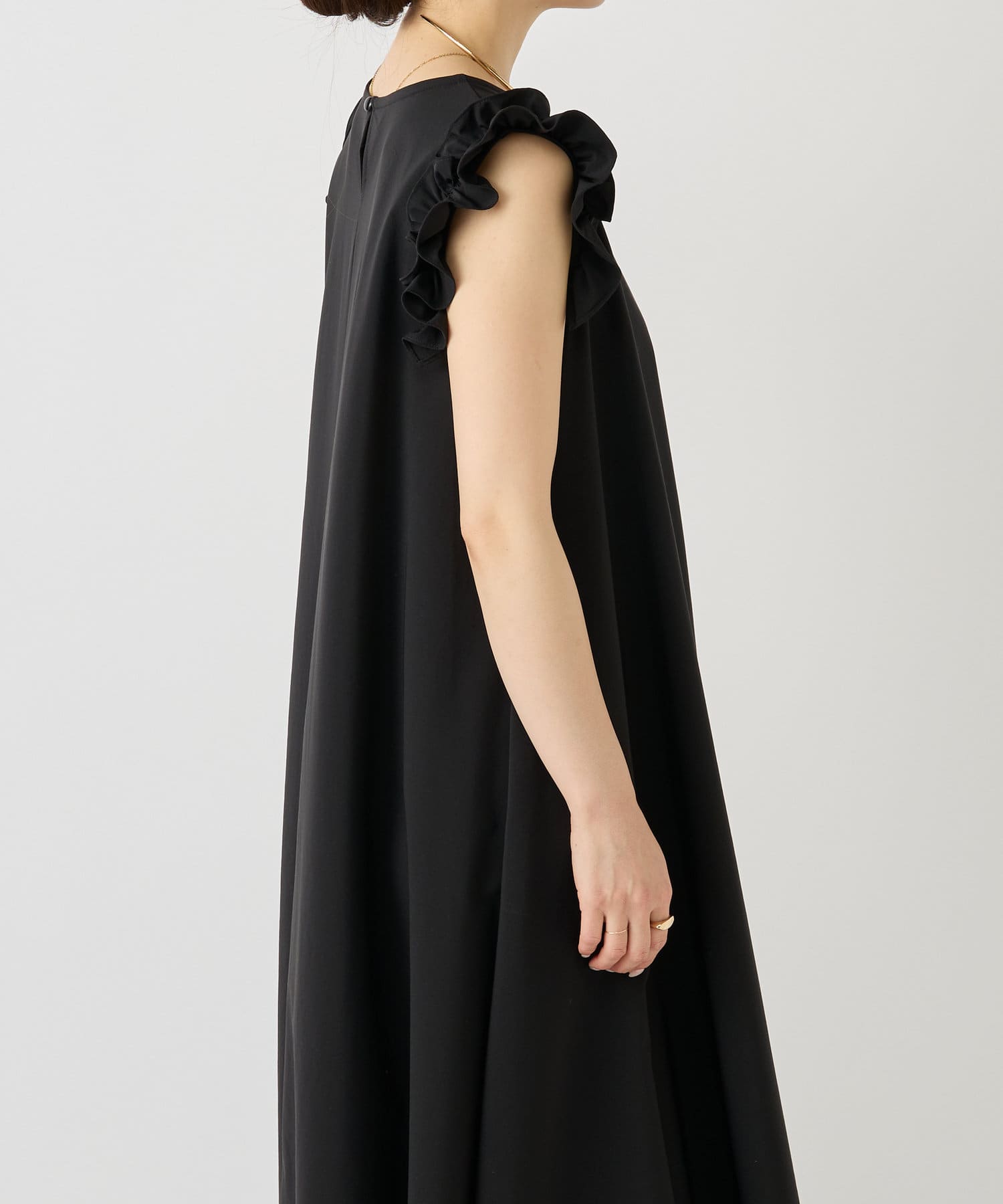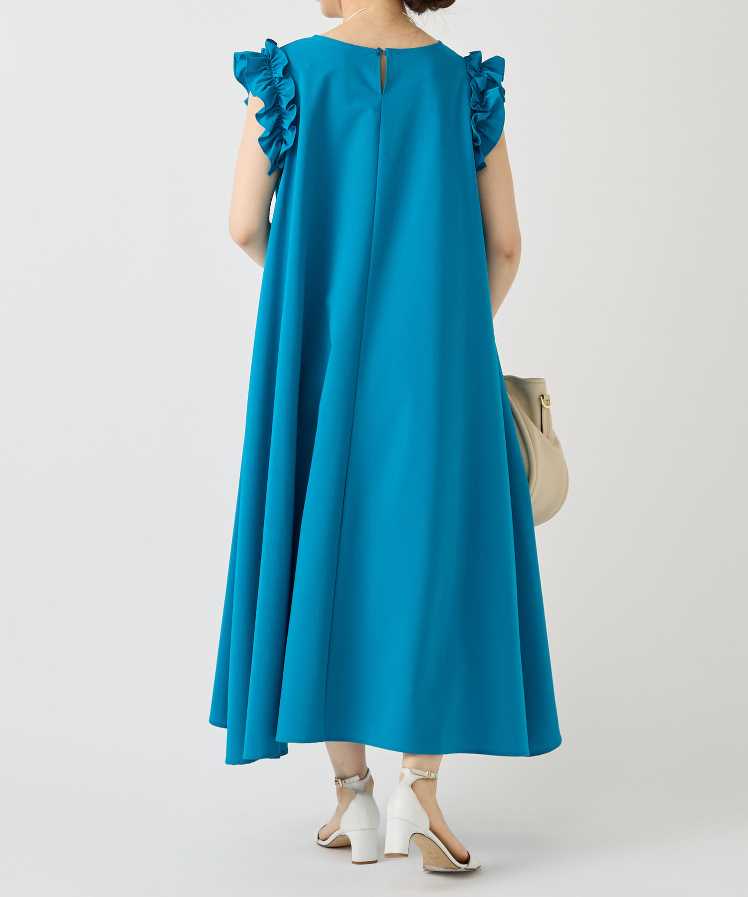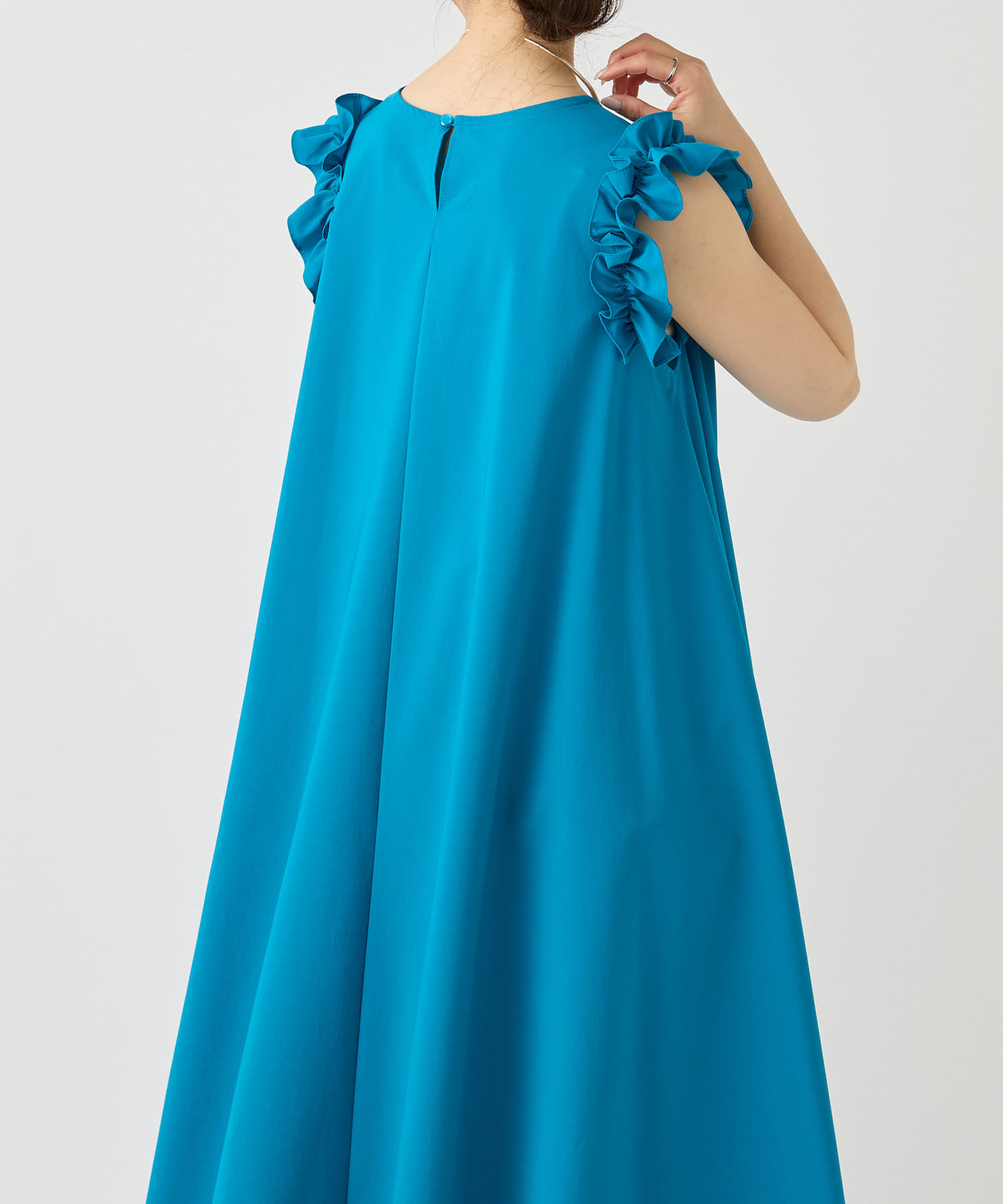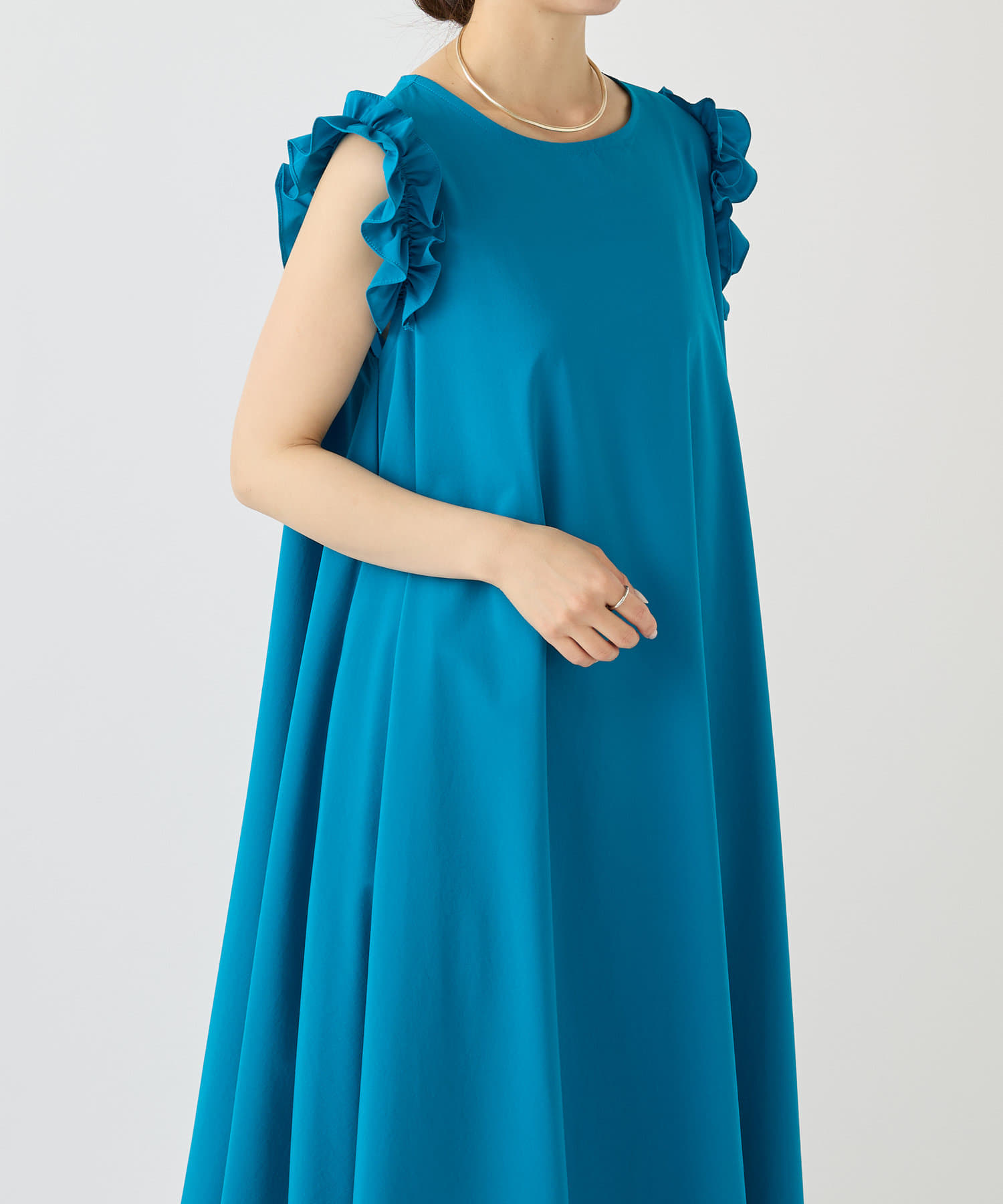 ノースリーブで肩にかかるデザインですが、腕が気になる方はサラッとカーデを肩掛けするのもおすすめ。