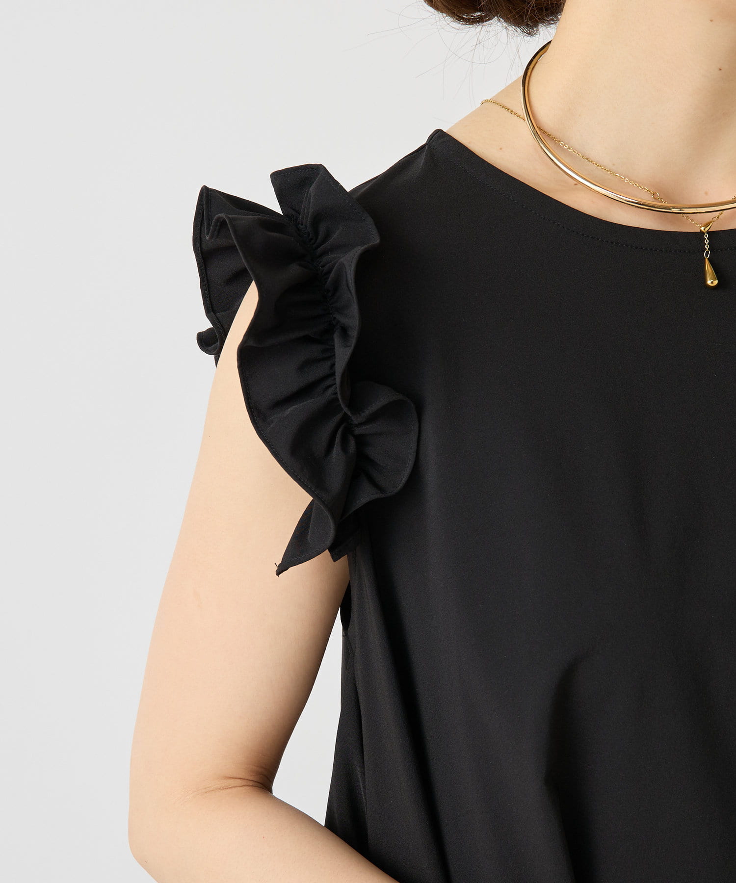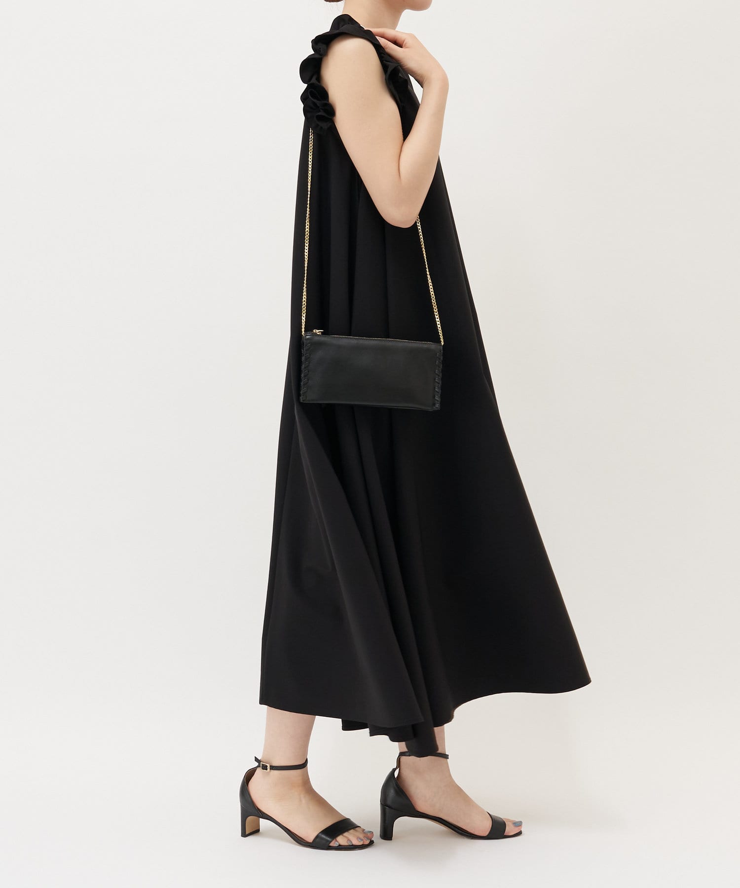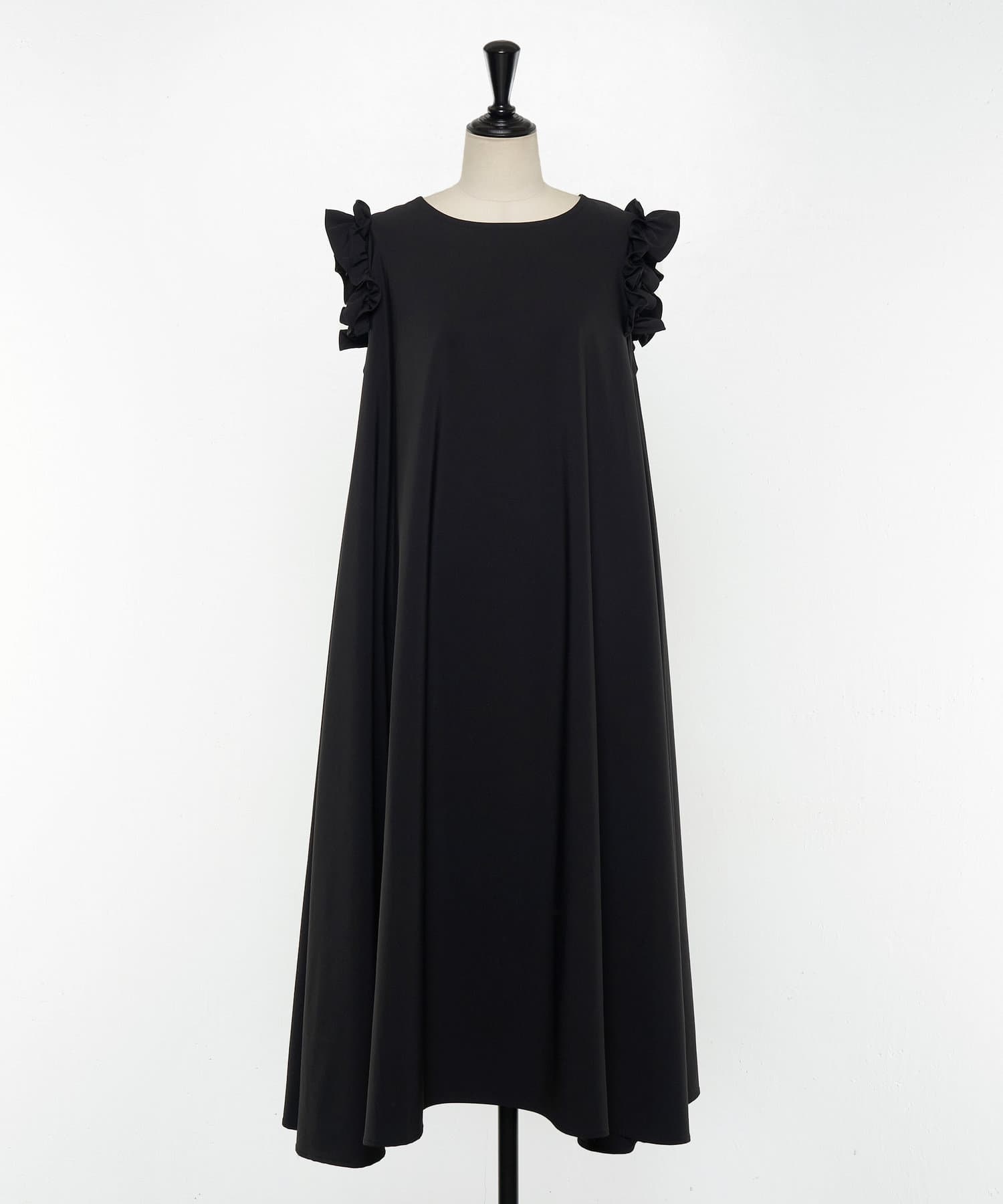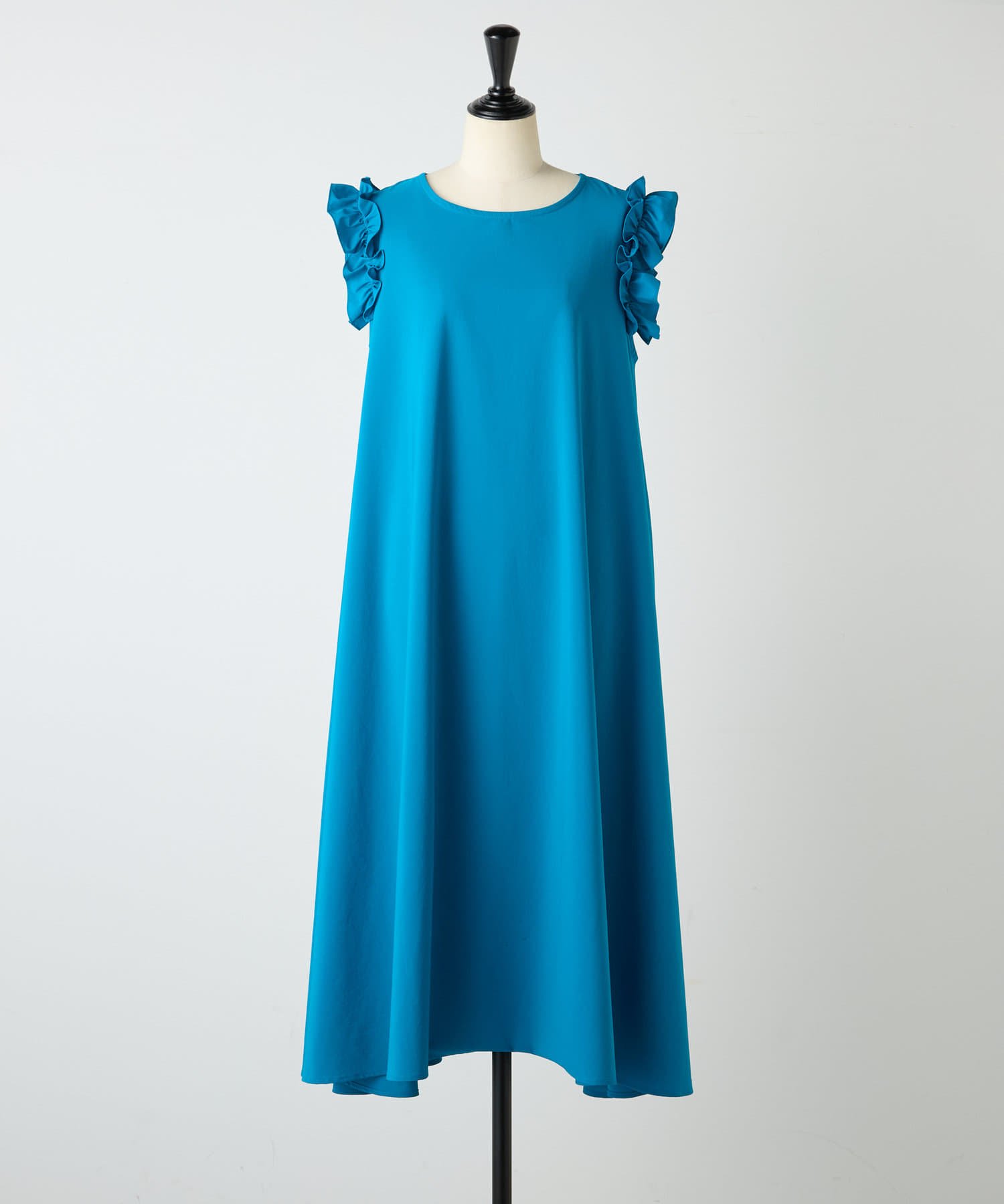 ノースリーブで肩にかかるデザインですが、腕が気になる方はサラッとカーデを肩掛けするのもおすすめ。