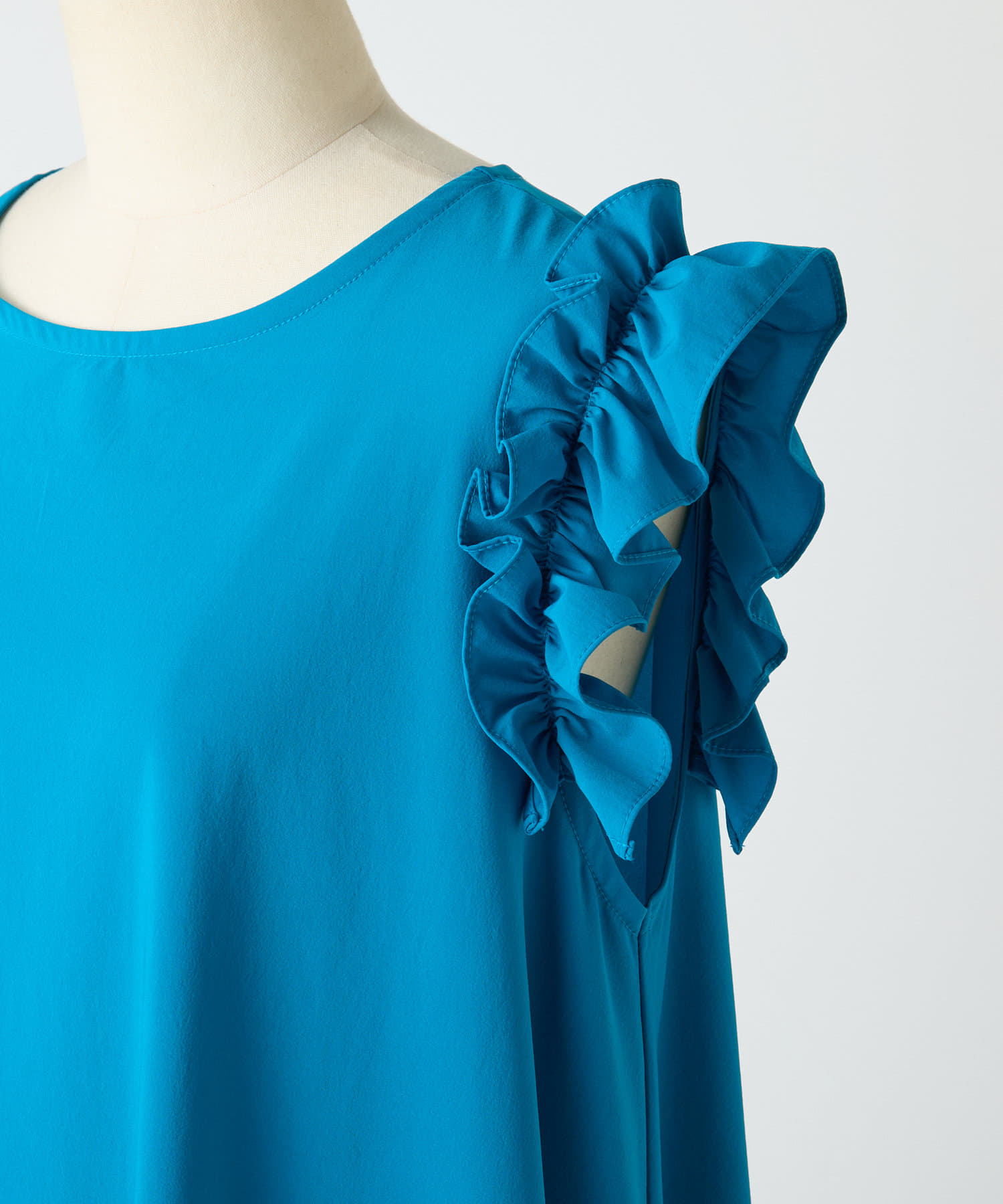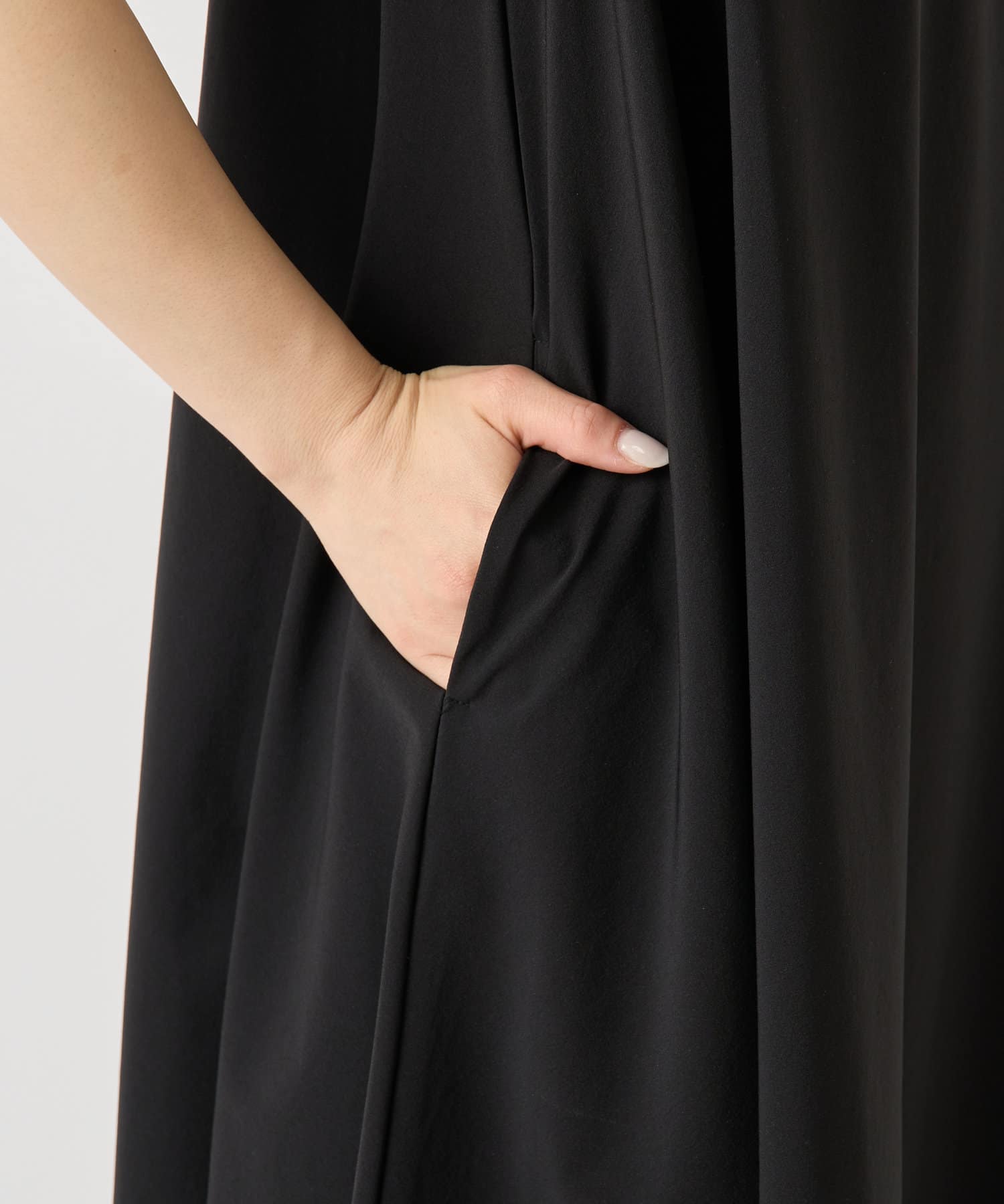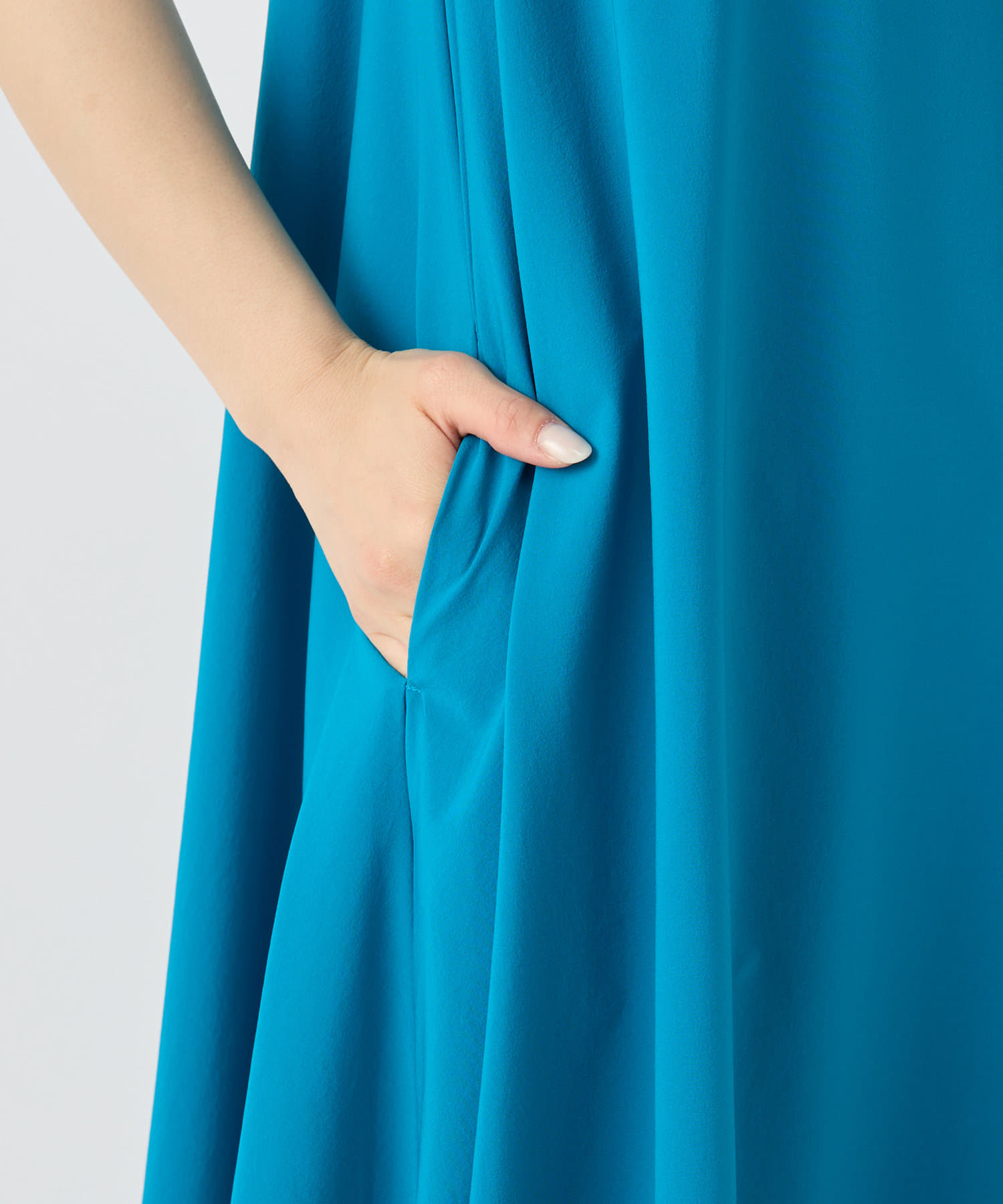 程よく張りのある生地は身体のラインを拾わず女性らしいドレープが楽しめます。