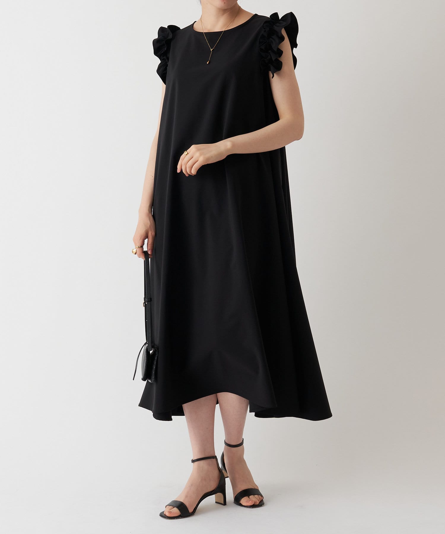 ボリュームたっぷりのAラインシルエットで歩いた際の揺れ感が美しい一着です。