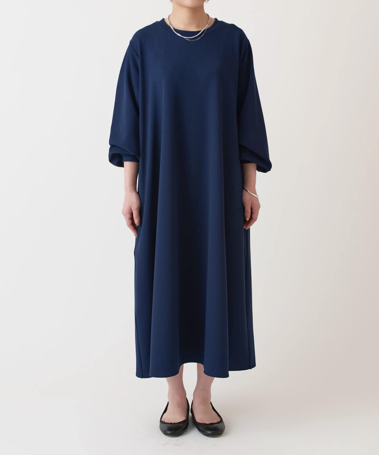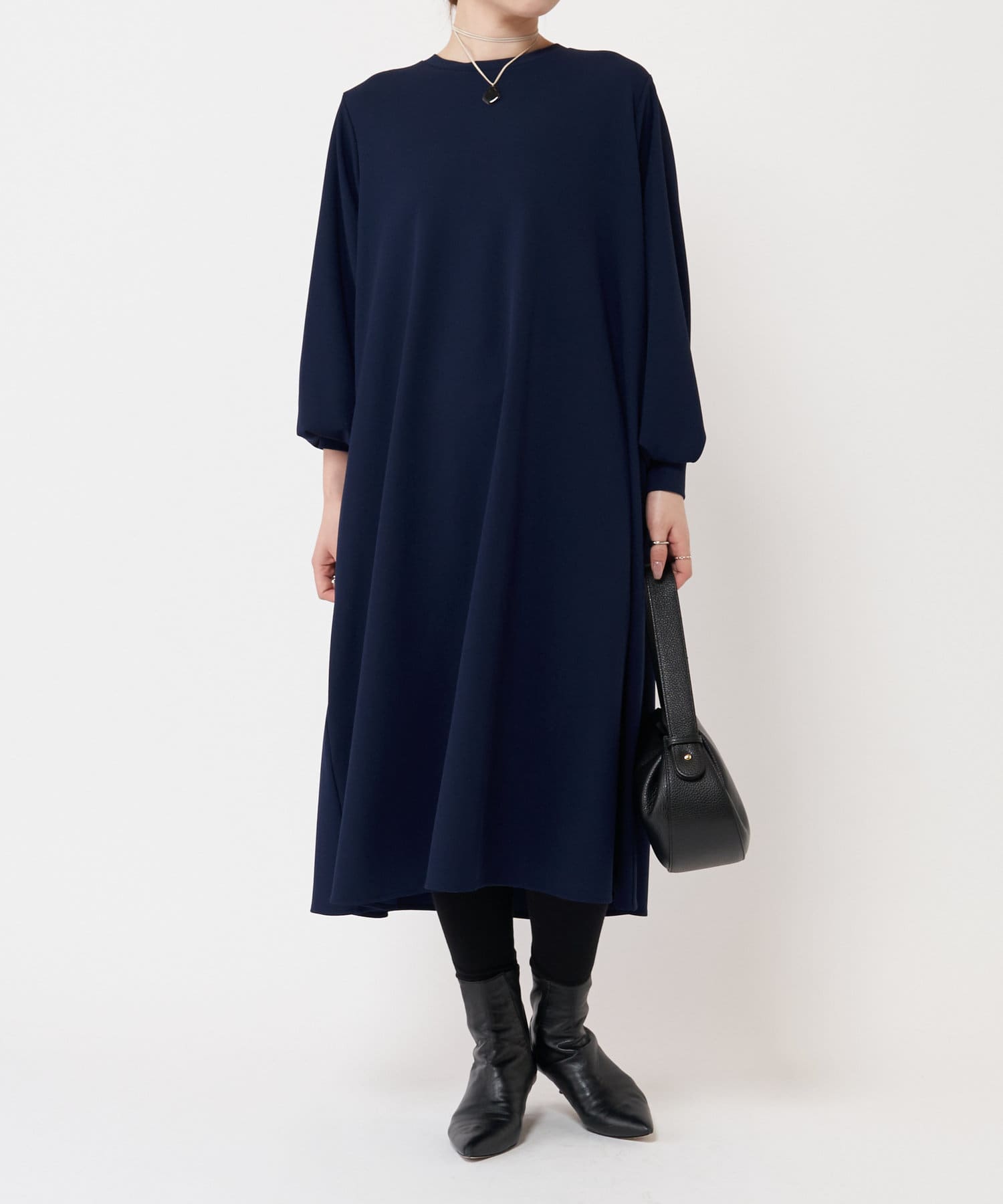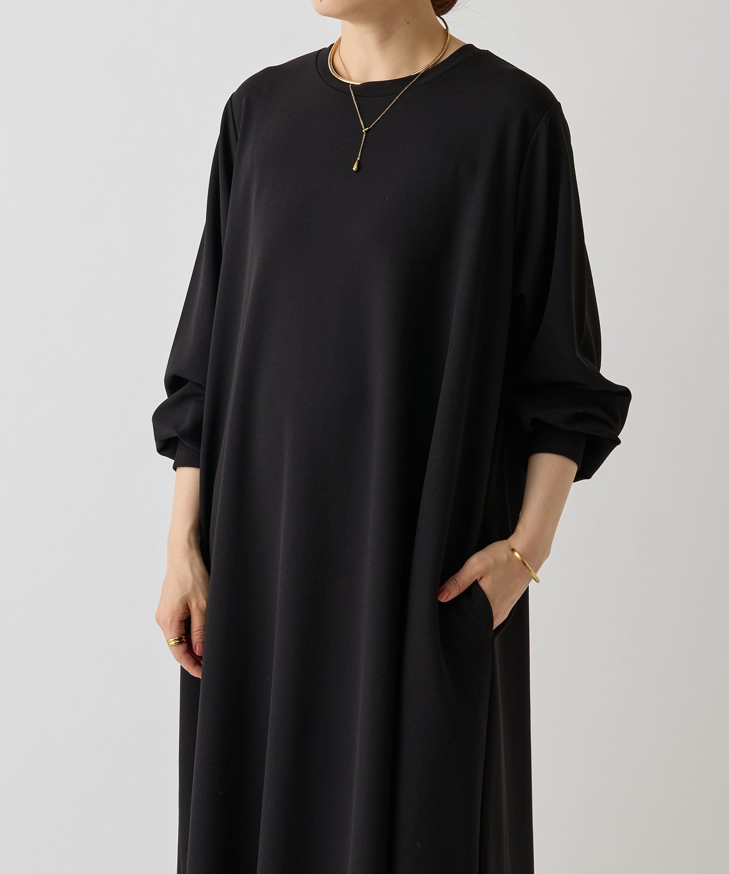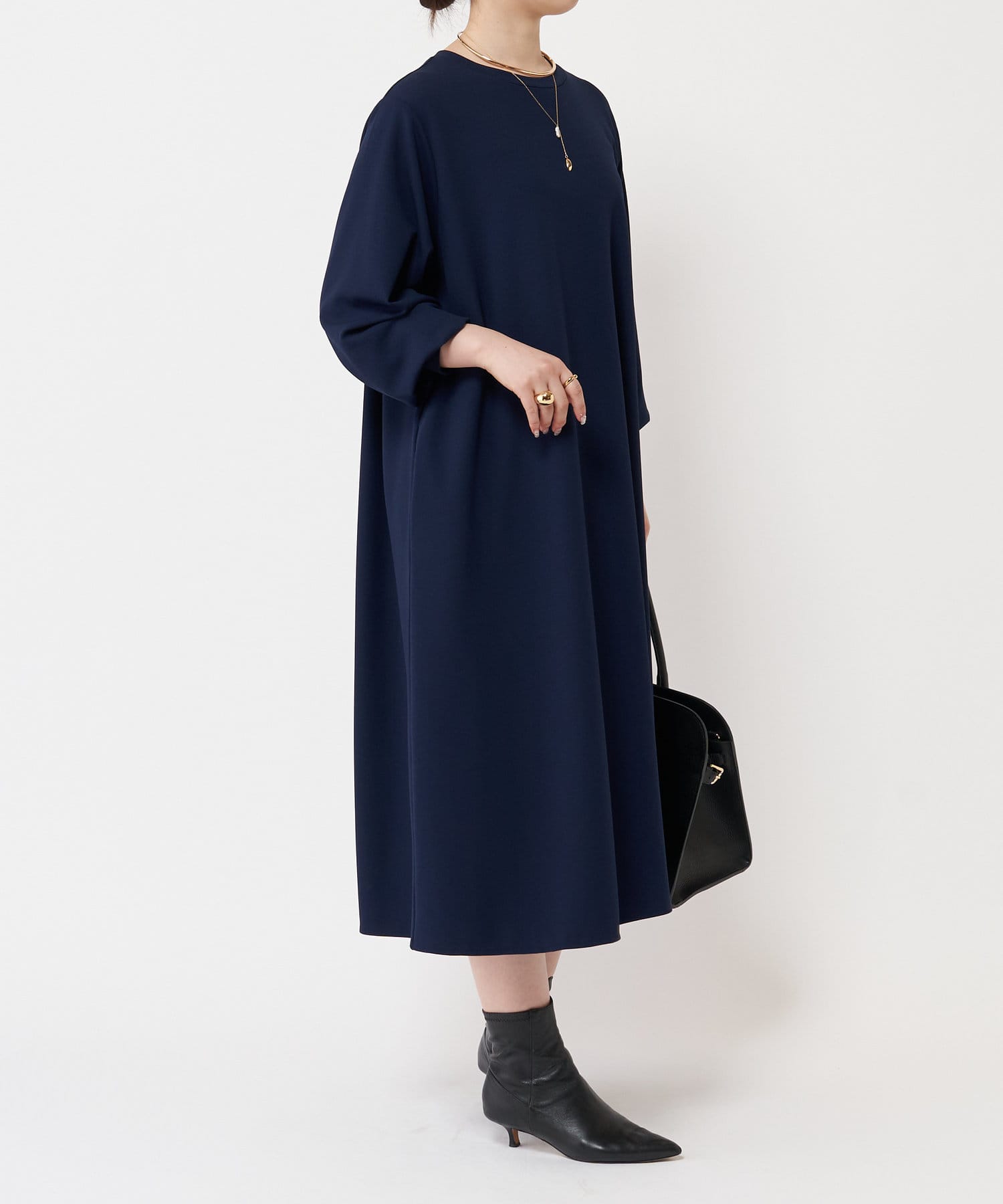 ストレッチ性が高く、シワになりにくい素材の ワンピース。