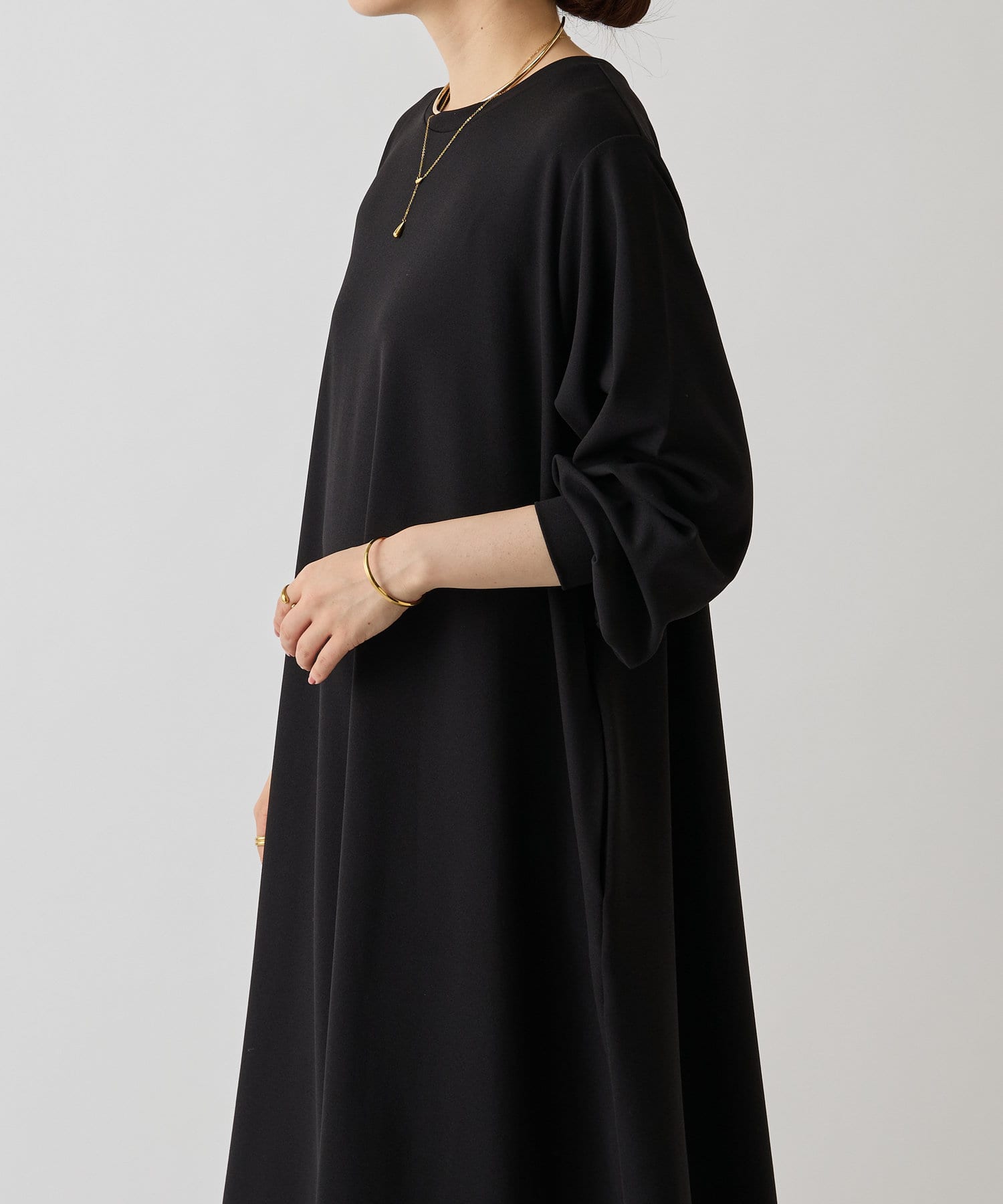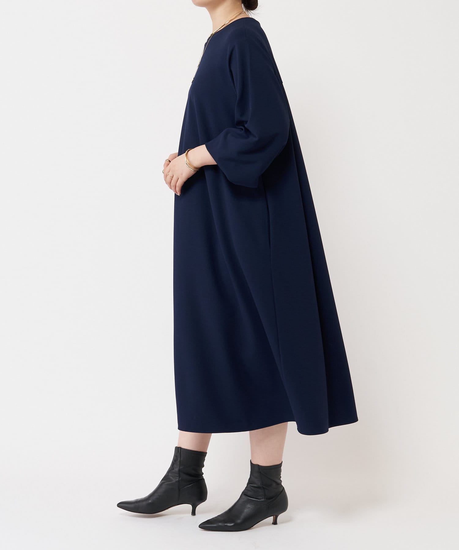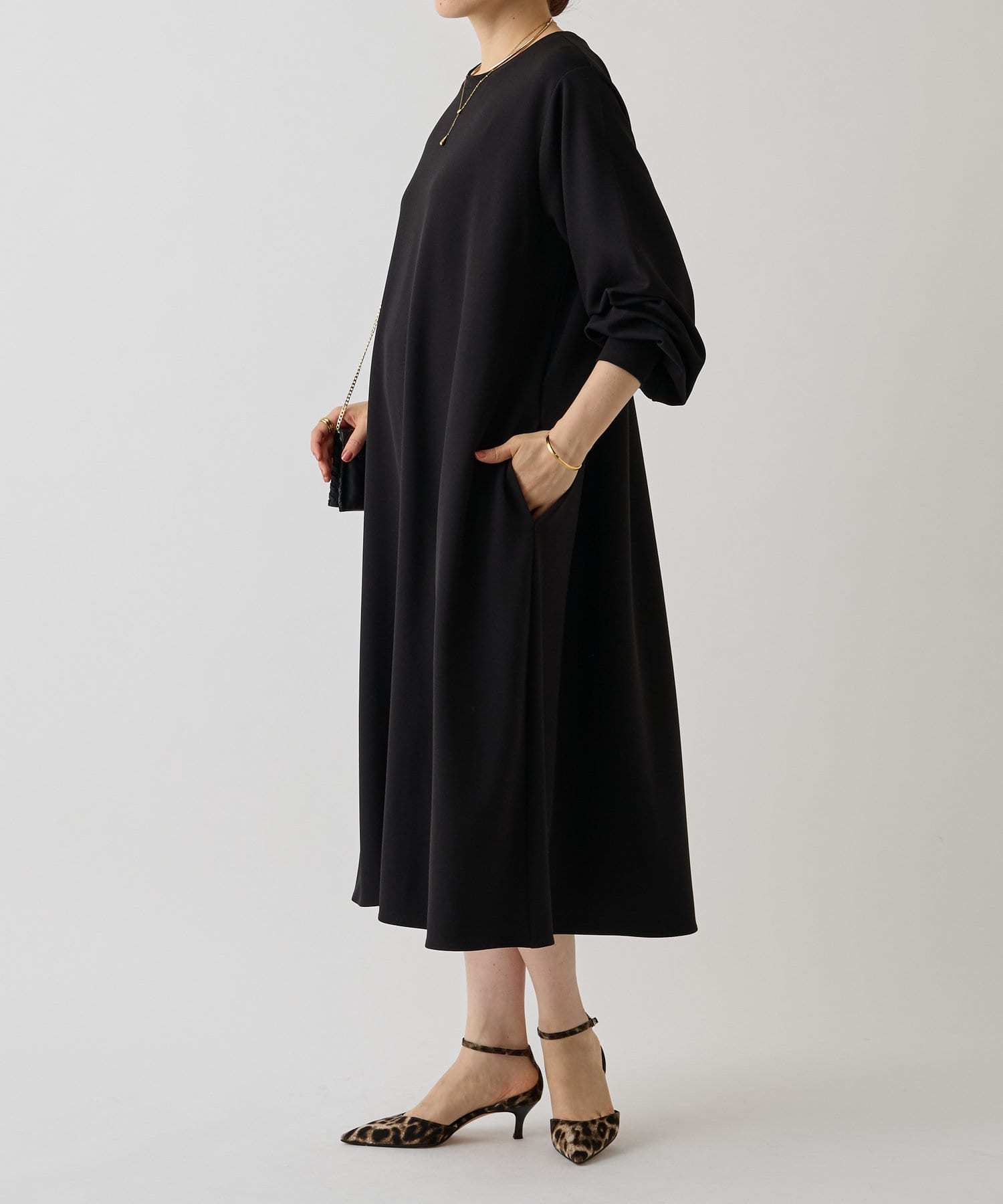 ストレッチ性が高く、シワになりにくい素材の ワンピース。
