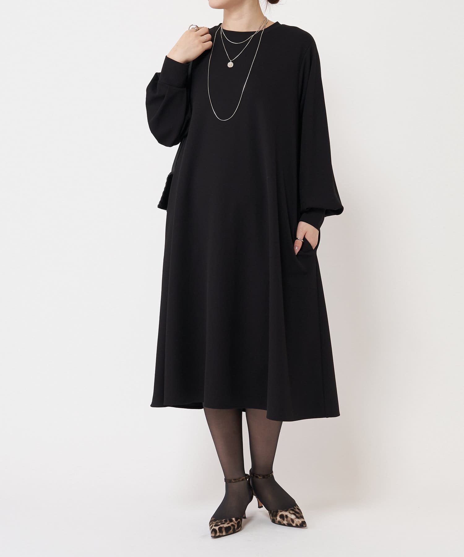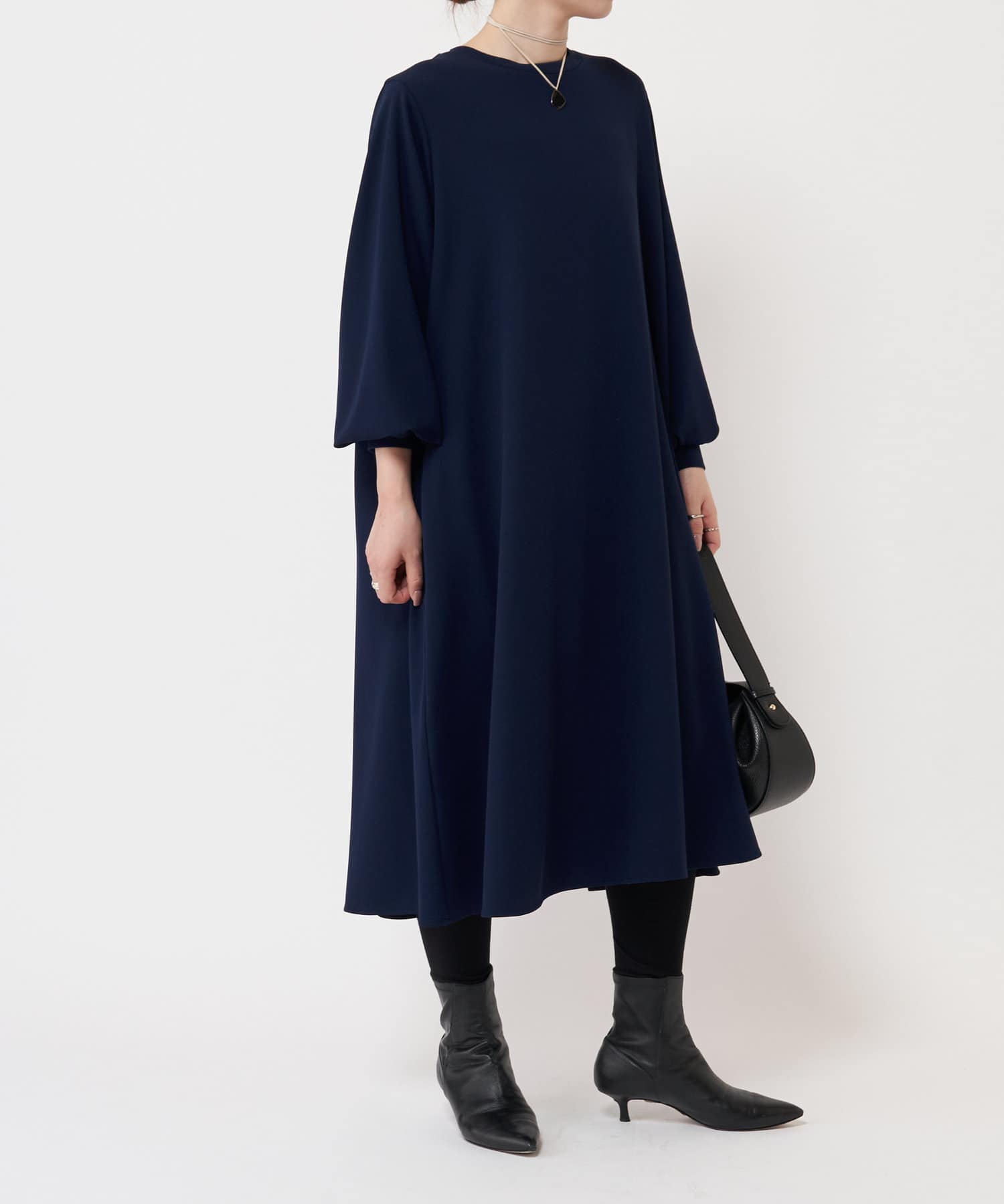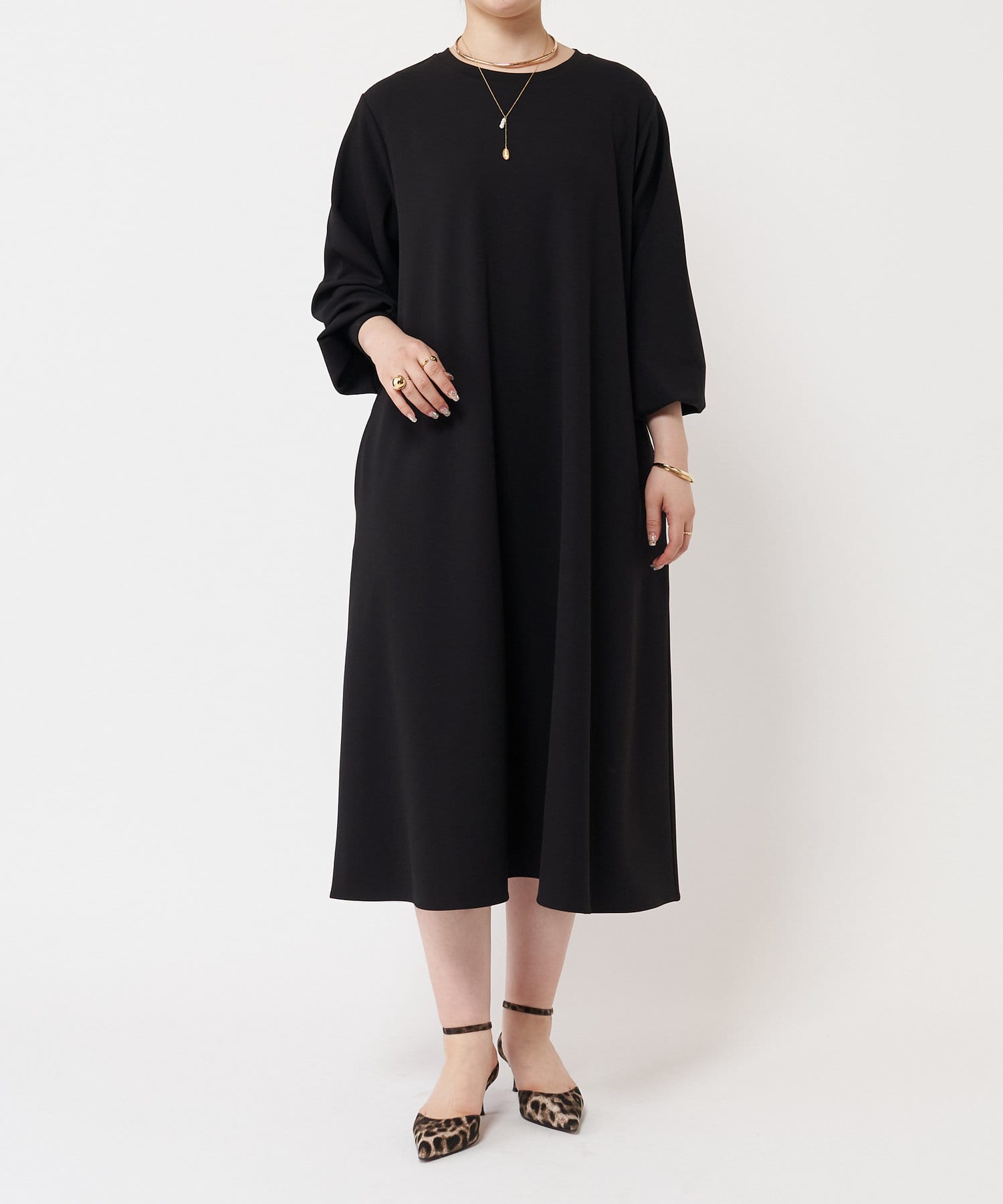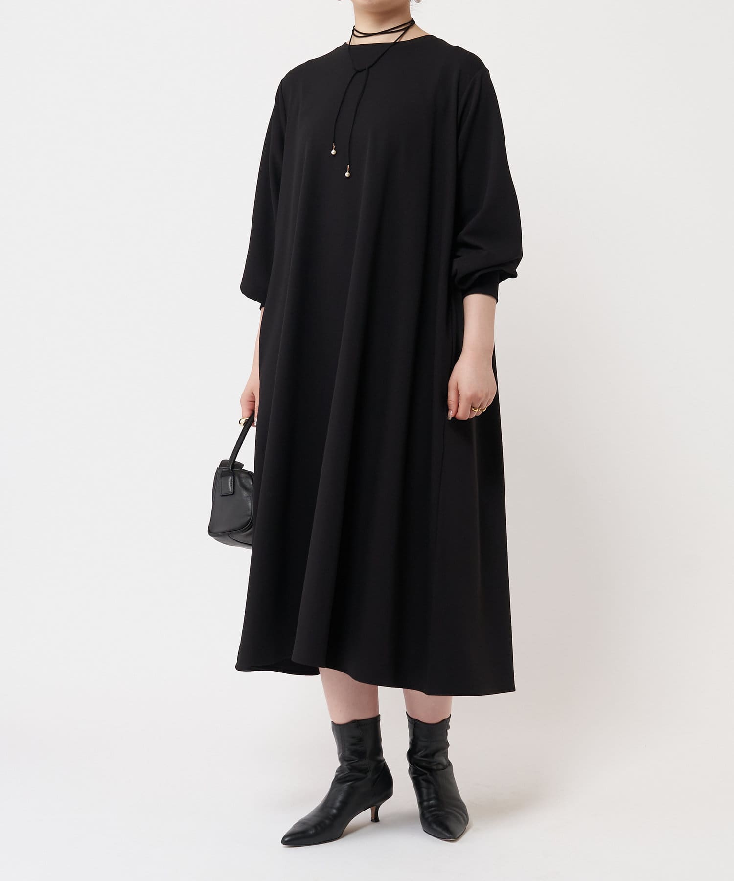 ストレッチ性が高く、シワになりにくい素材の ワンピース。
