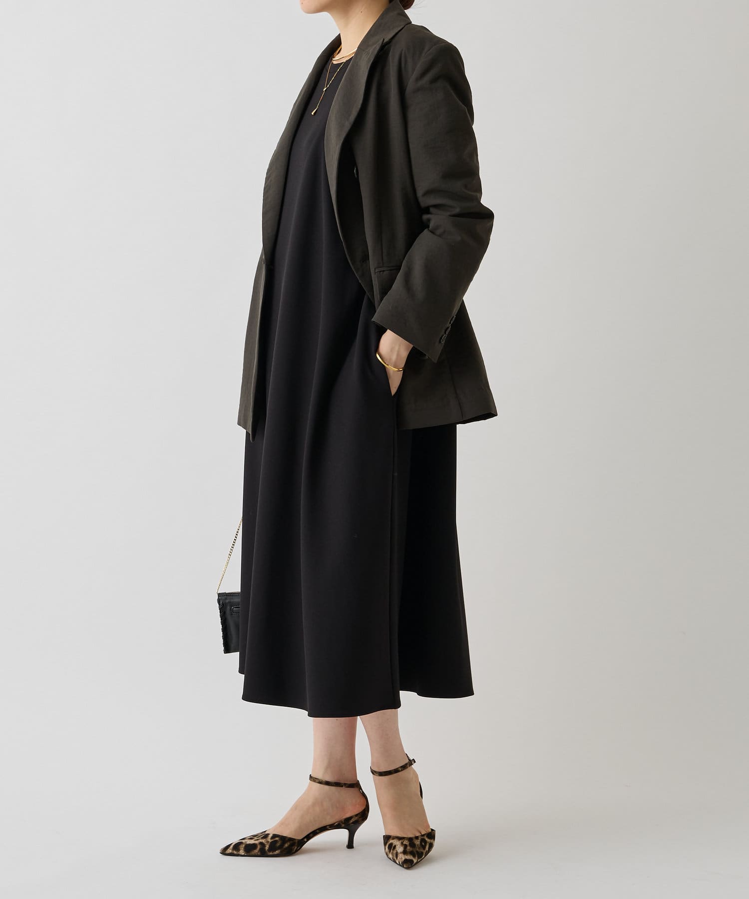 合わせる小物次第で、幅広いスタイリングが楽しめる一着です。