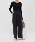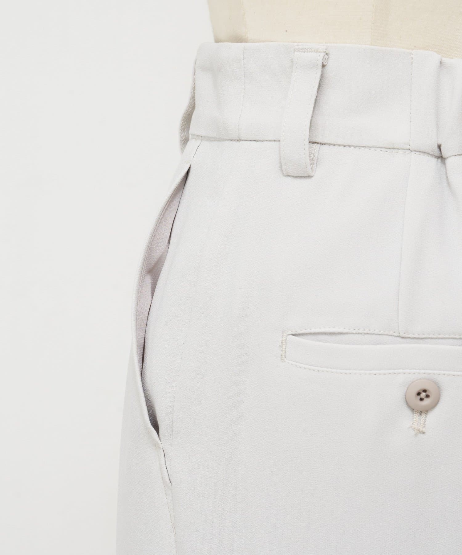 フロントにはタックを入れ、腰まわりに程よいゆとりと立体感をプラス。